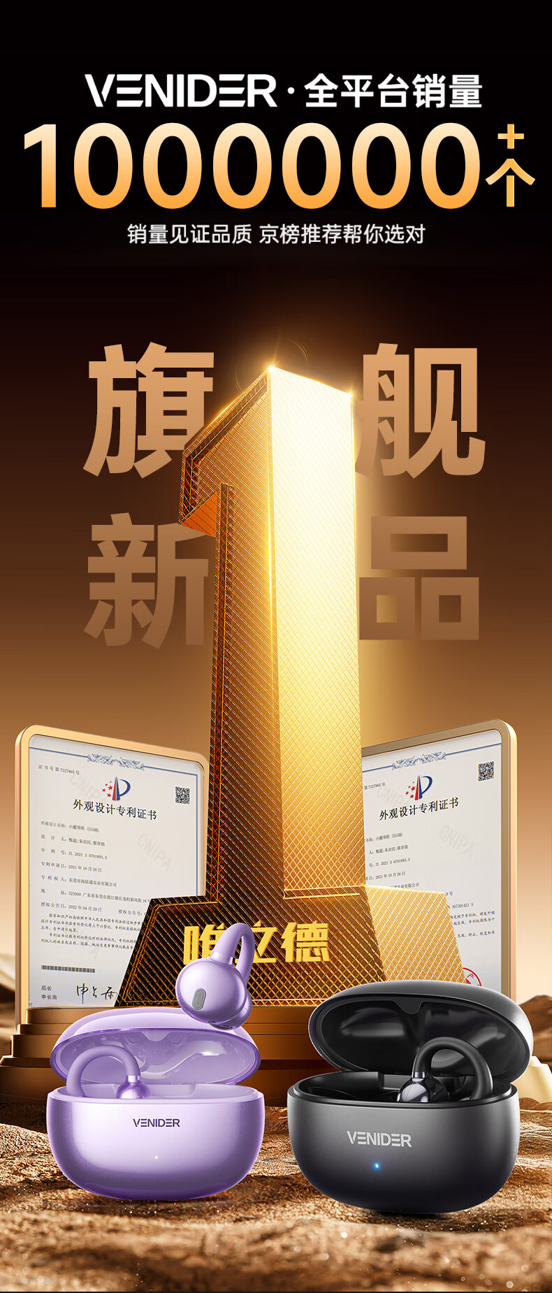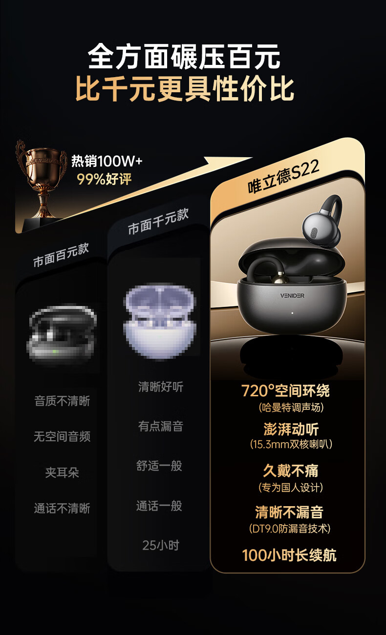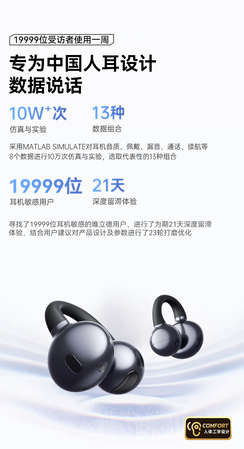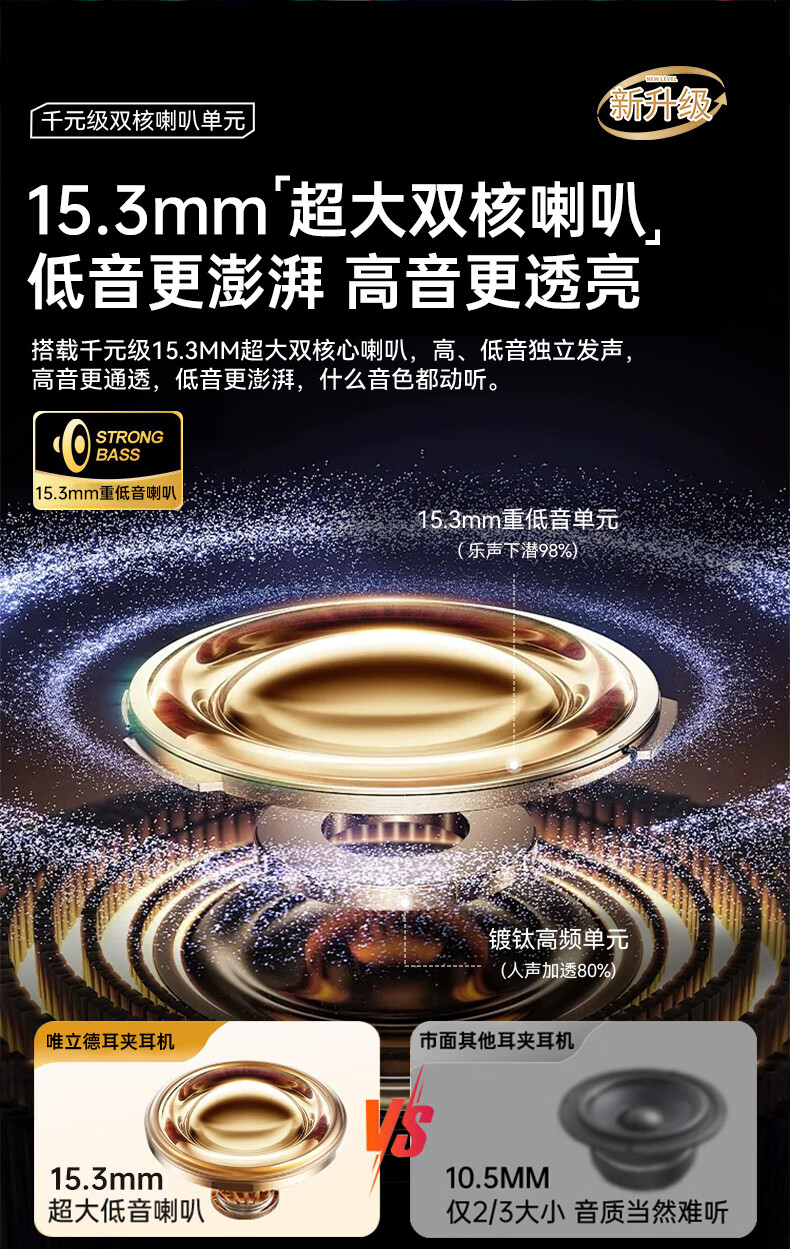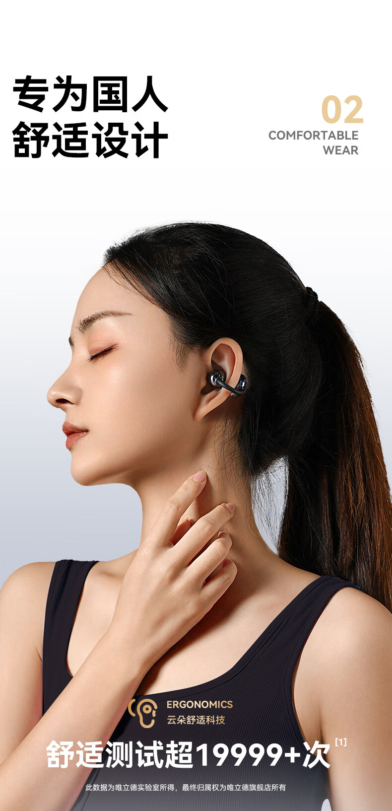 唯立德【补贴立减15%】蓝牙耳机耳夹式骨传导概念不入耳运动长续航无线开放式挂耳适用华为苹果 霞光紫丨舒适稳固佩戴丨声波聚焦0漏音
