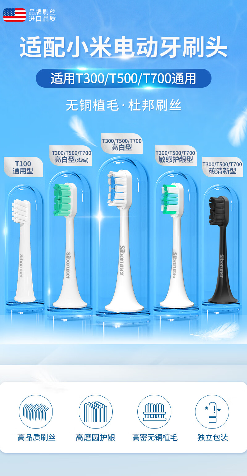 思博润 适用小米电动牙刷T300/T500/T700通用替换平替牙刷头 杜邦刷丝无铜植毛 8支 礼盒装【亮白通用型】T300/500/700