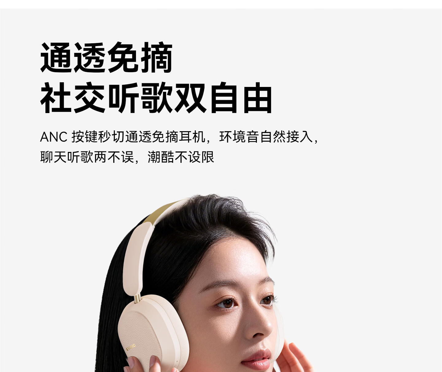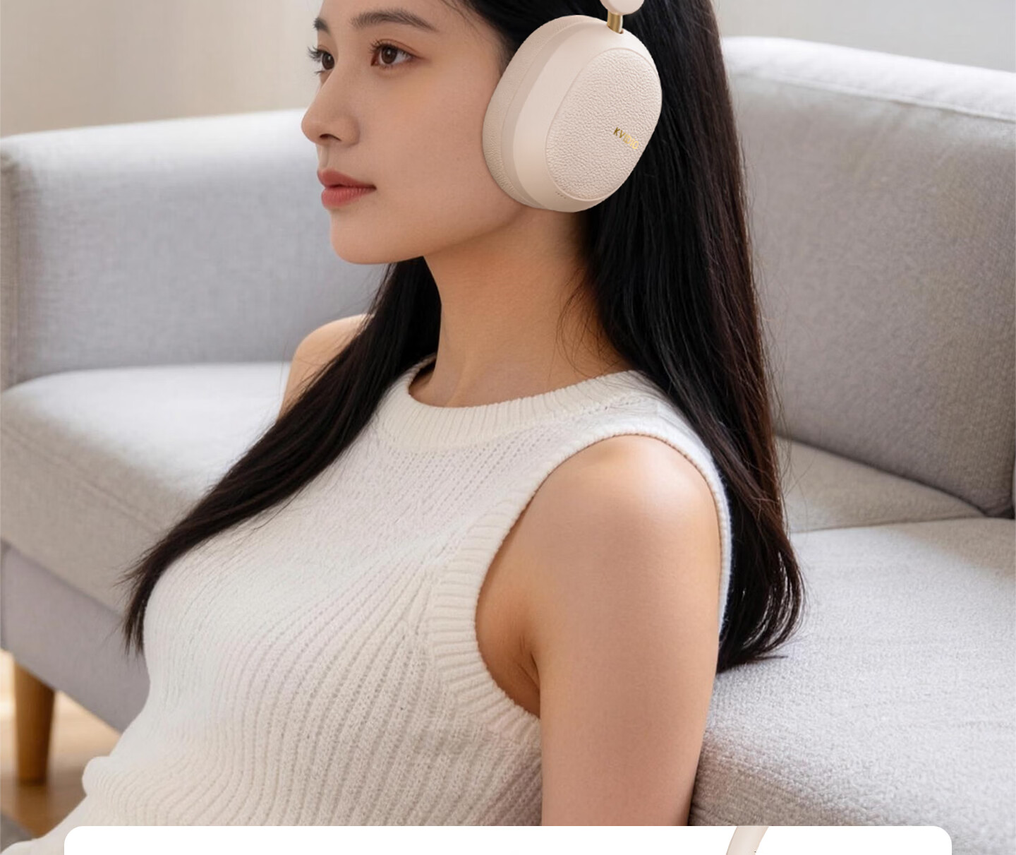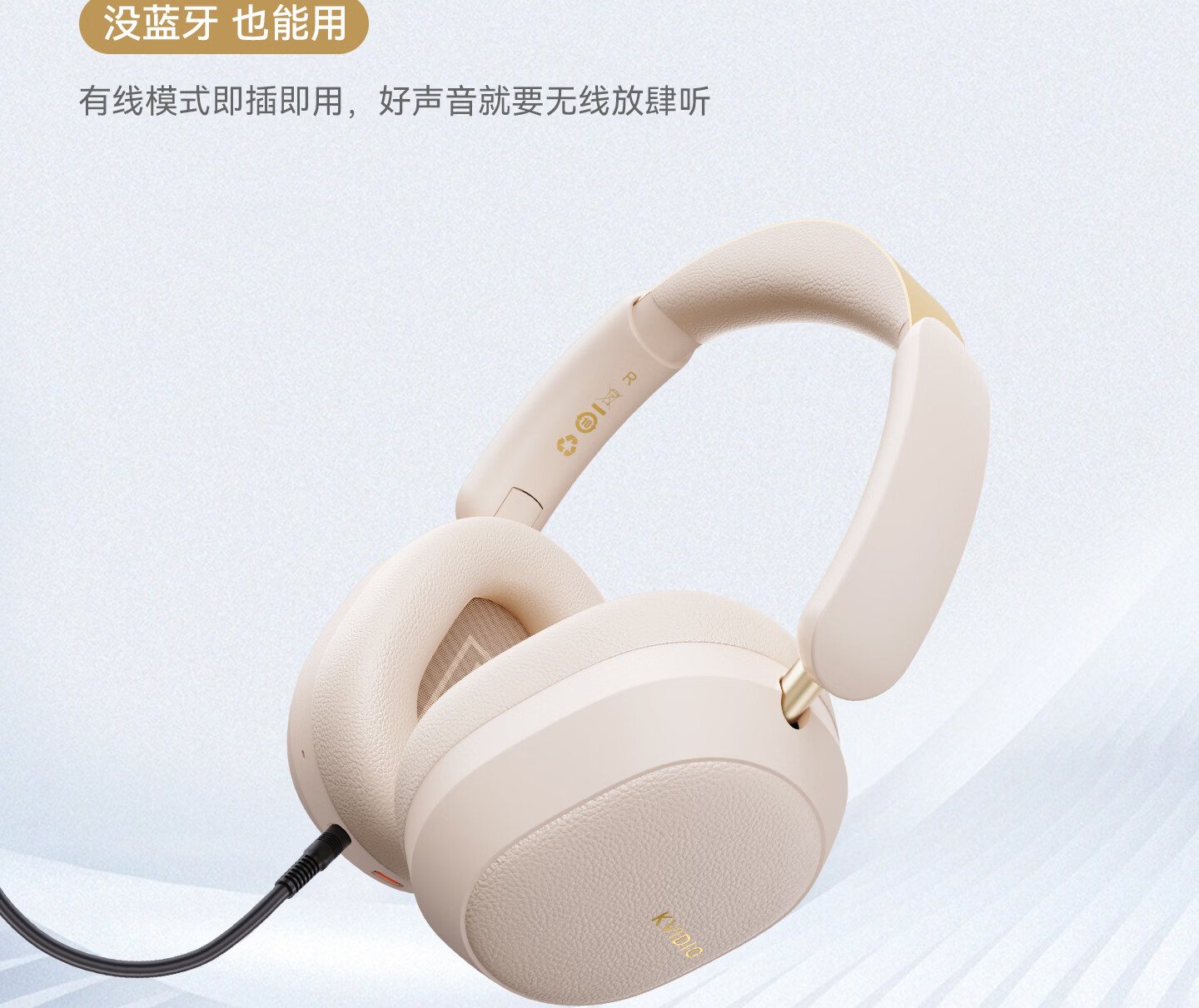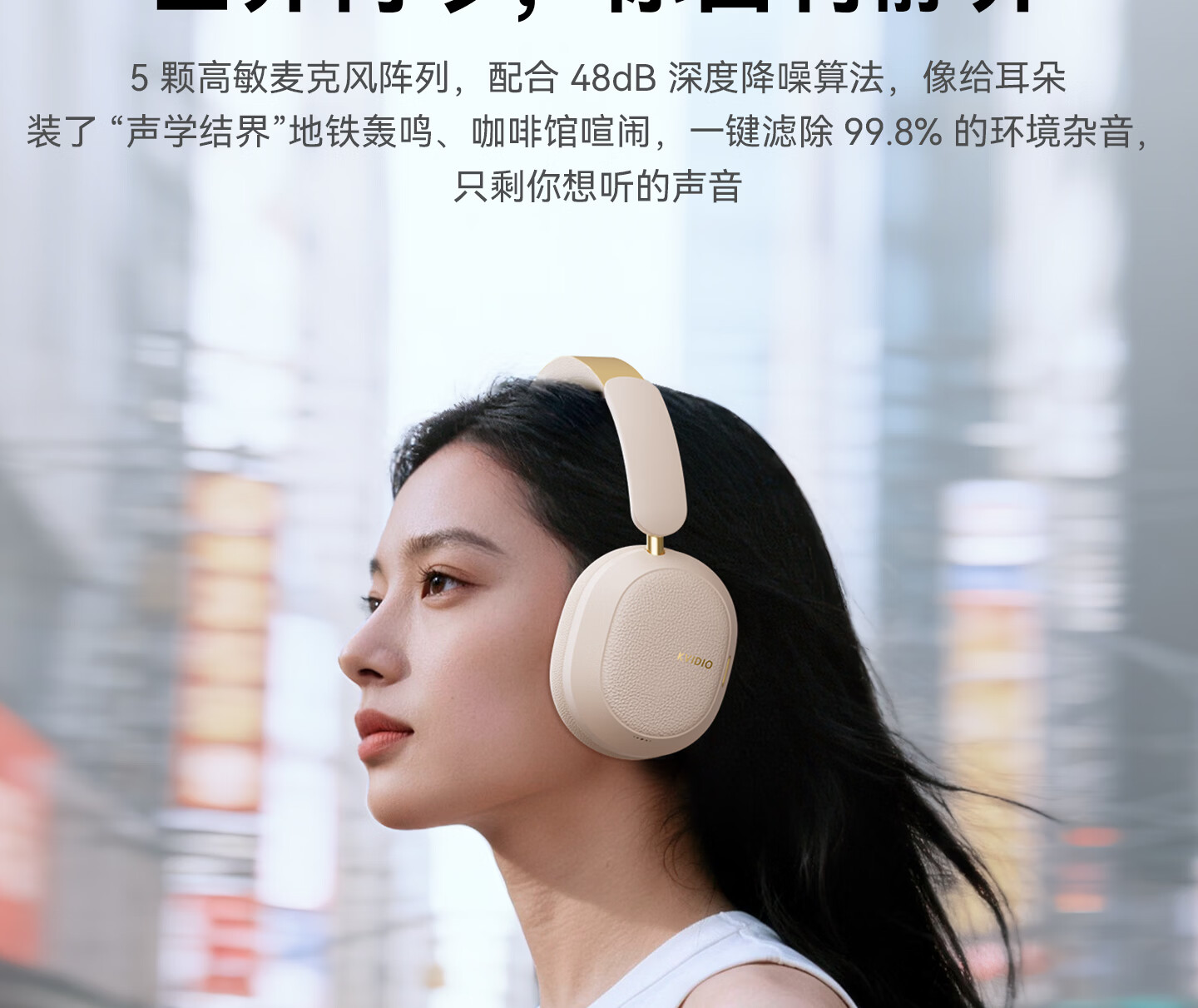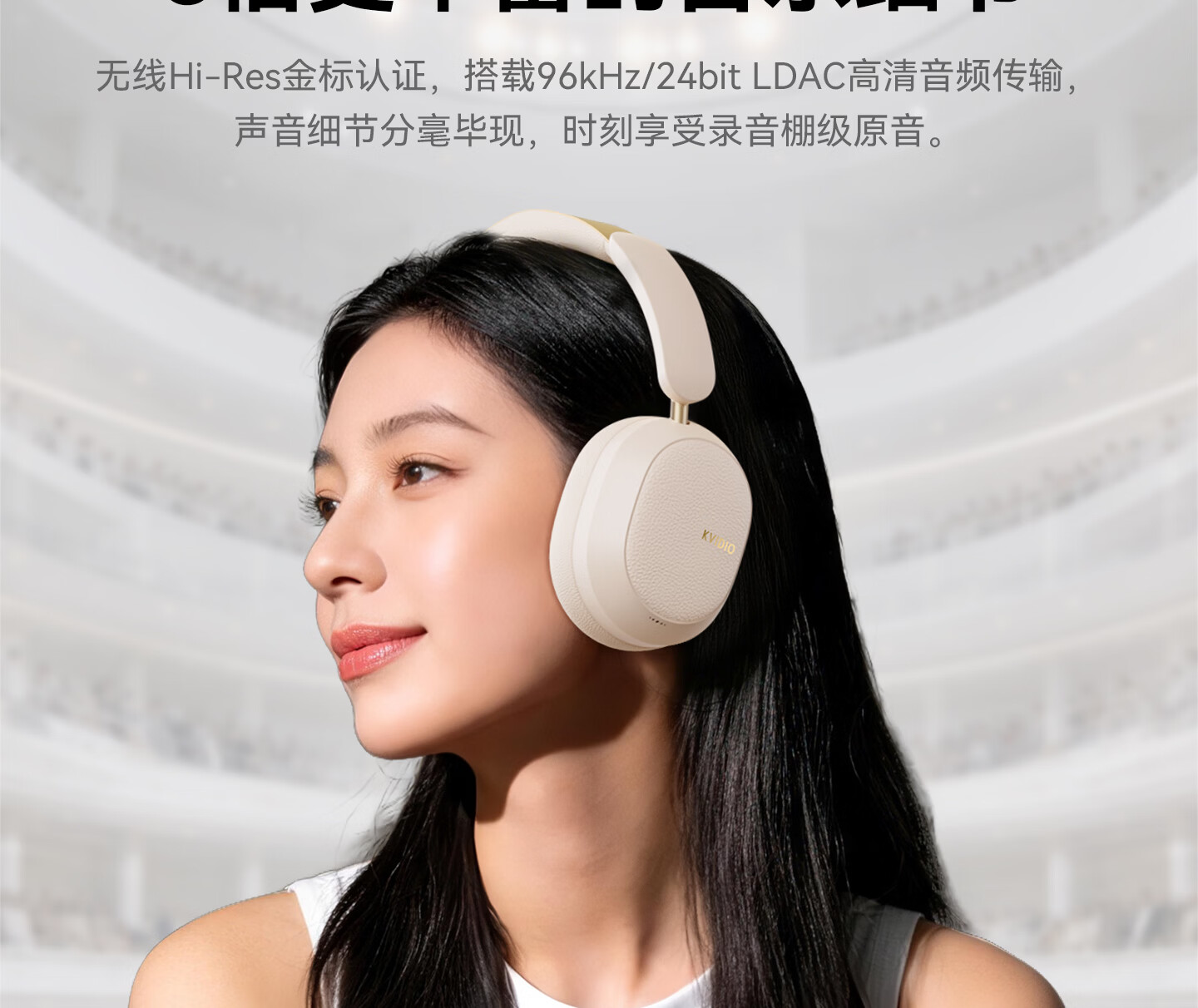 KVIDIO可维迪306A银翼PRO【头部追踪】蓝牙耳机头戴式主动降噪无线耳机长续航电脑音乐耳麦睡觉隔音神器 云岩白【48dB降噪|头部追踪|APP操控|蓝牙6.0】