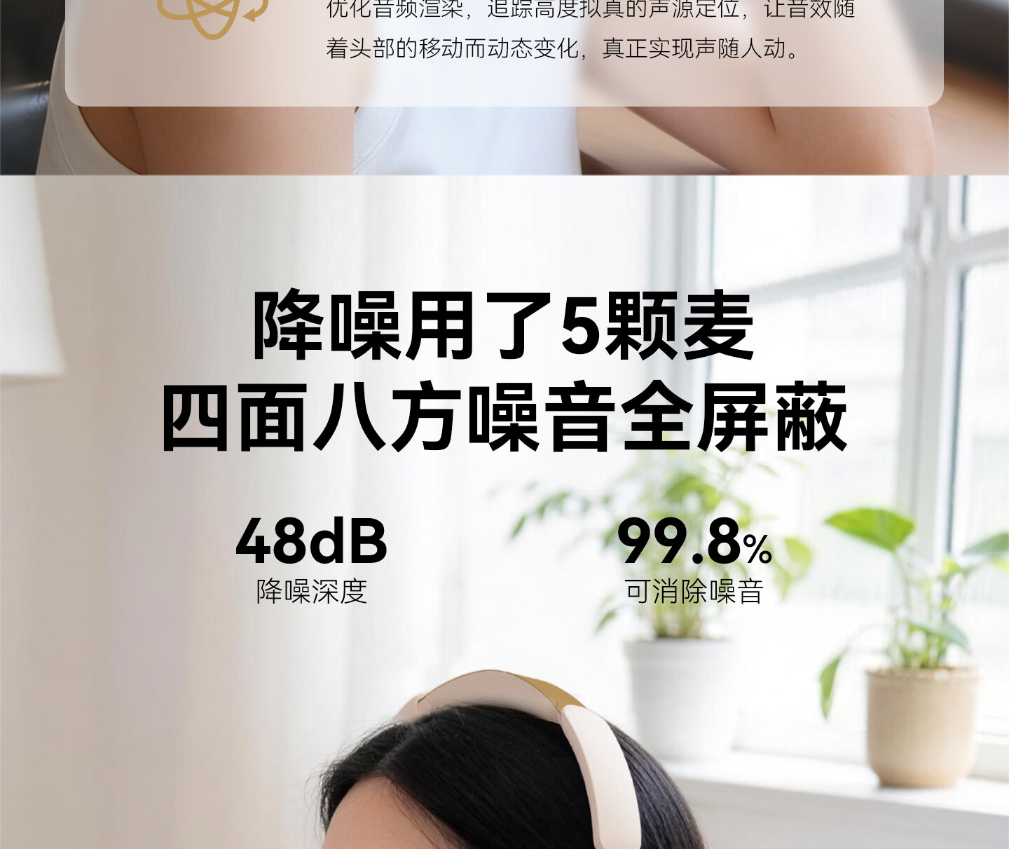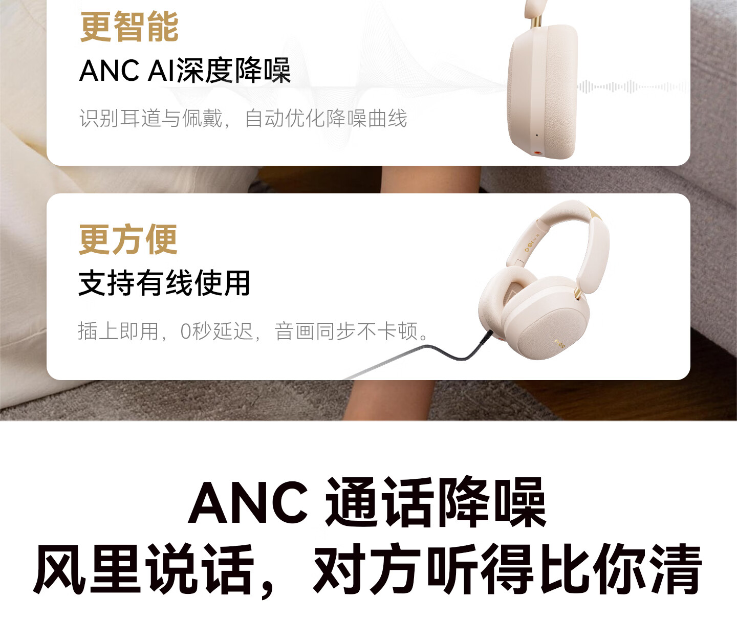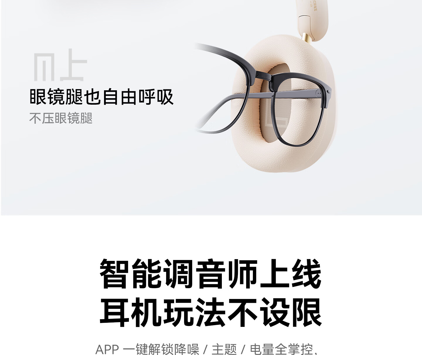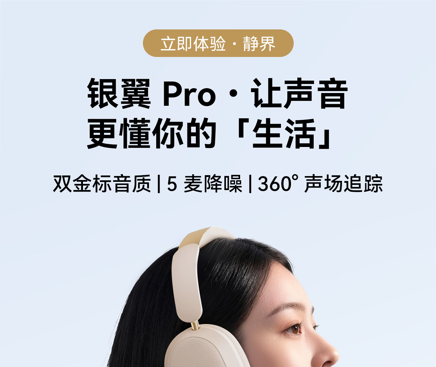 KVIDIO可维迪306A银翼PRO【头部追踪】蓝牙耳机头戴式主动降噪无线耳机长续航电脑音乐耳麦睡觉隔音神器 云岩白【48dB降噪|头部追踪|APP操控|蓝牙6.0】