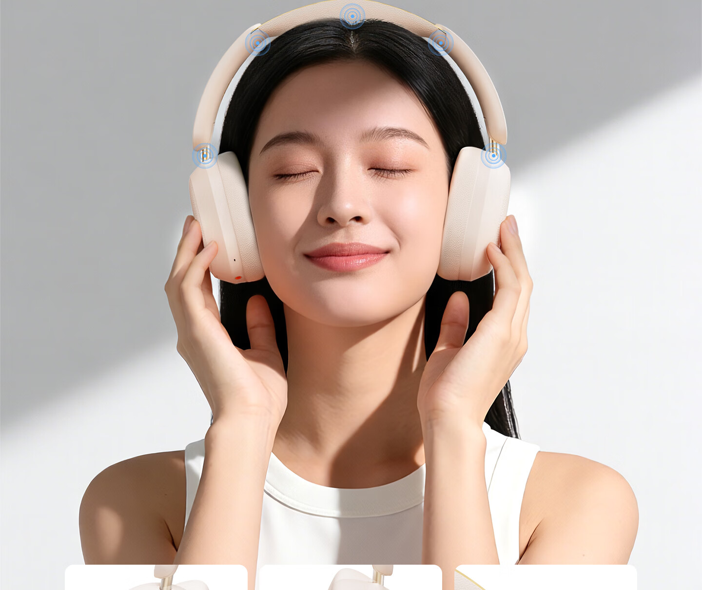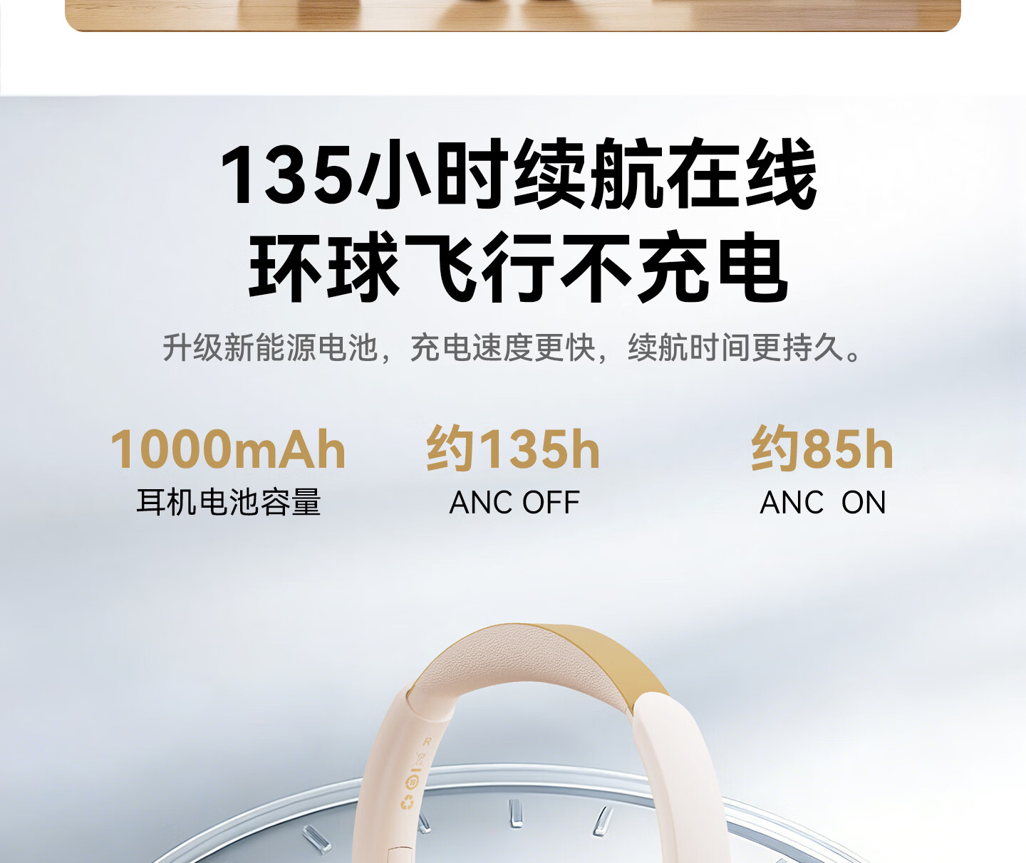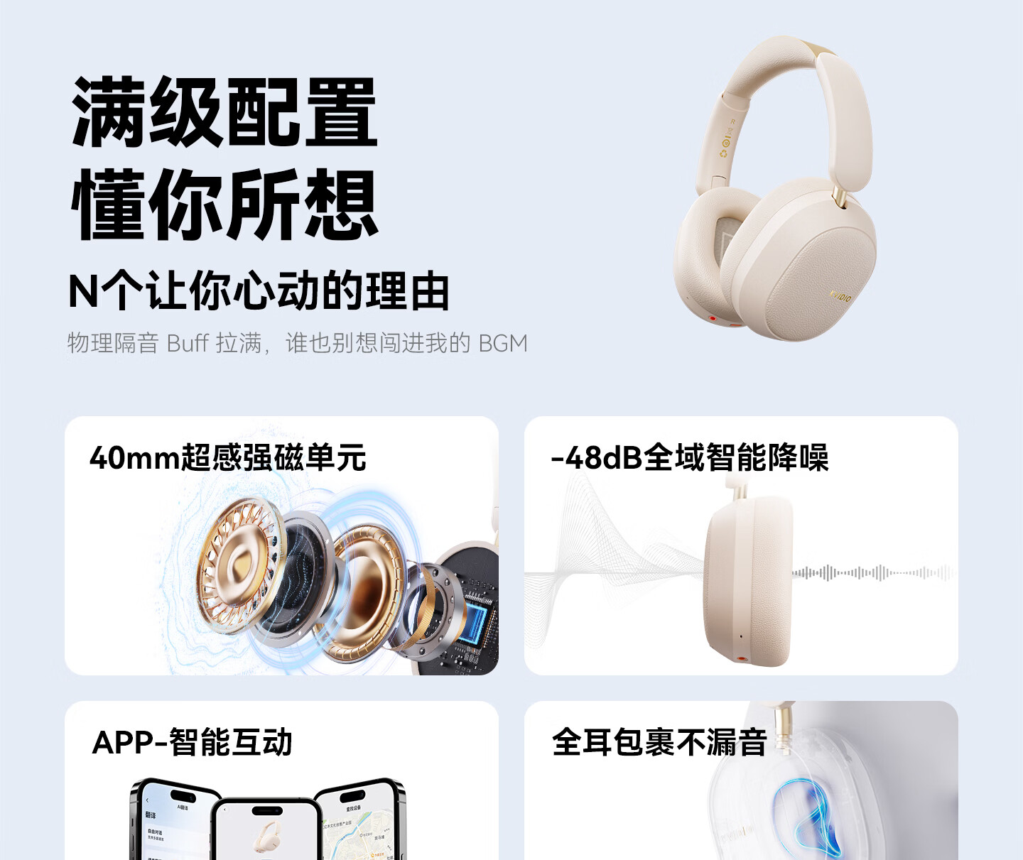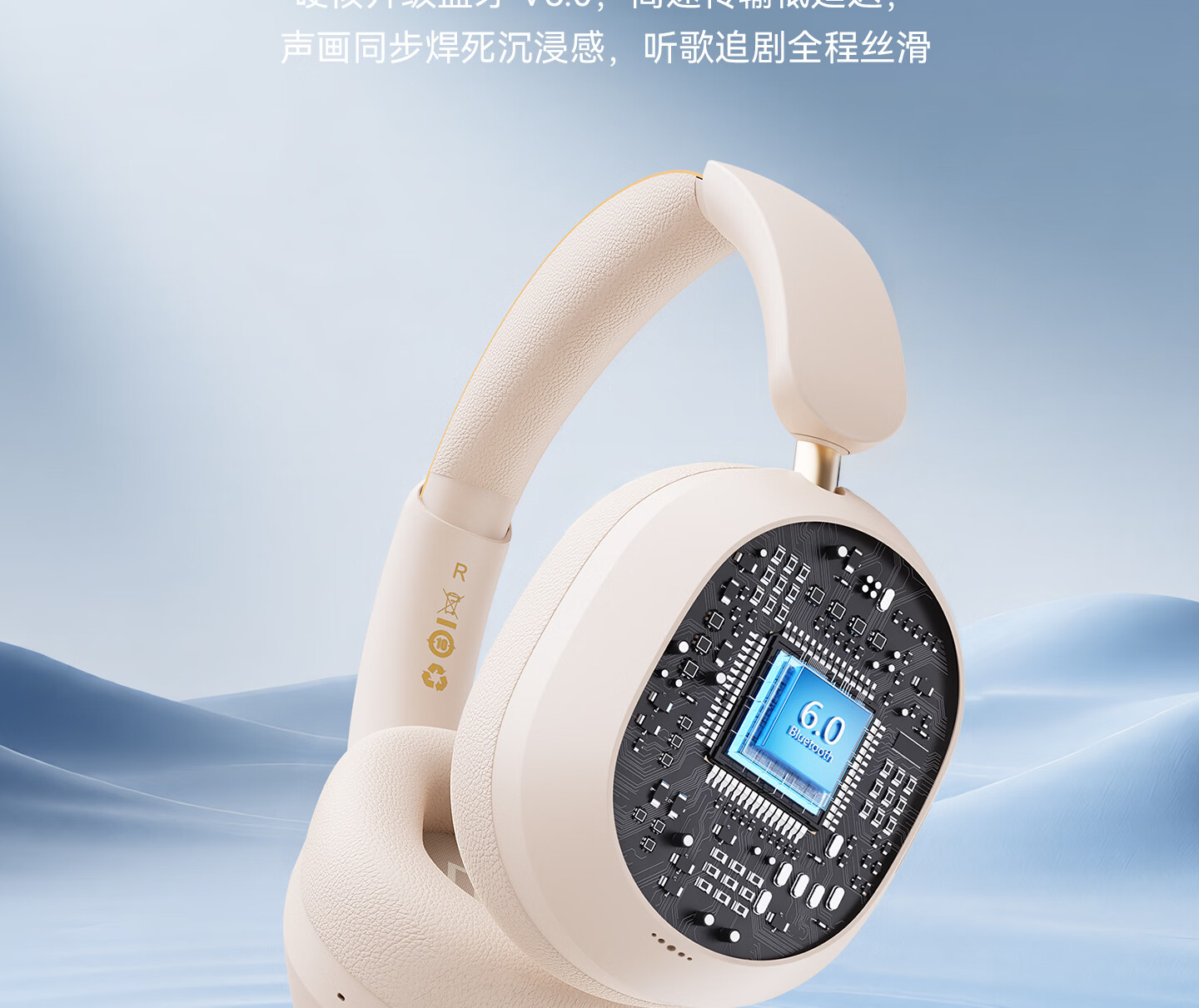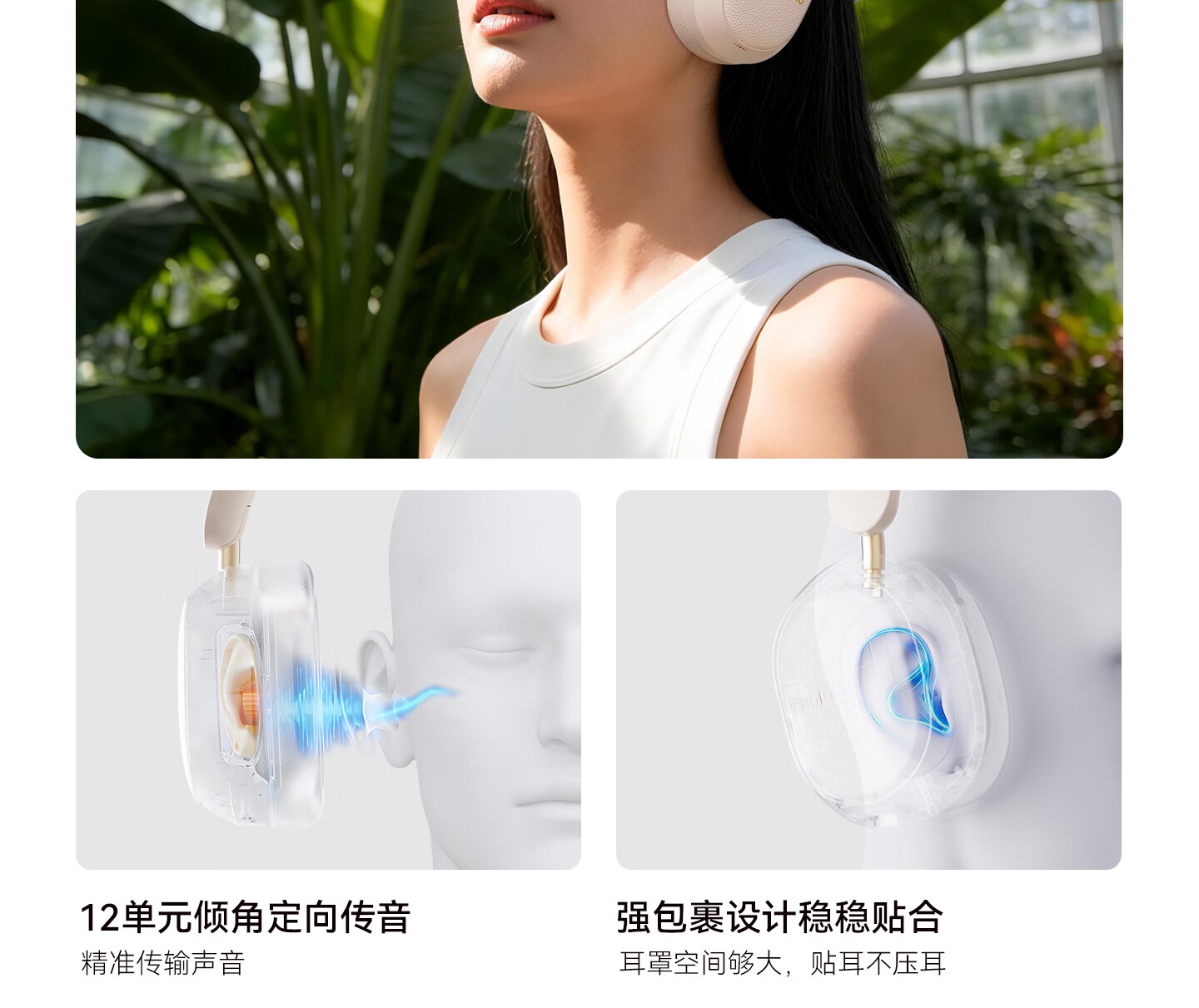 KVIDIO可维迪306A银翼PRO【头部追踪】蓝牙耳机头戴式主动降噪无线耳机长续航电脑音乐耳麦睡觉隔音神器 云岩白【48dB降噪|头部追踪|APP操控|蓝牙6.0】