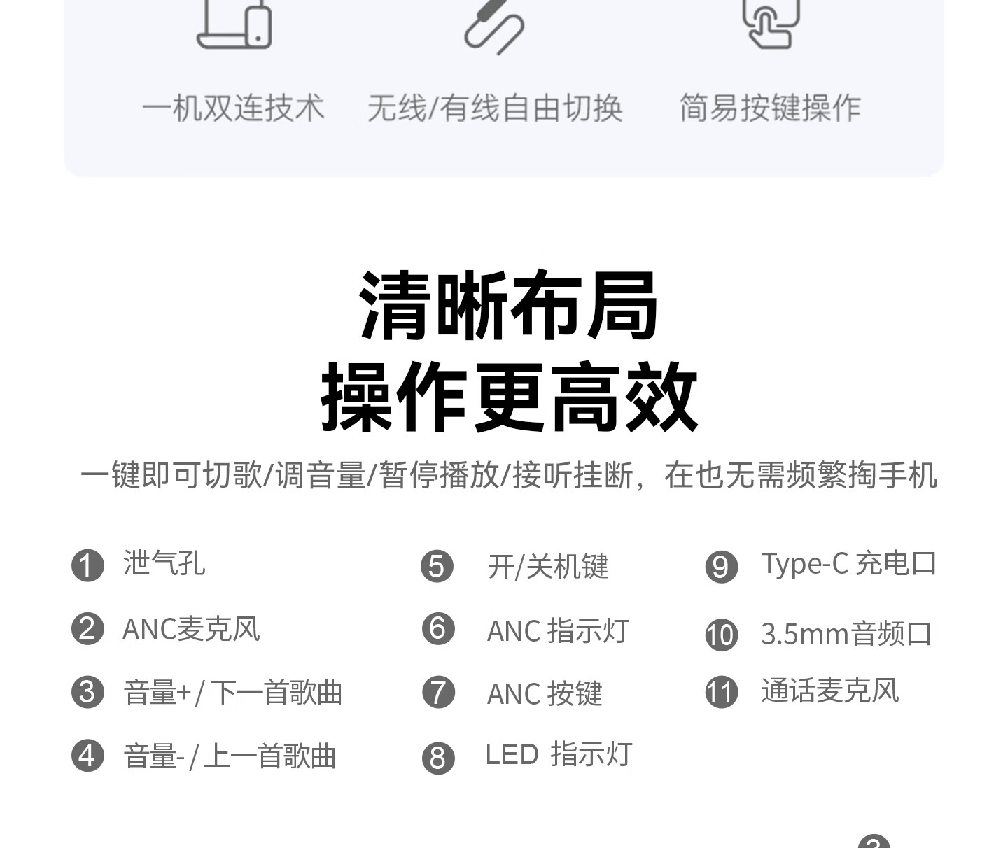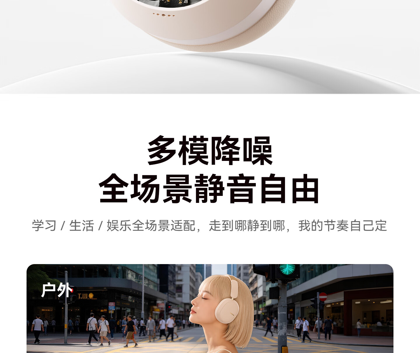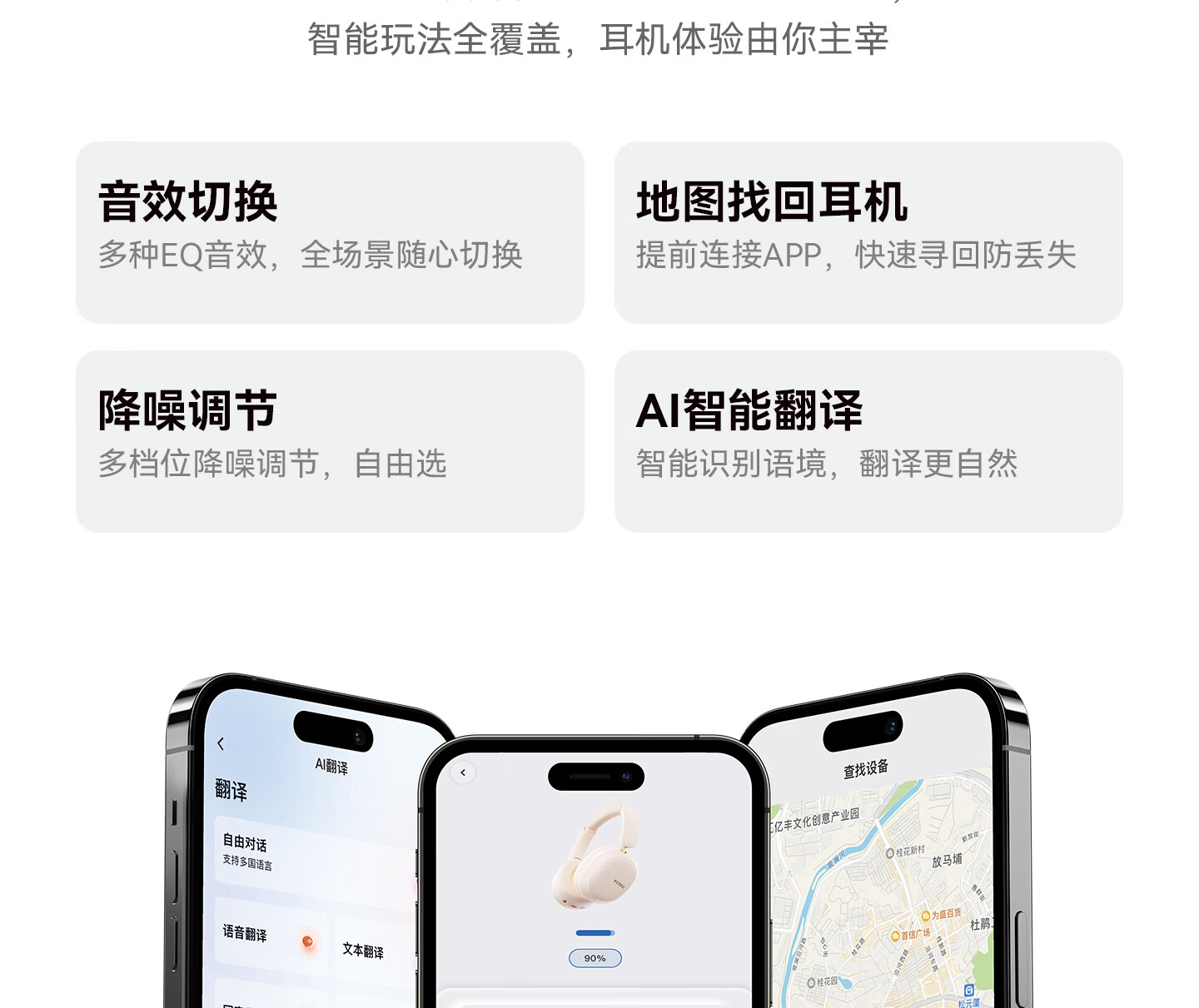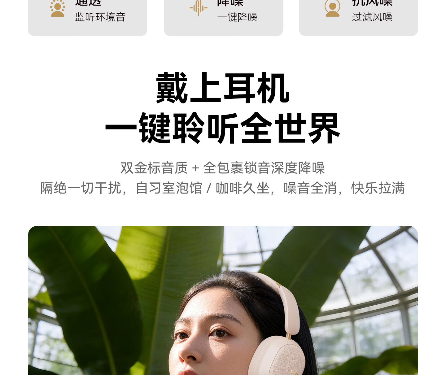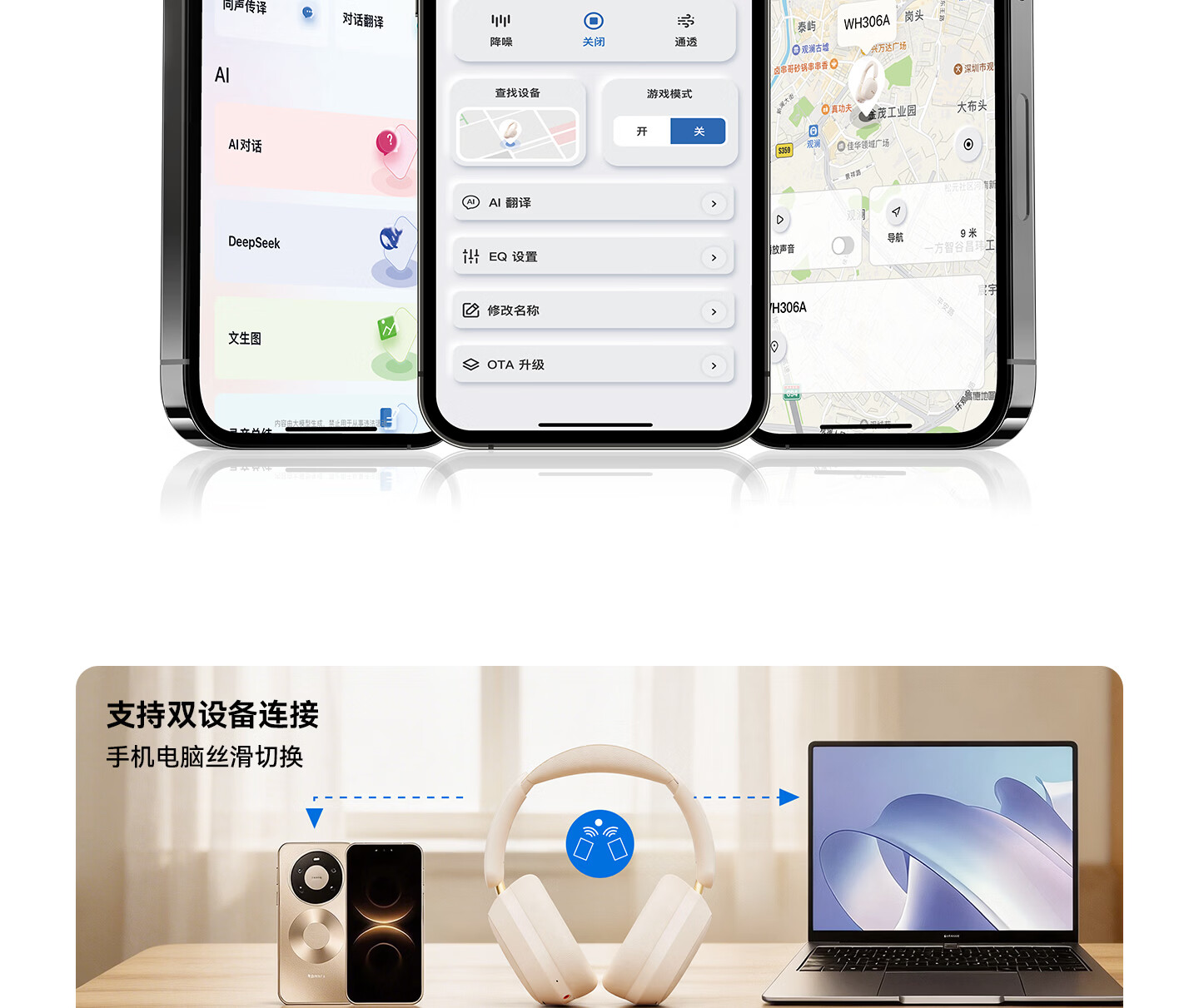 KVIDIO可维迪306A银翼PRO【头部追踪】蓝牙耳机头戴式主动降噪无线耳机长续航电脑音乐耳麦睡觉隔音神器 云岩白【48dB降噪|头部追踪|APP操控|蓝牙6.0】