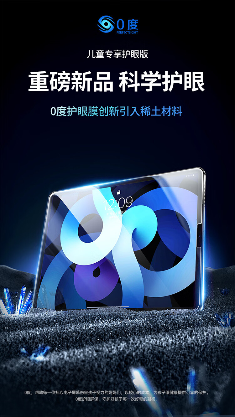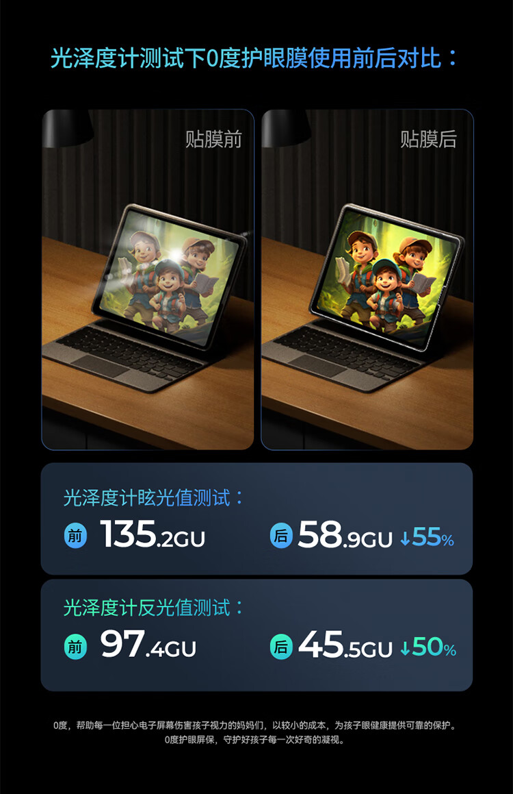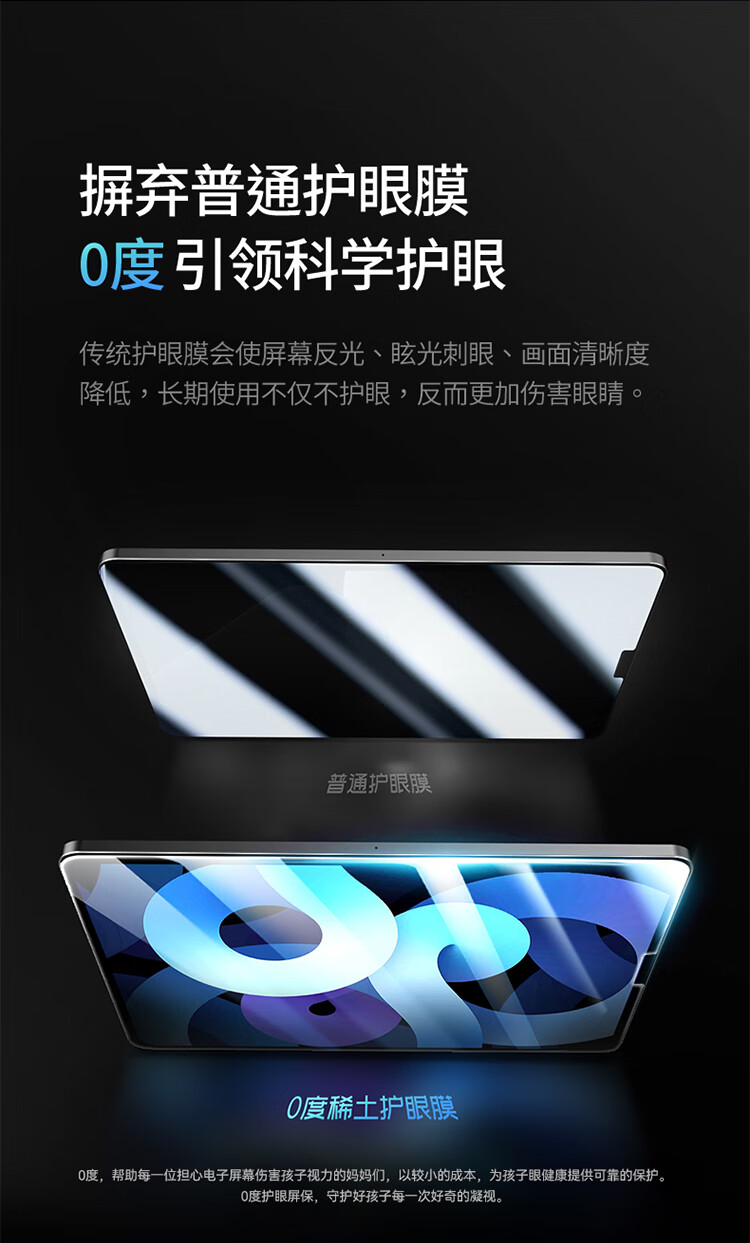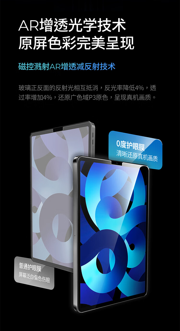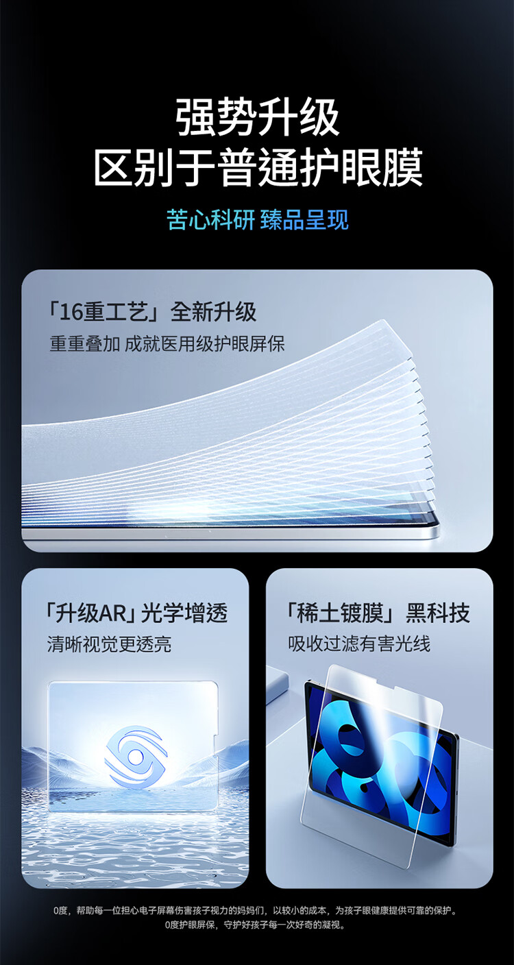 0度官方旗舰店品牌直营2025款苹果iPad pro钢化膜平板保护膜护眼膜AR增透磨砂防眩光防指纹抗蓝光 iPad Air 25/24款】11英寸 稀土医用护眼AG防眩+AR增透+AF抗指纹
