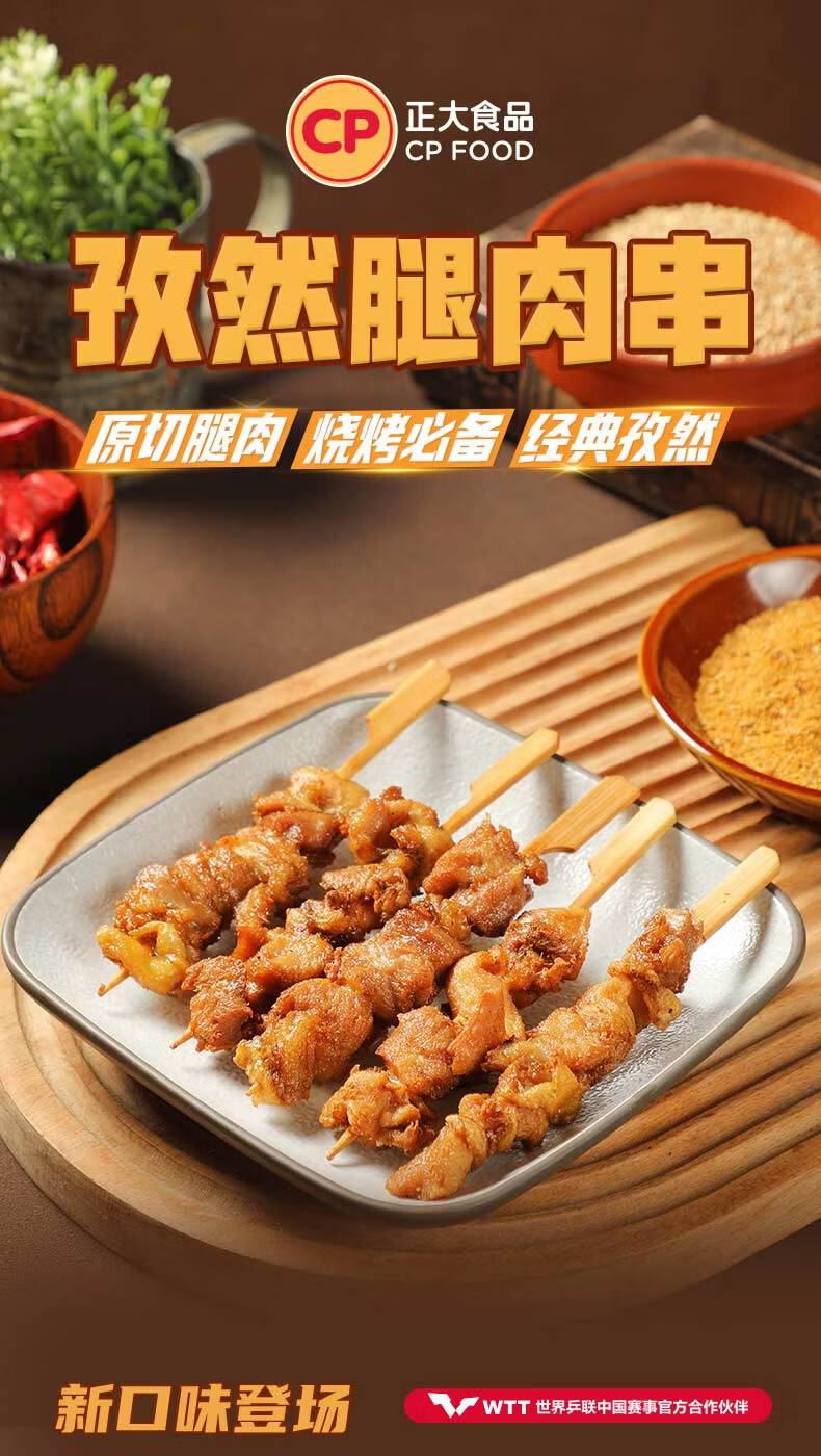 正大 炸鸡 油炸鸡肉品 空气炸食材 冷冻半成品 孜然腿肉串320g*5袋 共3.2斤