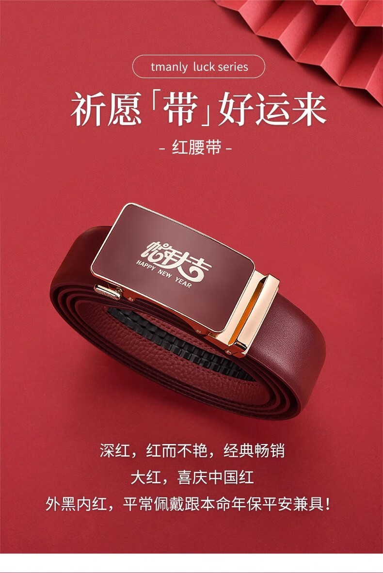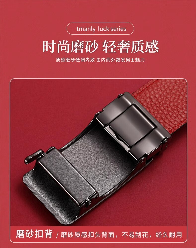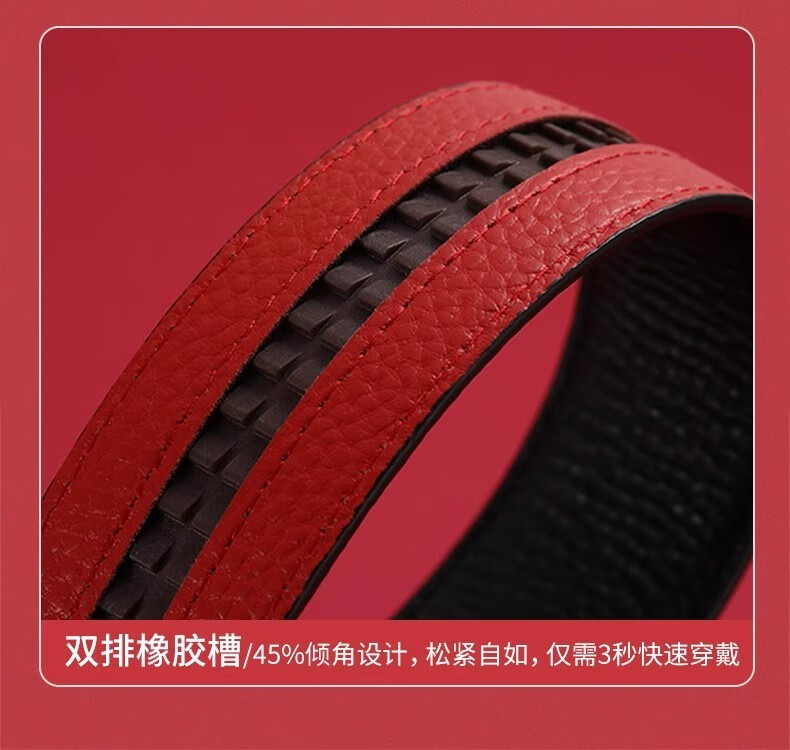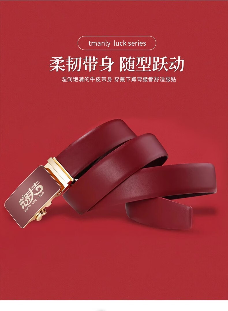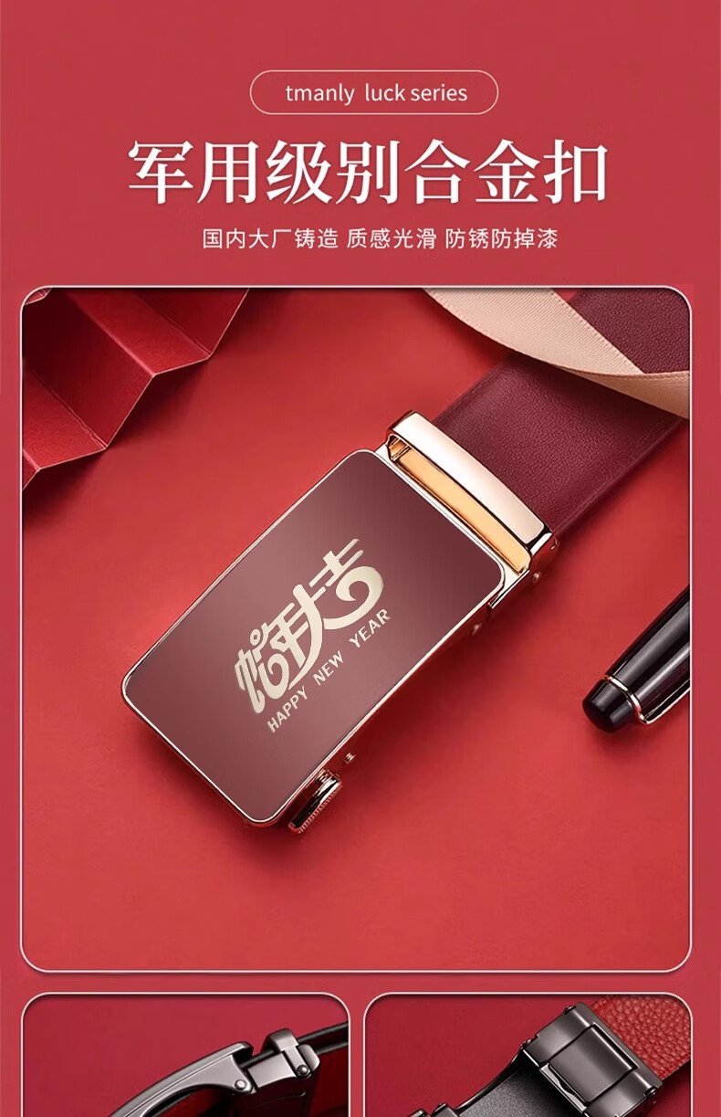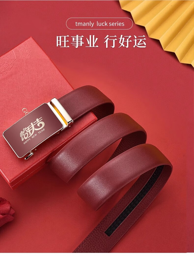 酷奇袋鼠酷奇红腰带本命年男士真皮皮带属蛇年高档礼物头层酒红转运皮裤带 蛇年好运黑红(纳帕纹双面牛皮) 140cm
