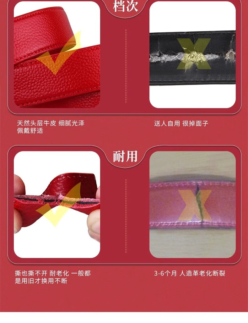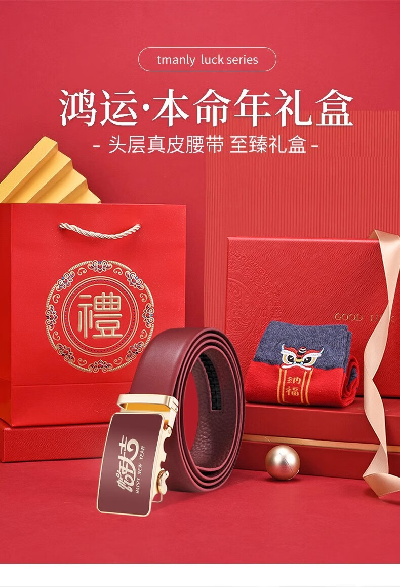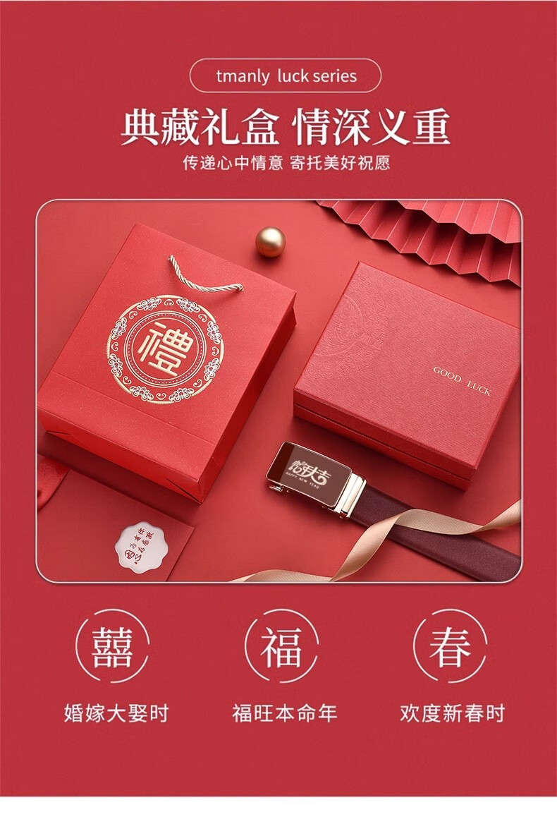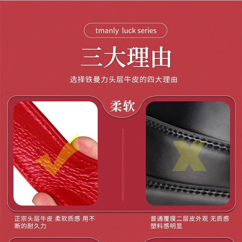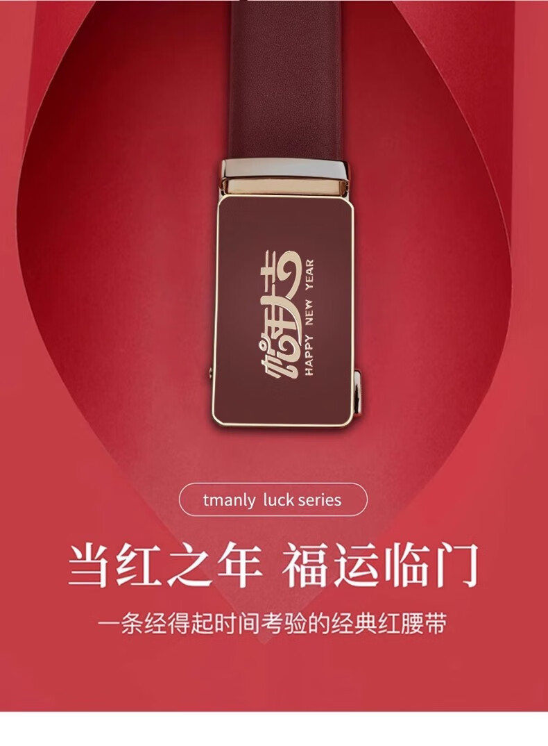 酷奇袋鼠酷奇红腰带本命年男士真皮皮带属蛇年高档礼物头层酒红转运皮裤带 蛇年好运黑红(纳帕纹双面牛皮) 140cm