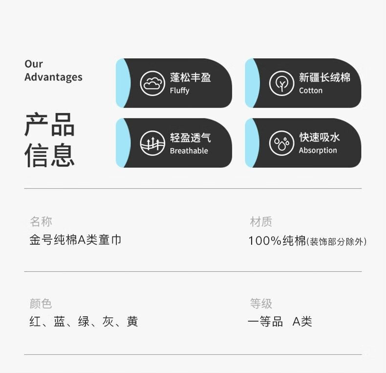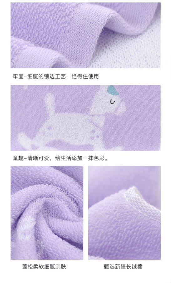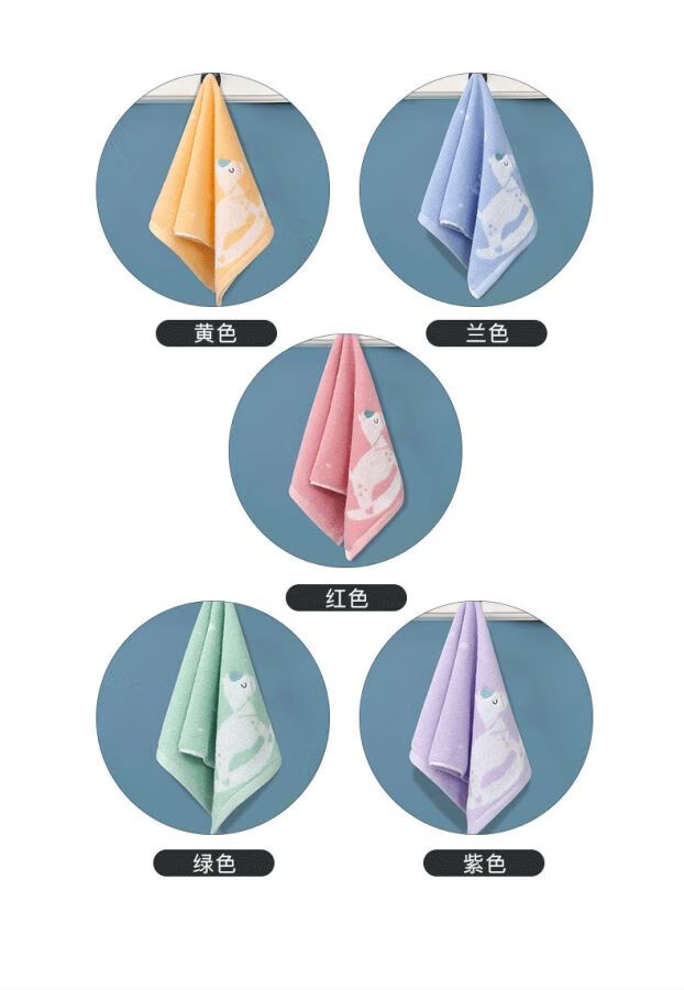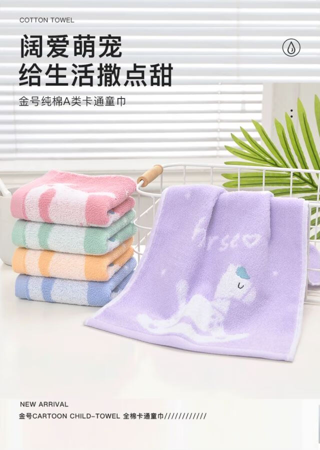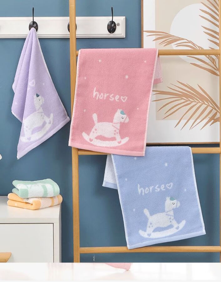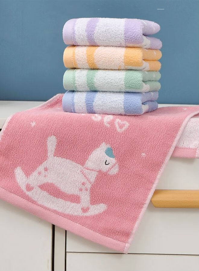 金号全棉儿童毛巾家用柔软亲肤小孩洗脸擦手巾童巾毛巾纯棉100%纯棉 木马红绿紫黄蓝 5条