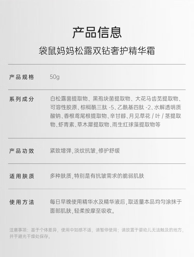 袋鼠妈妈准孕妇护肤品熟龄肌抗皱紧致专用面霜准孕肌黑白松露双抗精华霜