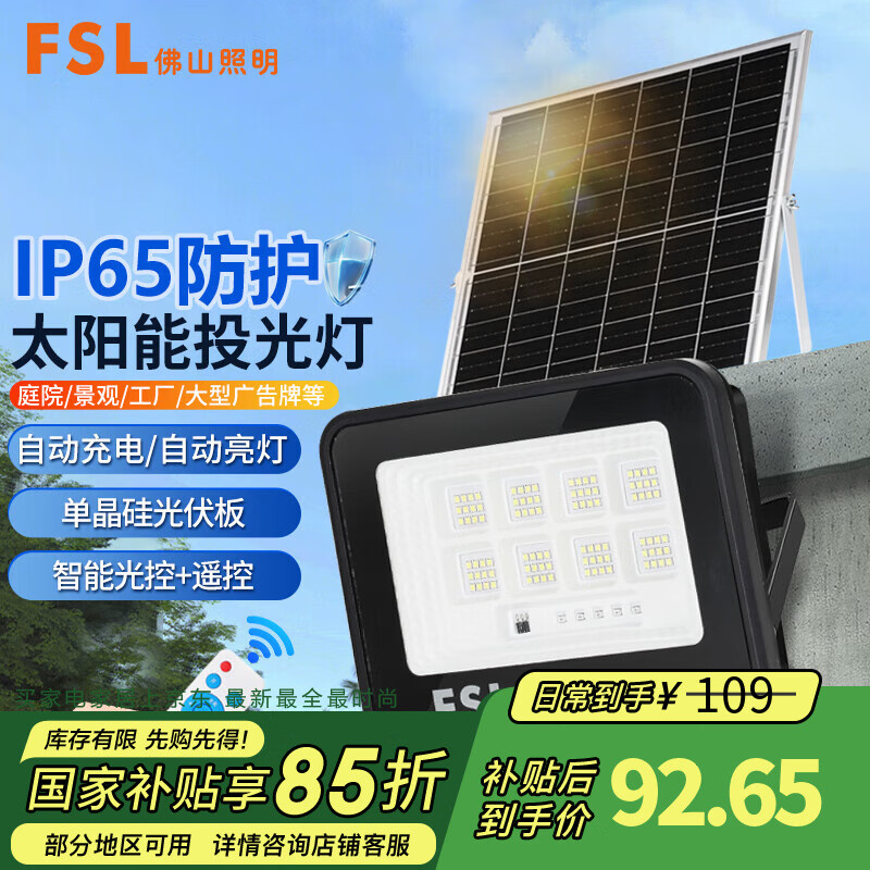 FSL佛山照明 太阳能照明灯路灯户外庭院景观灯防水led投光灯农村门口 270流明约照7平米 3W 5Ah
