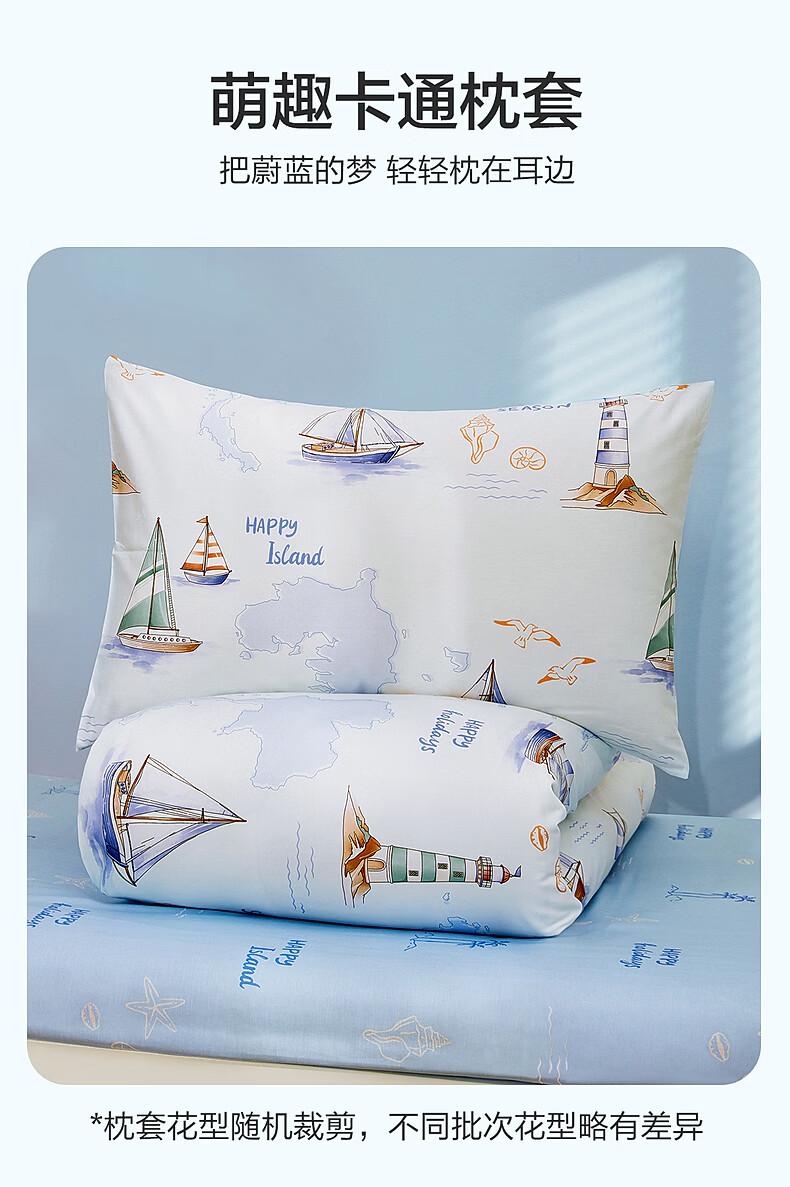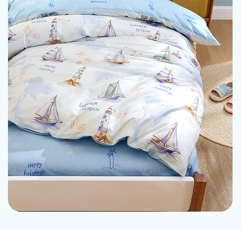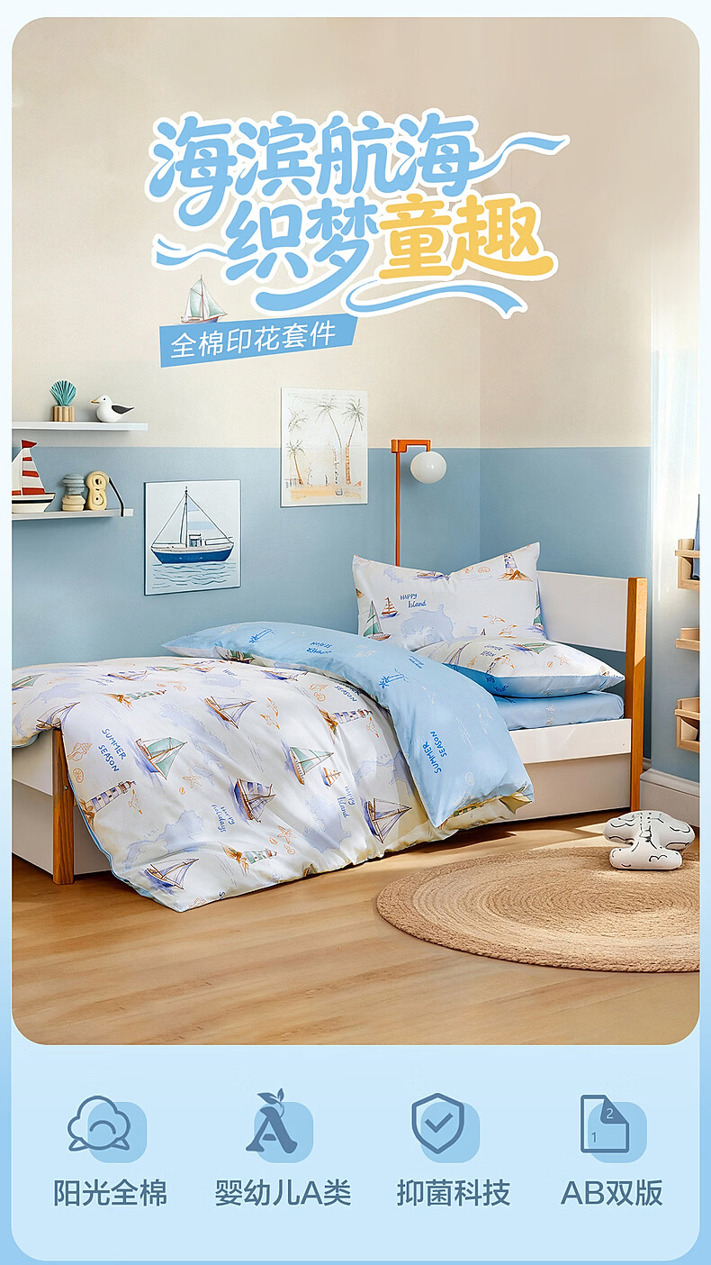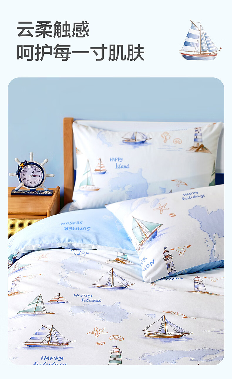 水星家纺四件套床上用品纯棉100%全棉婴幼儿A类儿童学生宿舍26年套件 海滨航海日记 床单款 (被套150*210cm)
