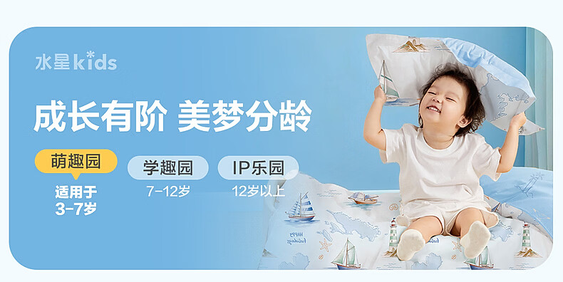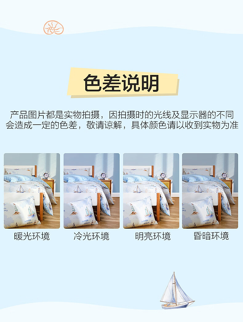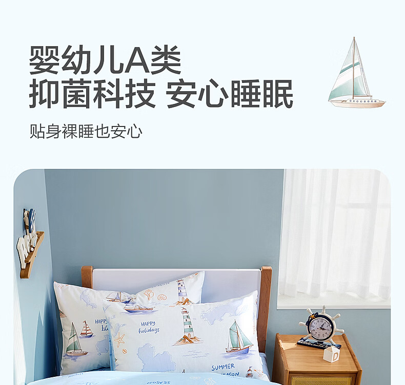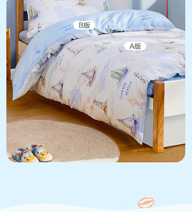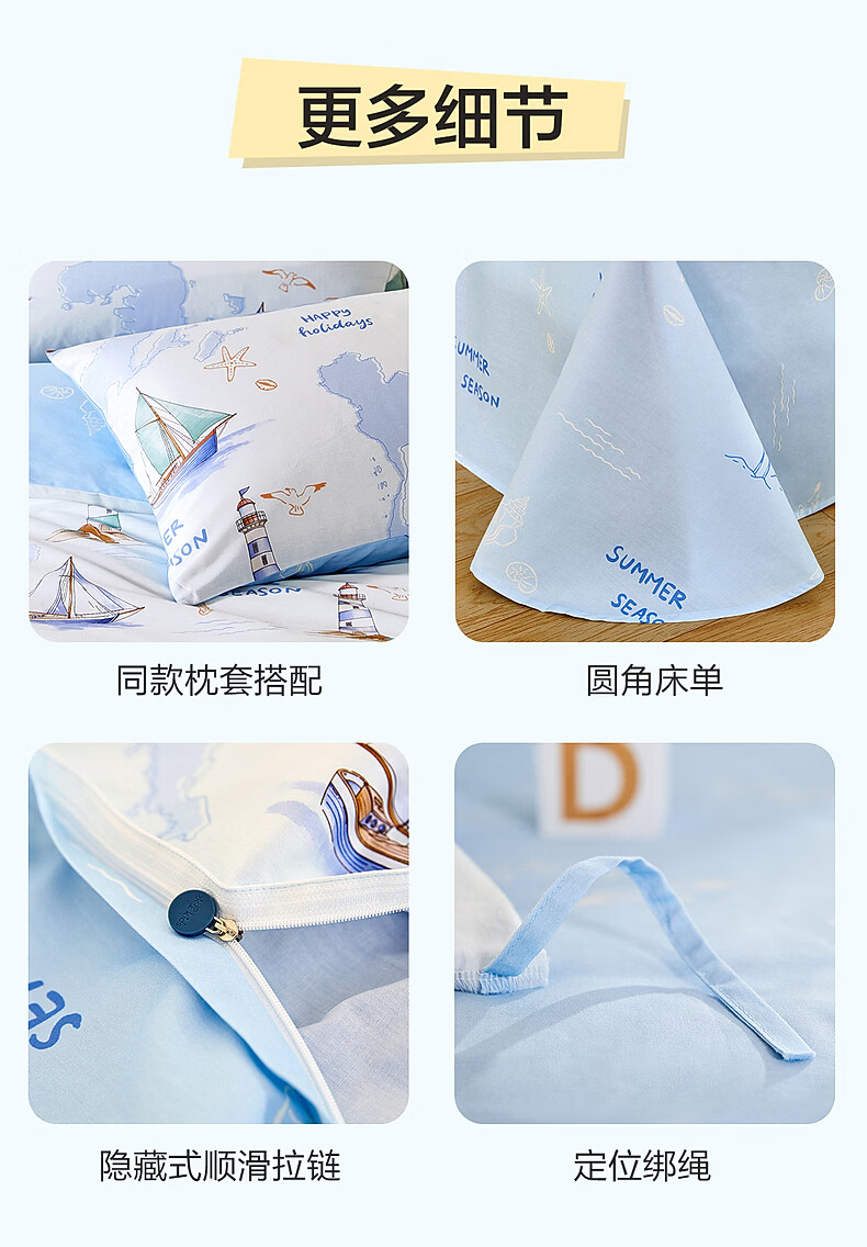 水星家纺四件套床上用品纯棉100%全棉婴幼儿A类儿童学生宿舍26年套件 海滨航海日记 床单款 (被套150*210cm)