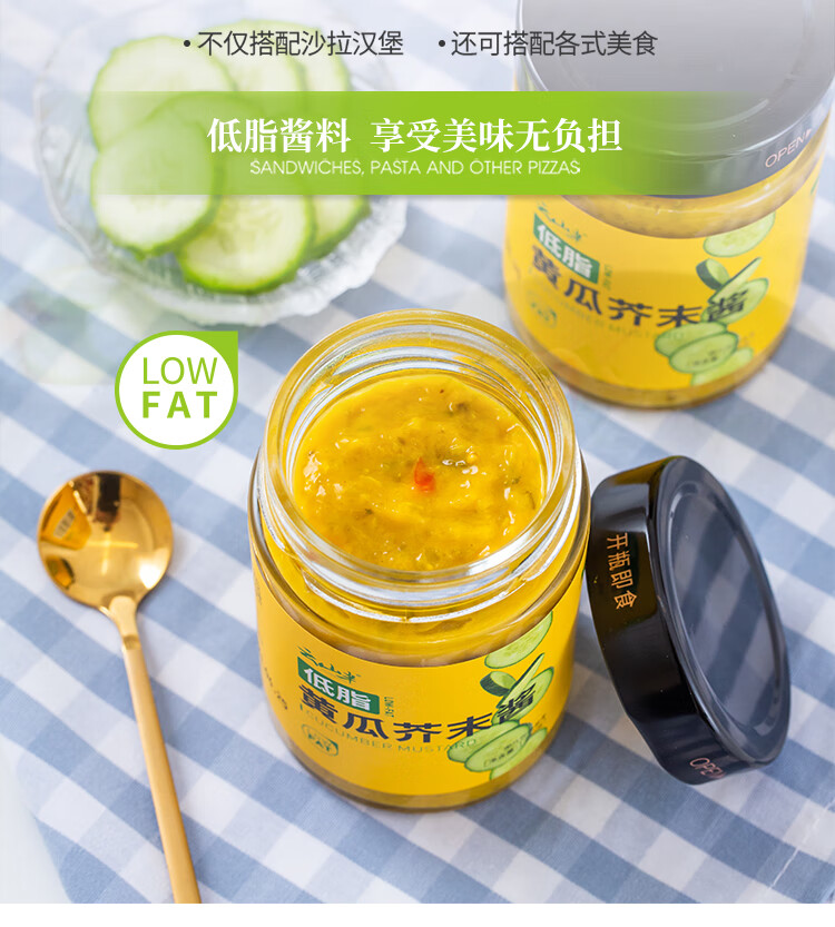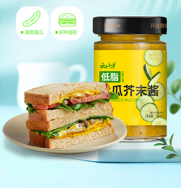云山半低脂肪黄瓜芥末味调味酱250g 青瓜蓉黄芥末沙拉酱三明治汉堡蘸酱