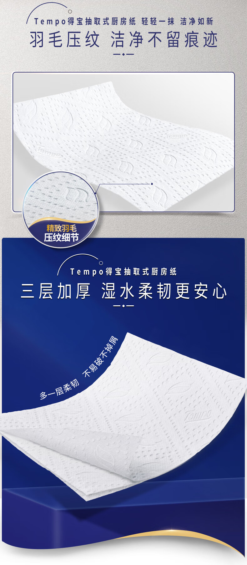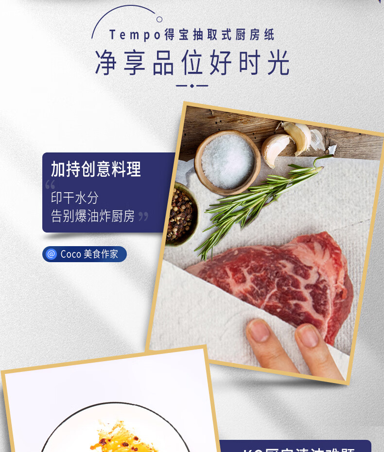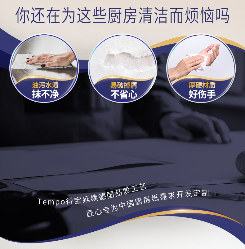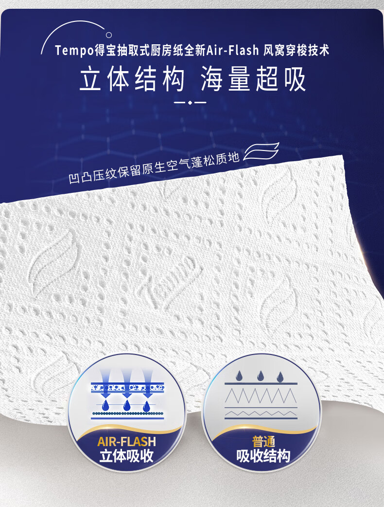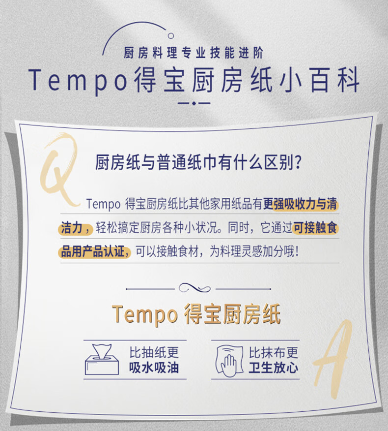 得宝(TEMPO)一博同款 厨房抽纸 66抽*9包 水油瞬吸 厨房用纸 吸油纸 懒人抹布