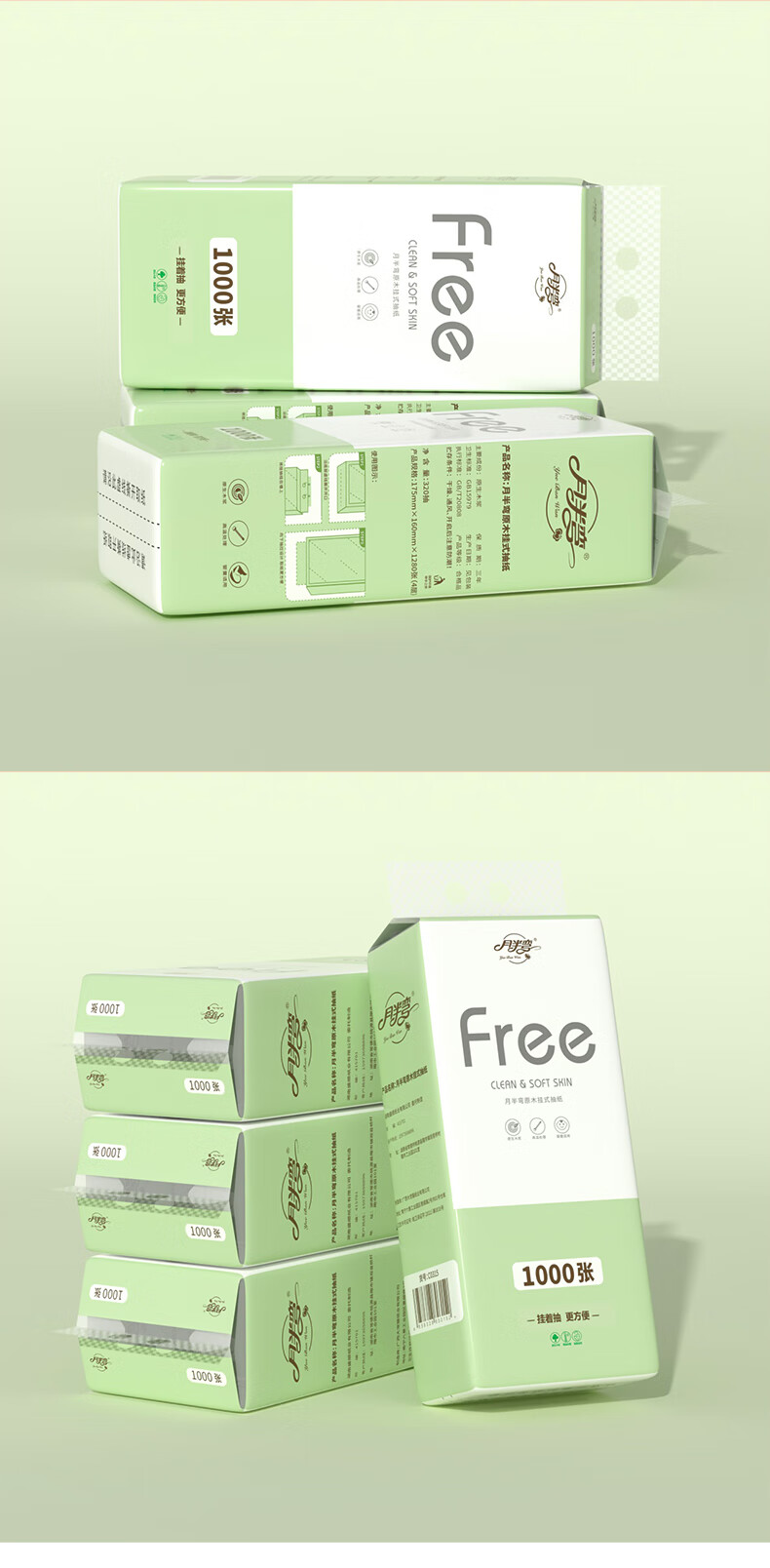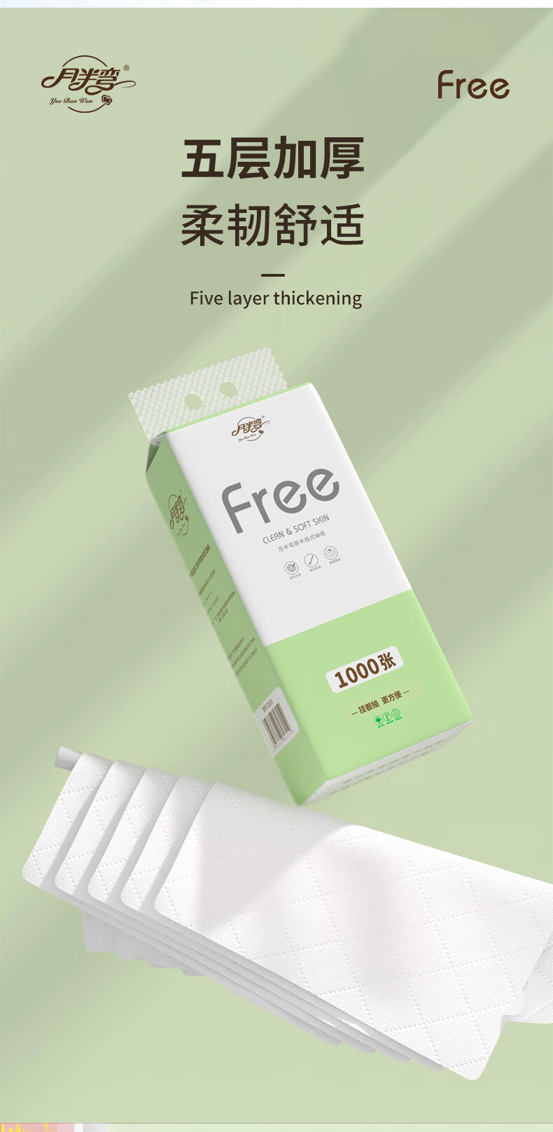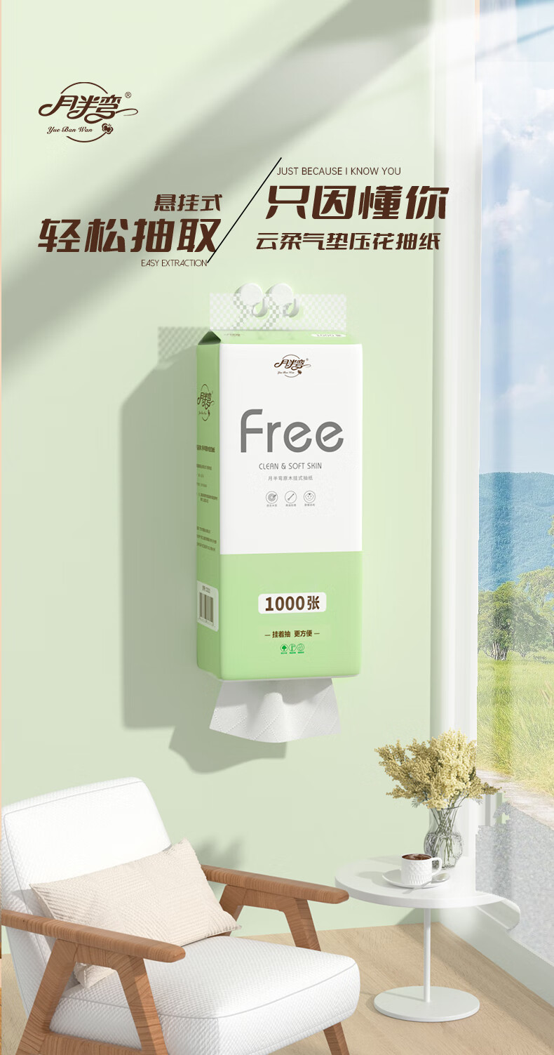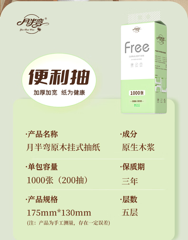 月半弯悬挂式抽纸挂抽5层1000张*10提面巾餐巾纸巾厕纸擦手纸整箱卫生纸
