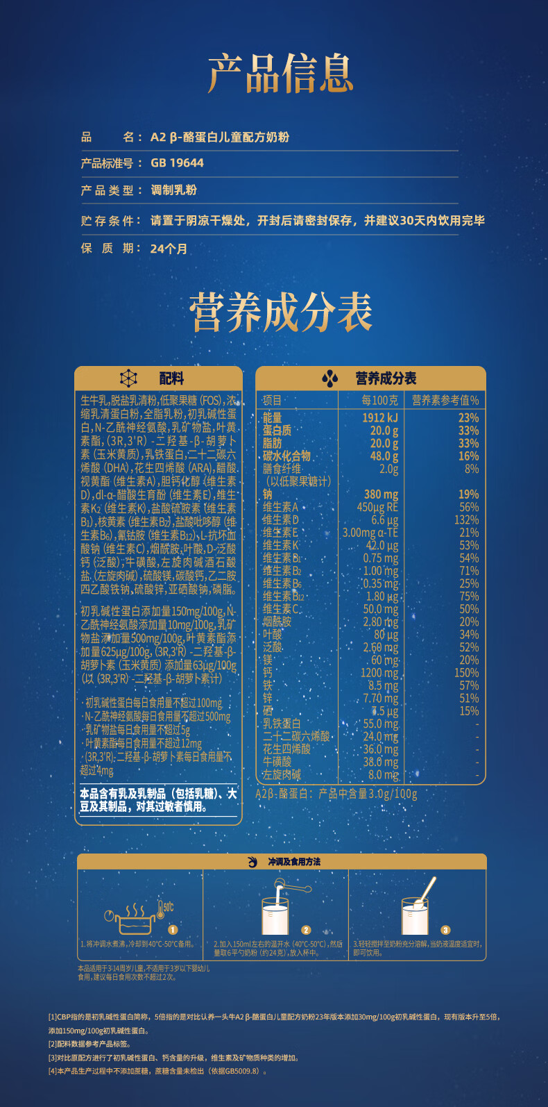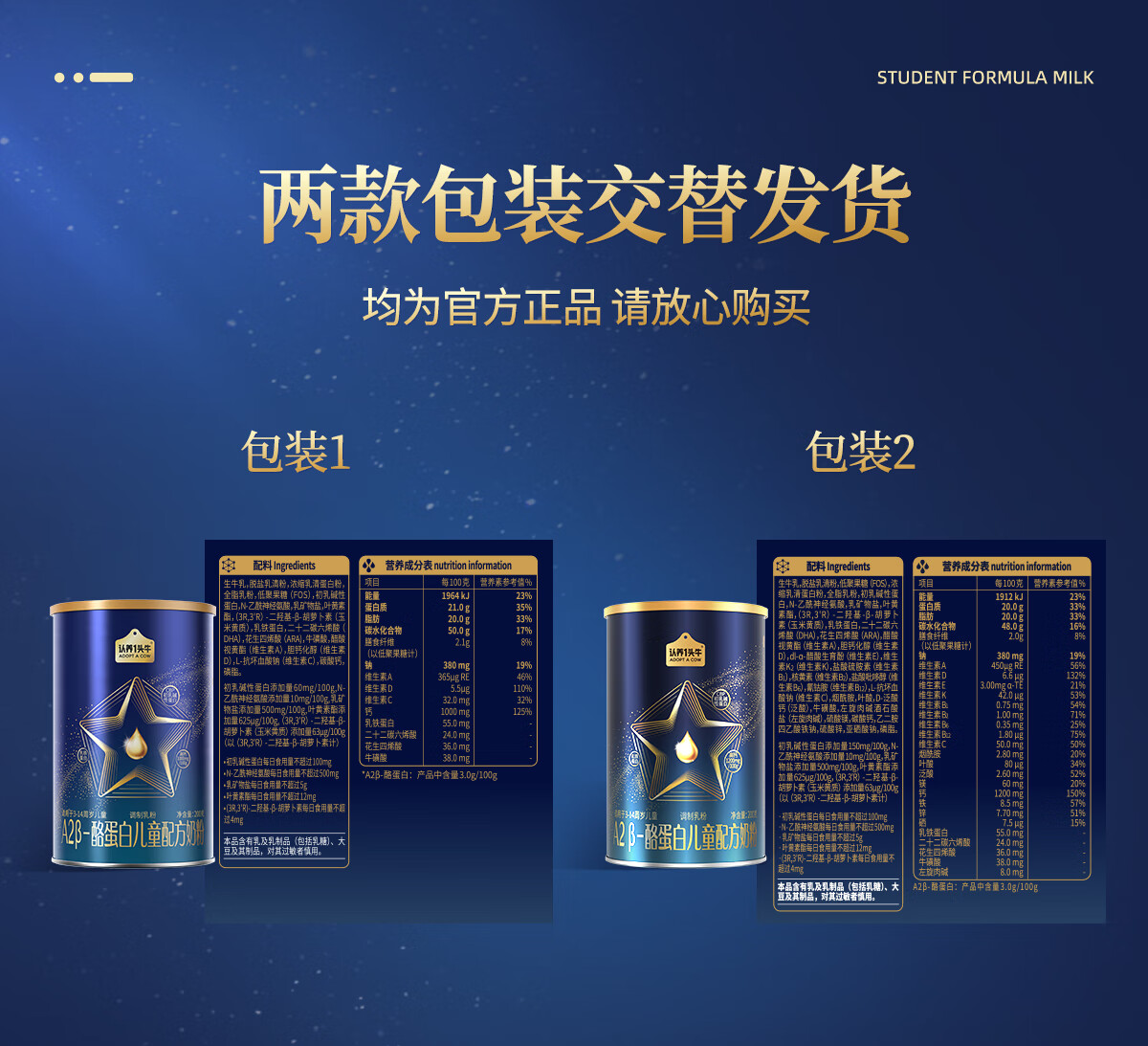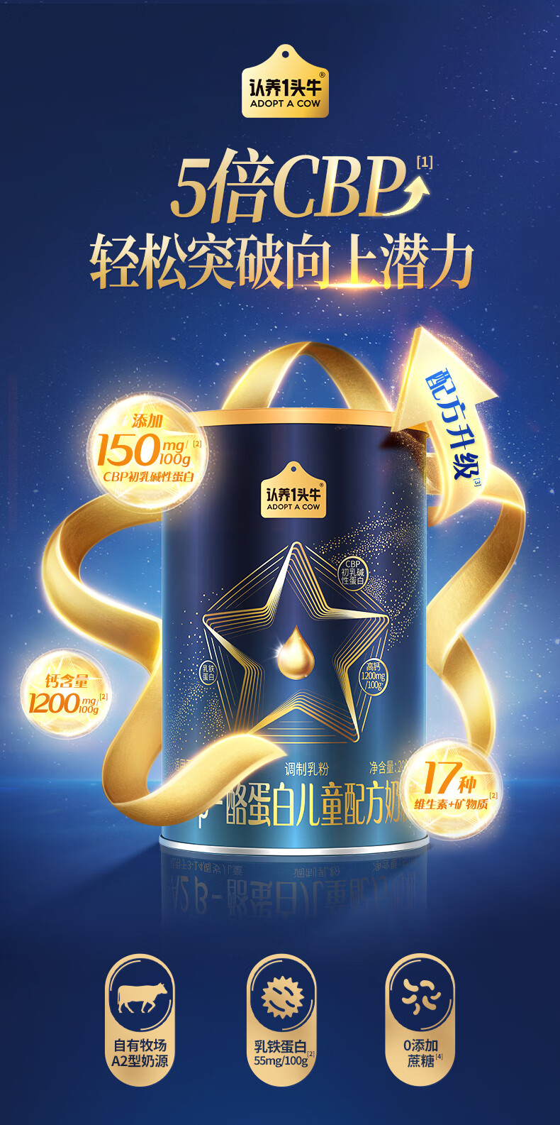 认养一头牛CBP儿童成长奶粉A2β-酪蛋白4段3周岁以上200g乳铁蛋白 便携