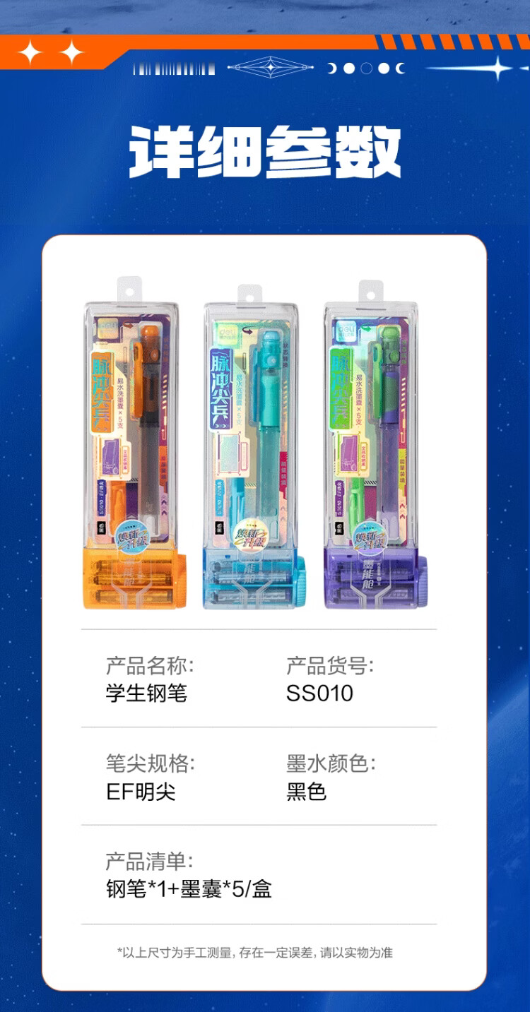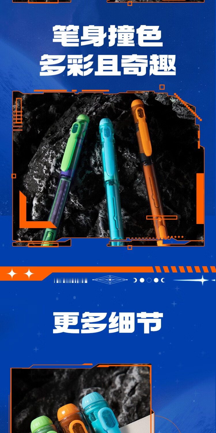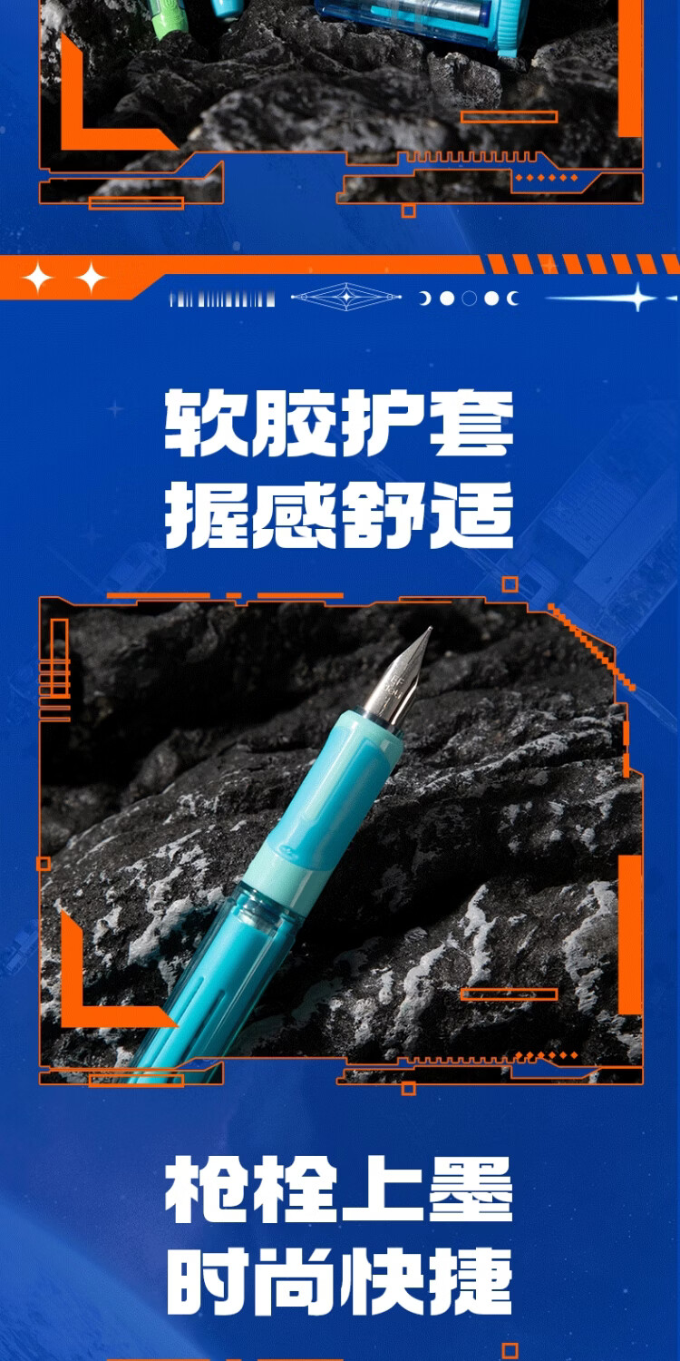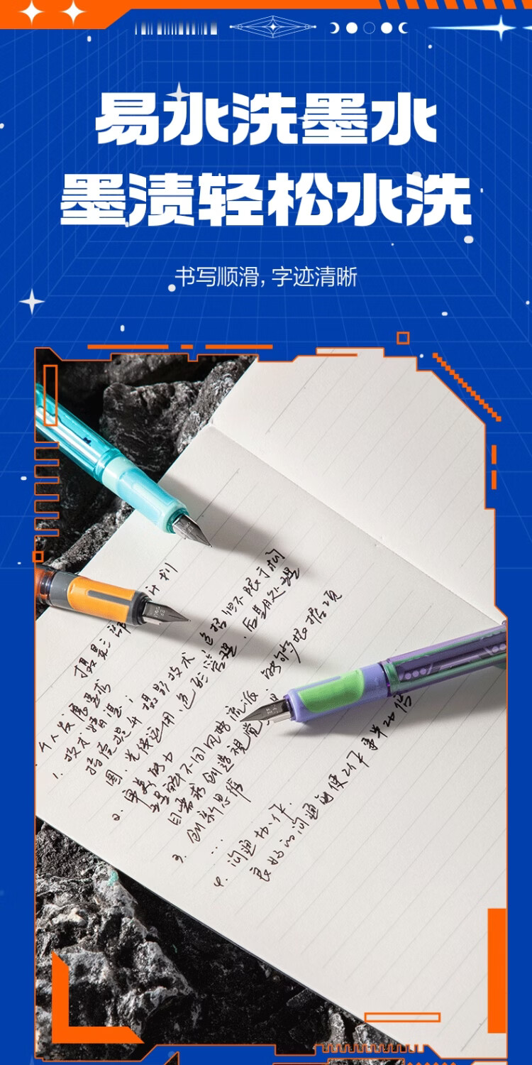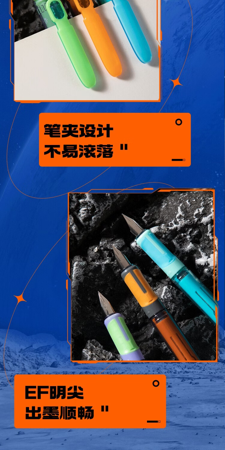 得力六边形战士脉冲尖兵钢笔三年级小学生儿童练字书法高颜值科技感易水洗可换墨囊四年级初学者笔 【橙色笔壳-黑色墨水】1支装+附5