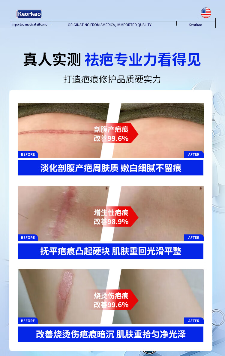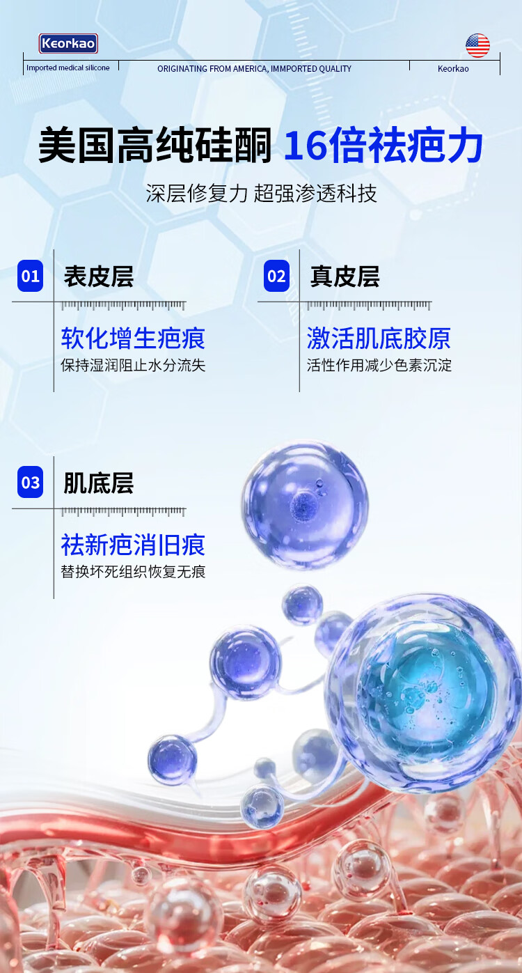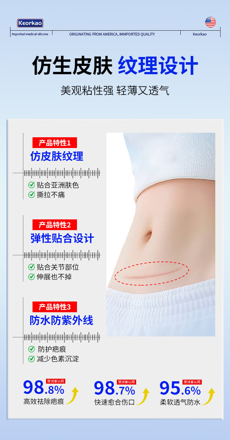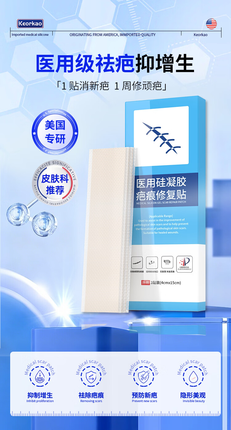 KEORKAO美国进口硅酮医用疤痕贴剖腹产膏减张贴去祛疤痕专用修复