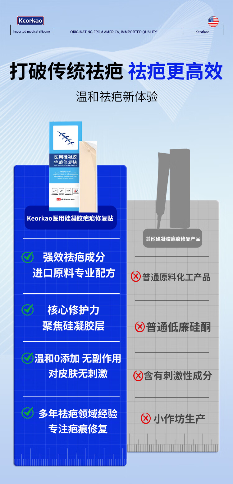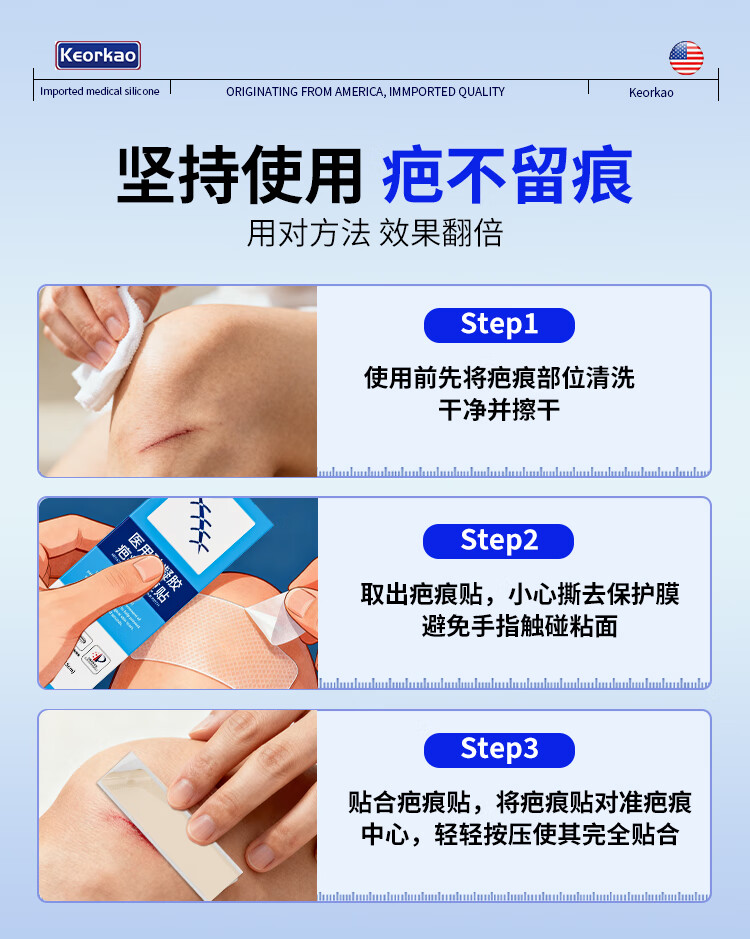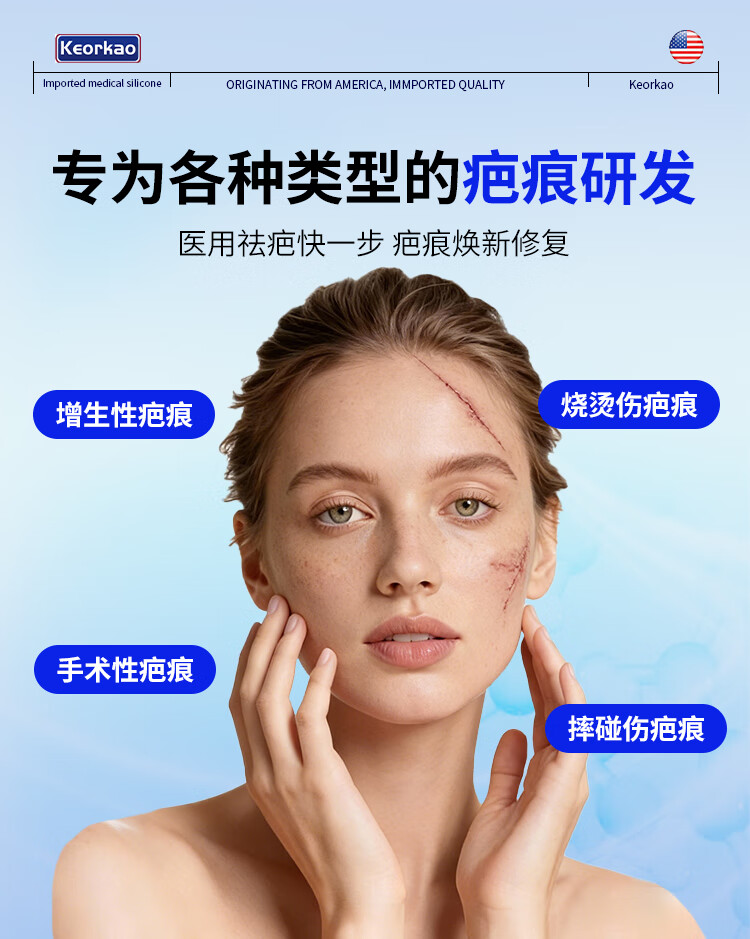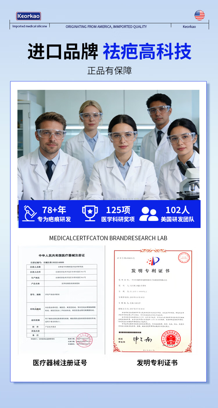 KEORKAO美国进口硅酮医用疤痕贴剖腹产膏减张贴去祛疤痕专用修复