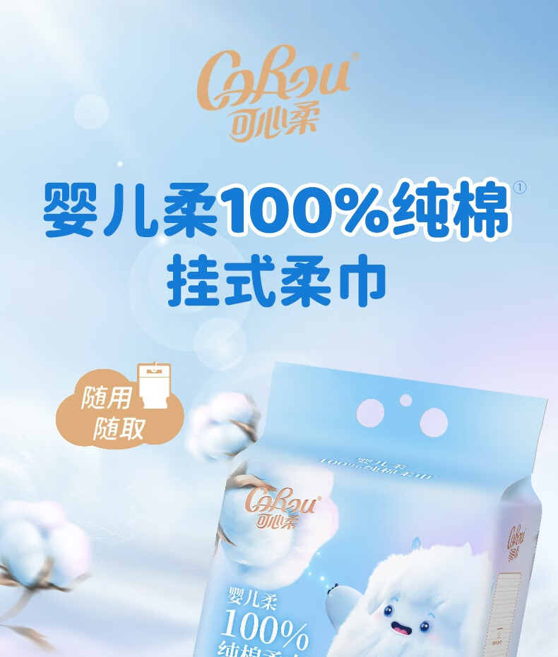 可心柔棉柔巾婴儿专用100%全棉洗脸巾纯棉棉加厚洁面巾悬挂式擦脸巾