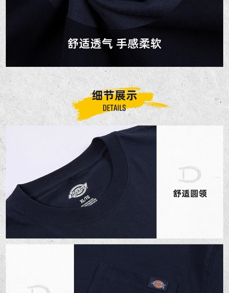 Dickies短袖T恤 简约小LOGO男式棉舒适宽松上衣 t恤男DK012306 深灰色 (宽松版型) L