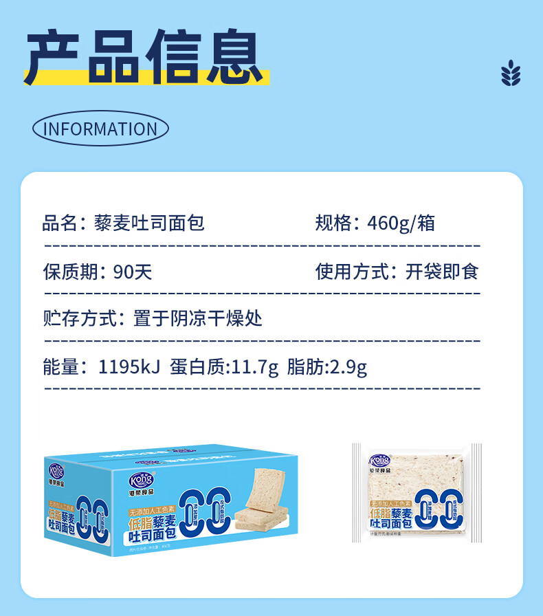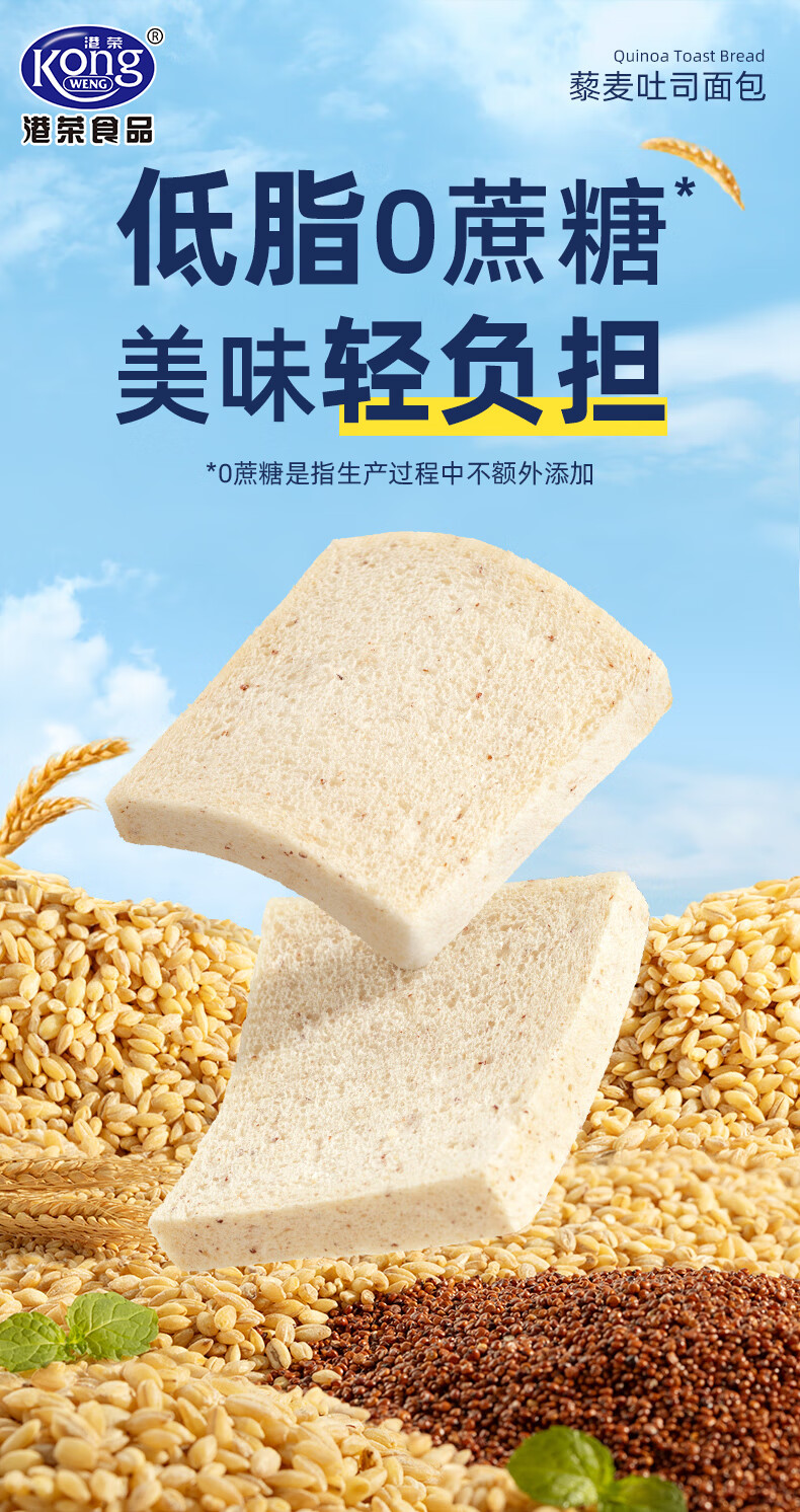 港荣藜麦吐司面包整箱早餐食品办公室休闲零食儿童孕妇营养代餐小吃 藜麦吐司面包460g*2