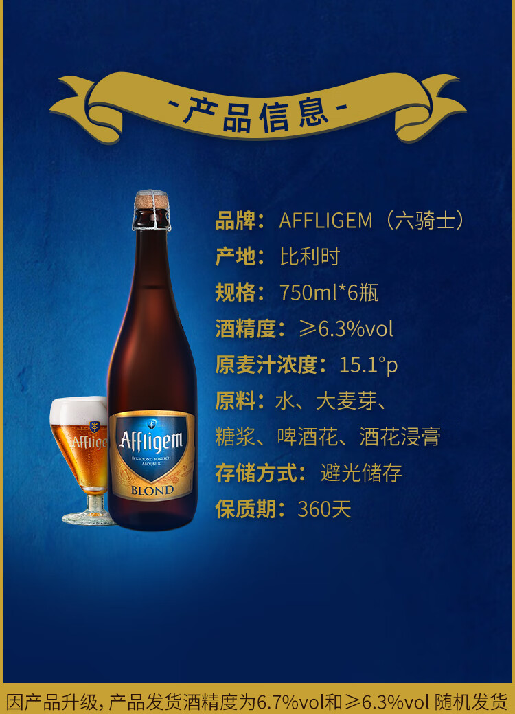 喜力旗下六骑士啤酒750ml*6整箱装 比利时原装进口 古老的修道院啤酒