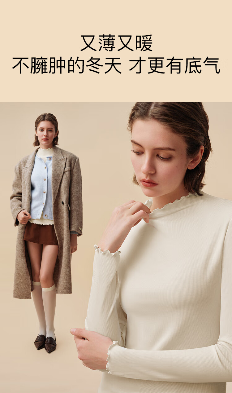 ubras虞书欣同款含蚕丝羊毛小高领肌底衣保暖女款打底秋冬内搭 小高领-焦糖慕斯色 虞书欣同款 L