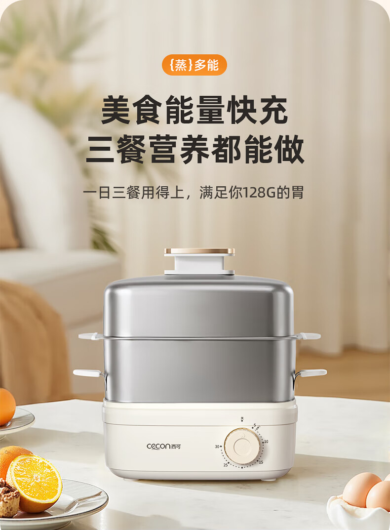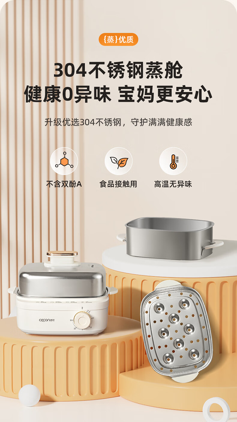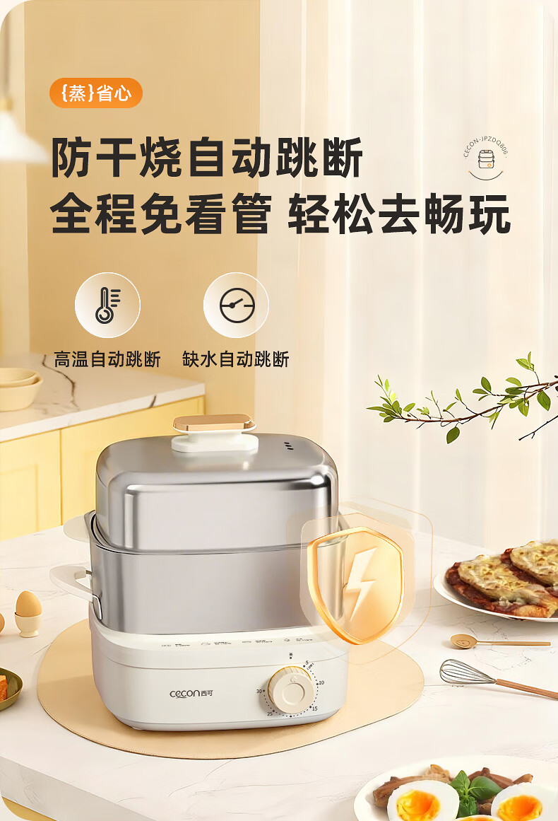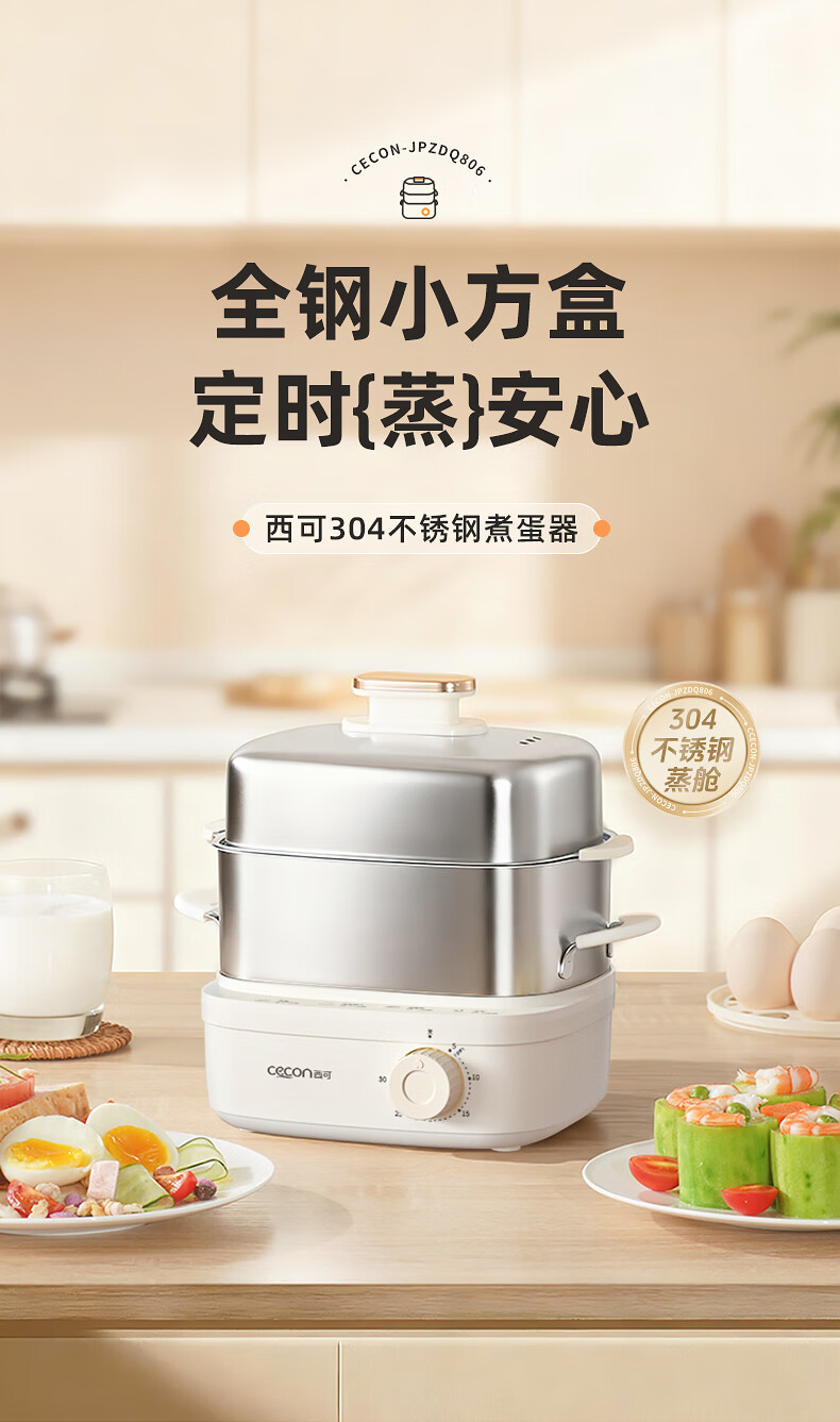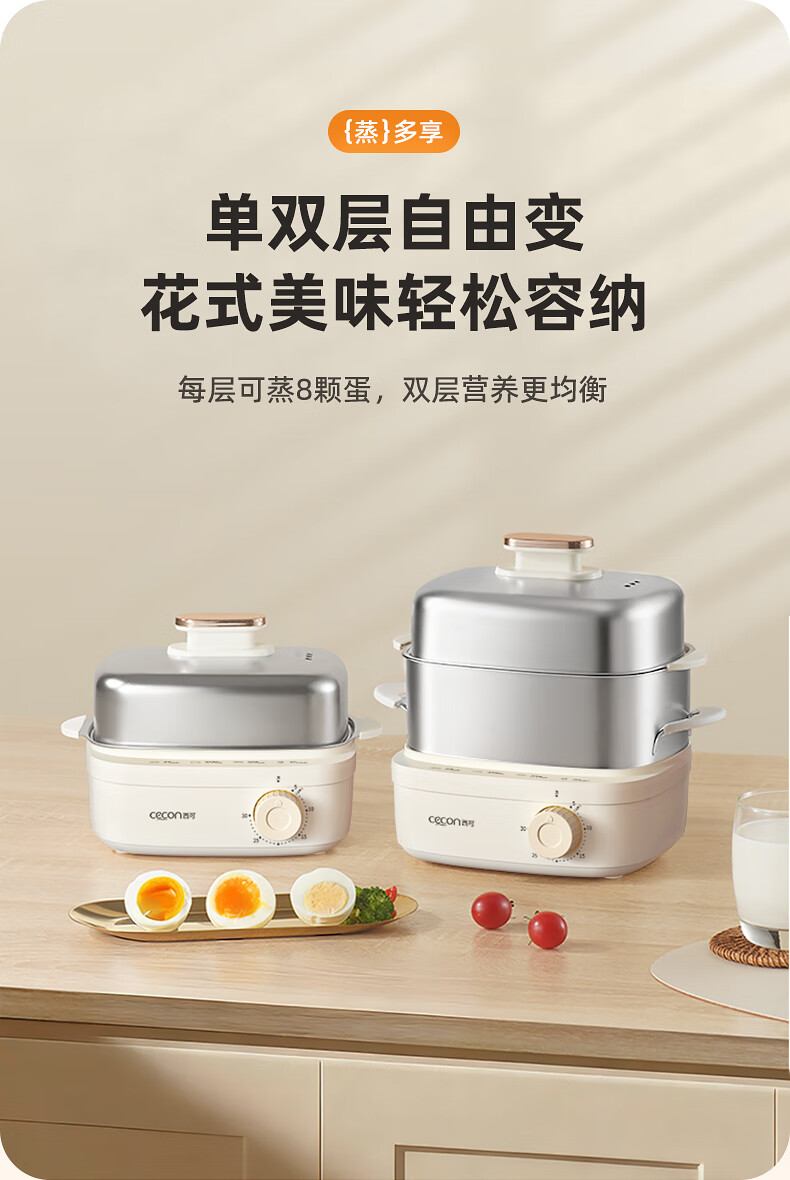 西可蒸蛋器 煮蛋器 多功能锅电蒸锅自动断电小型不锈钢多功能双层早餐蒸煮鸡蛋早餐神器JPZDQ806