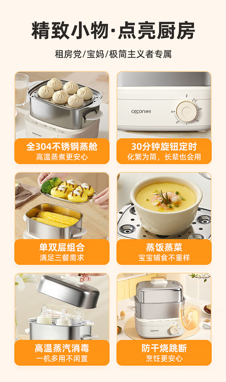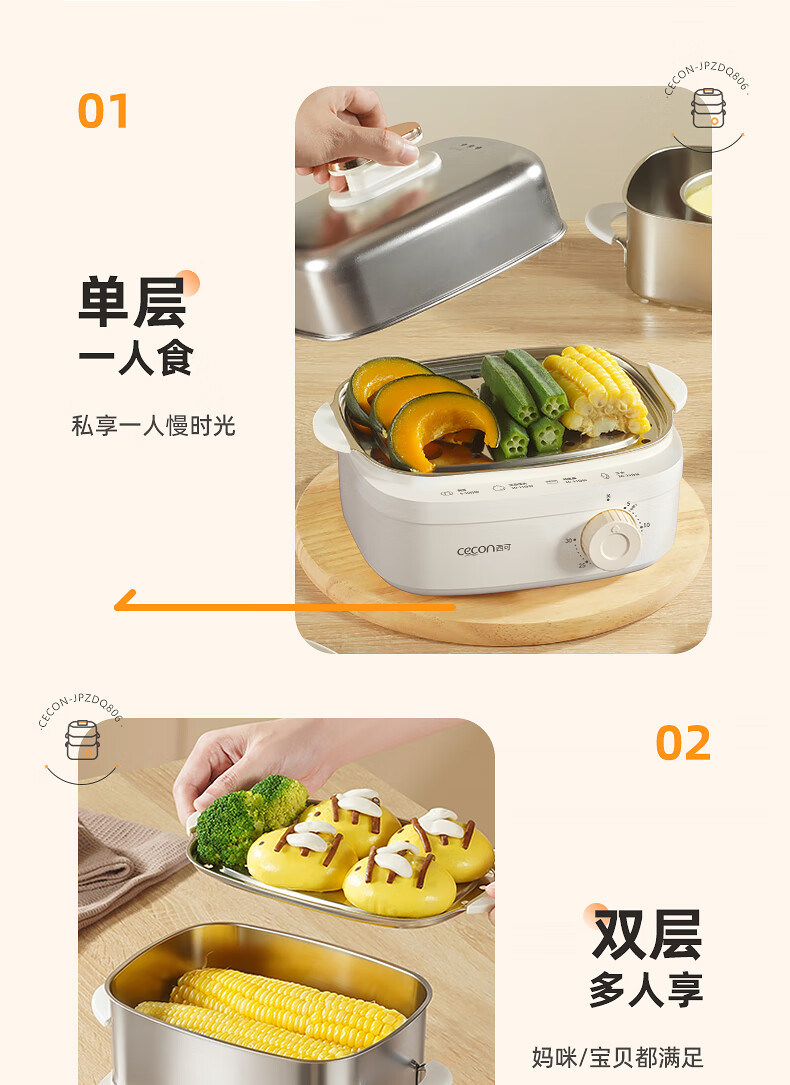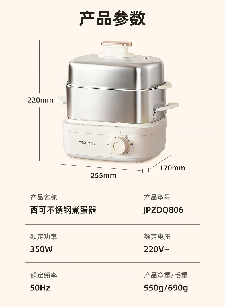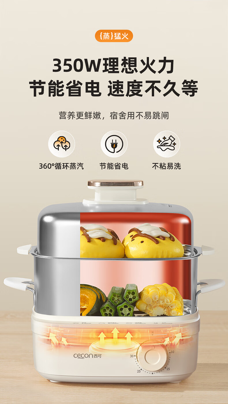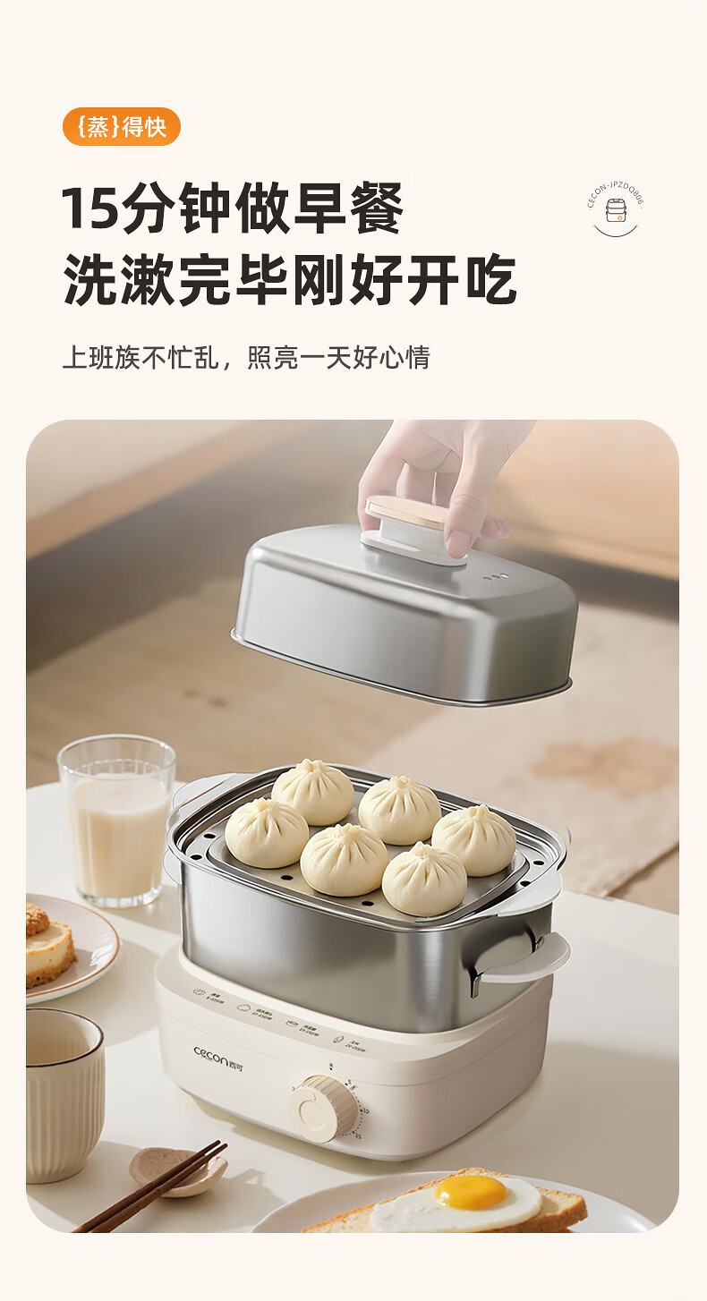西可蒸蛋器 煮蛋器 多功能锅电蒸锅自动断电小型不锈钢多功能双层早餐蒸煮鸡蛋早餐神器JPZDQ806