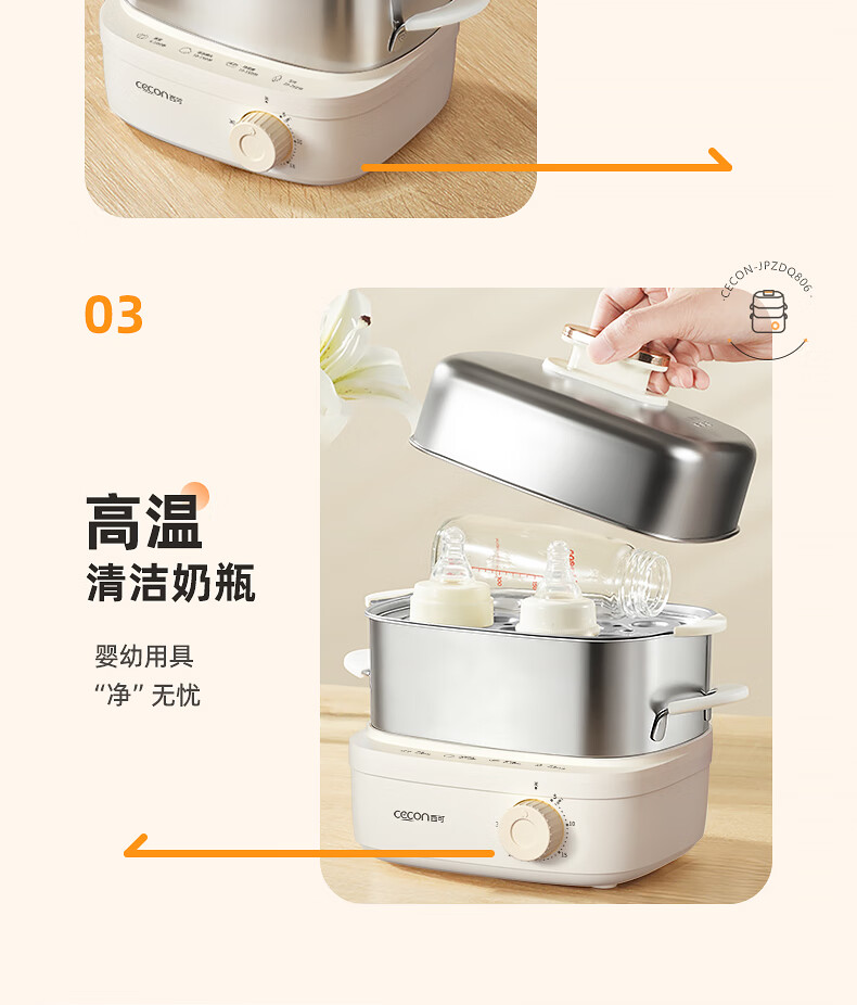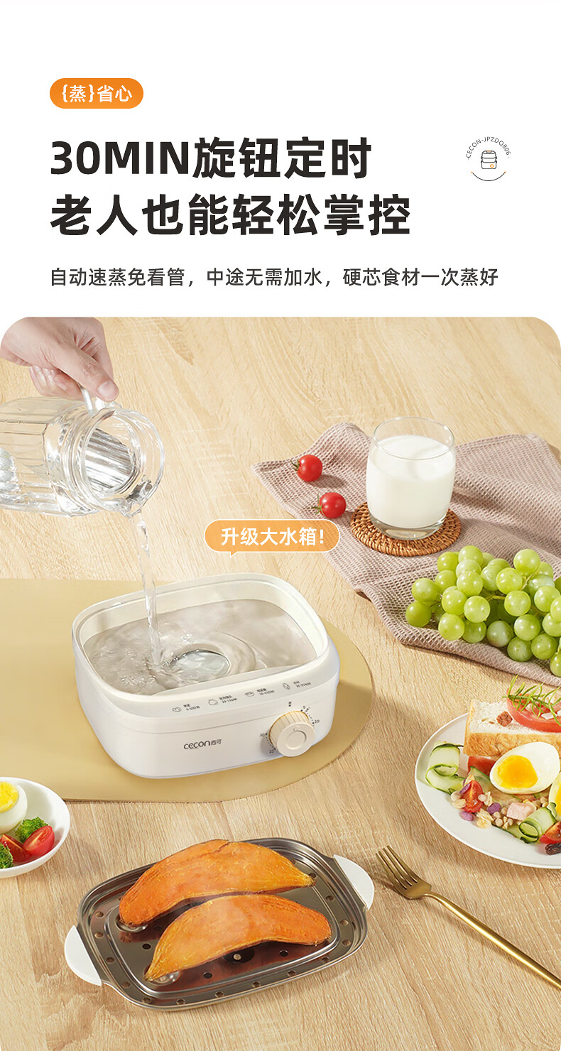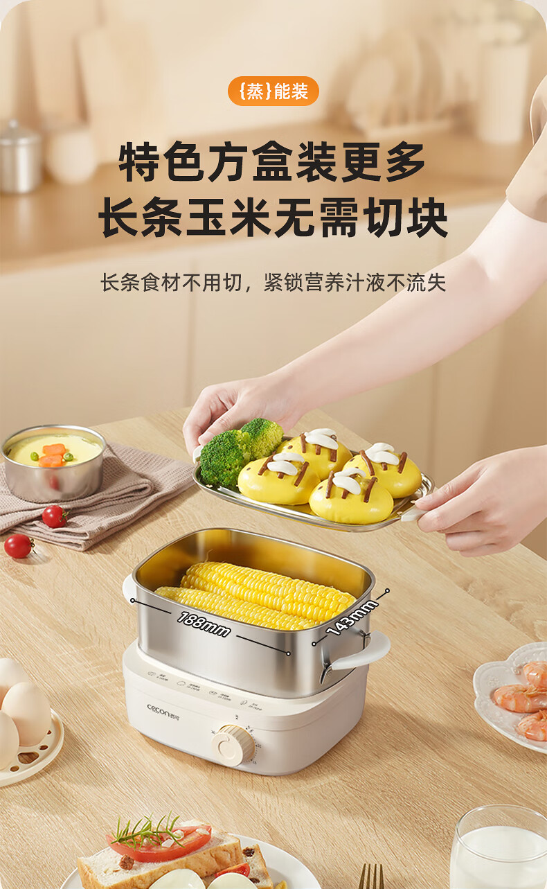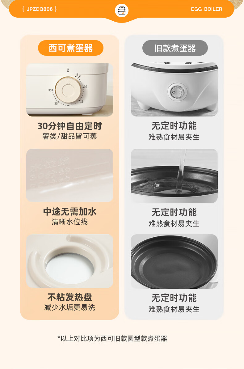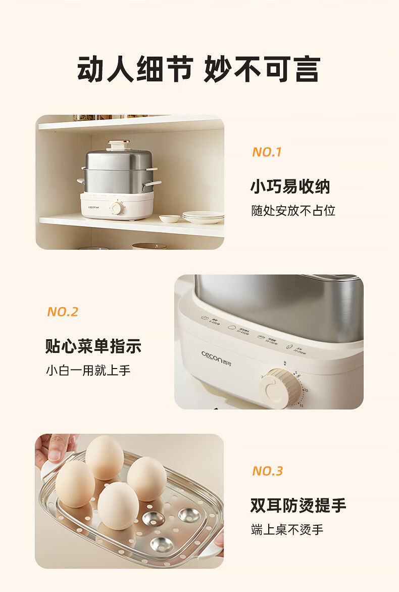 西可蒸蛋器 煮蛋器 多功能锅电蒸锅自动断电小型不锈钢多功能双层早餐蒸煮鸡蛋早餐神器JPZDQ806