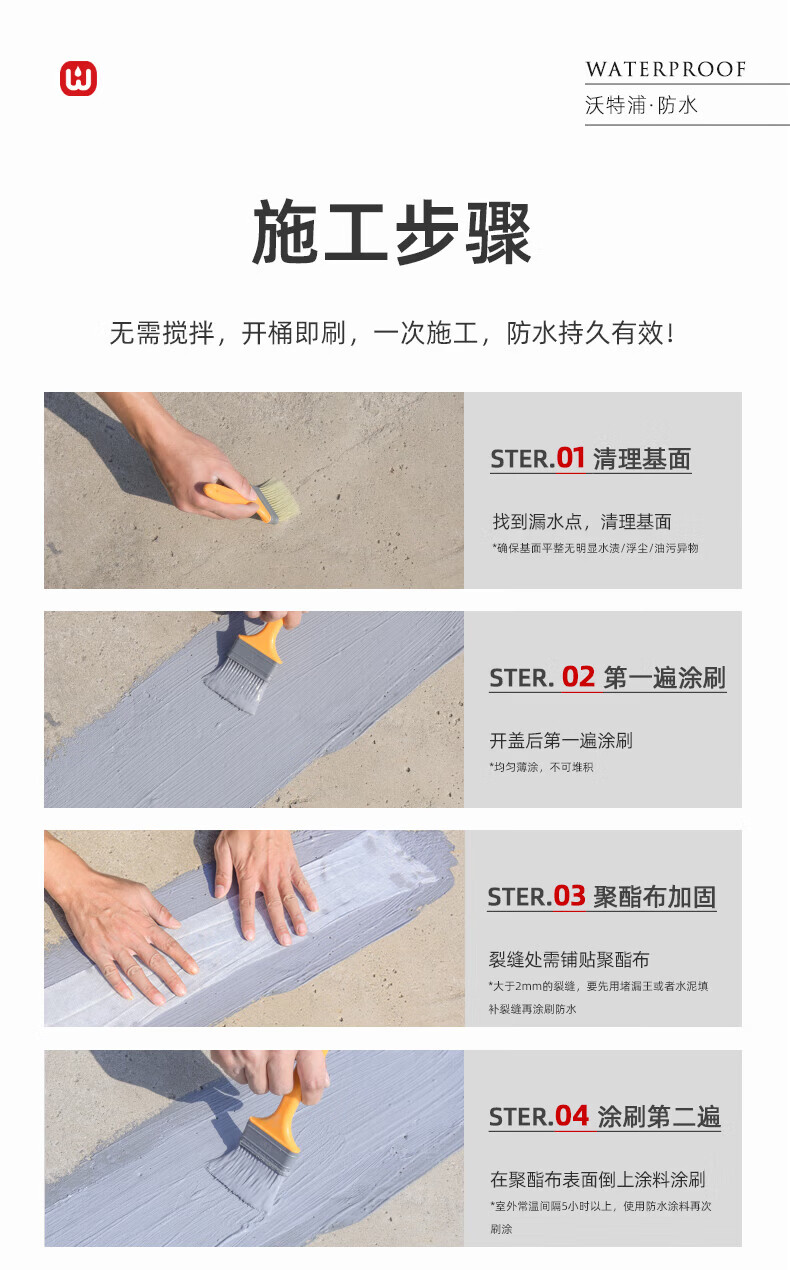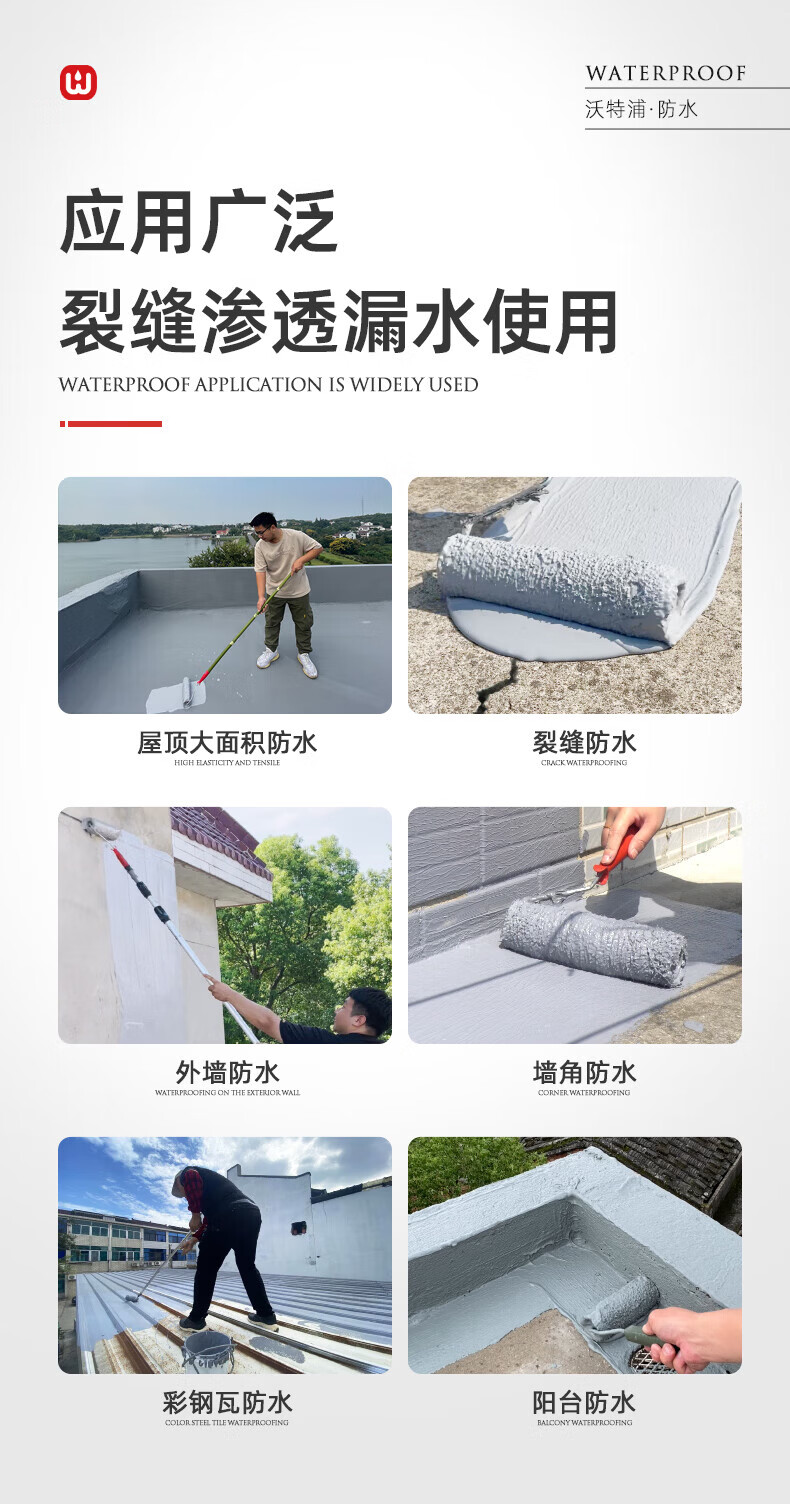 沃特浦防水涂料屋顶外墙防漏水房顶漏水防水胶补漏裂缝渗水室外楼顶胶