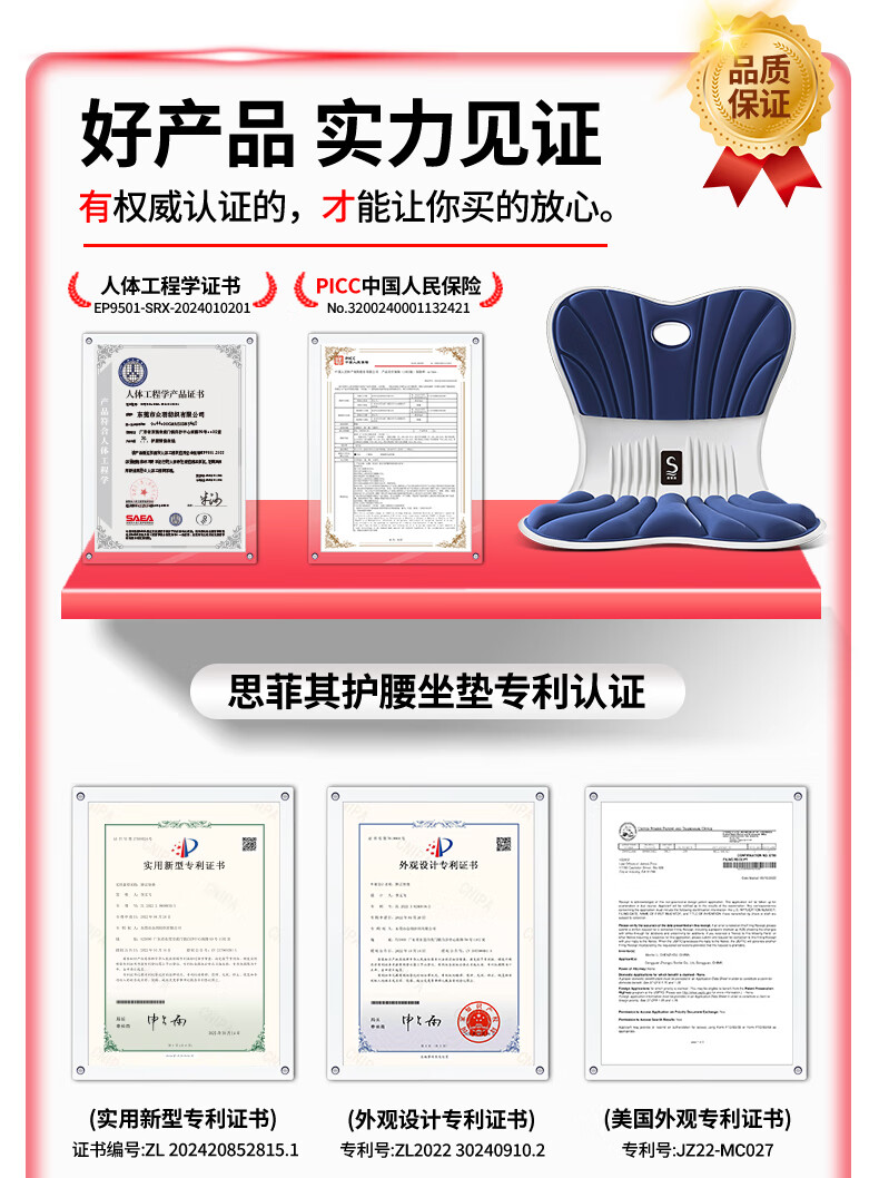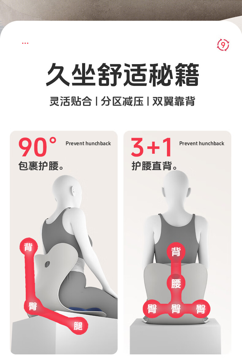 思菲其护腰坐垫靠垫护腰久坐神器人体工学椅支撑腰部坐靠背一体座椅垫