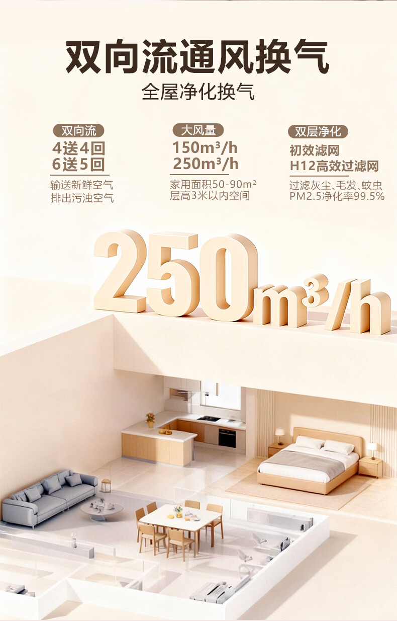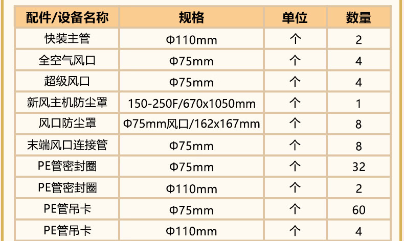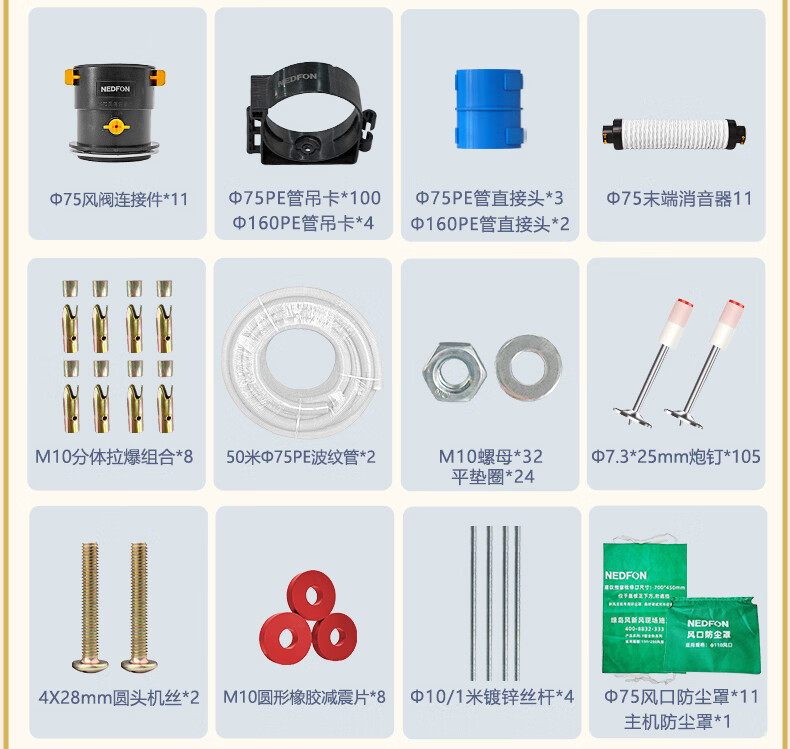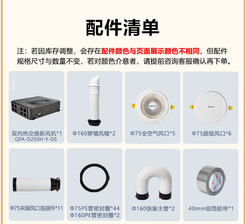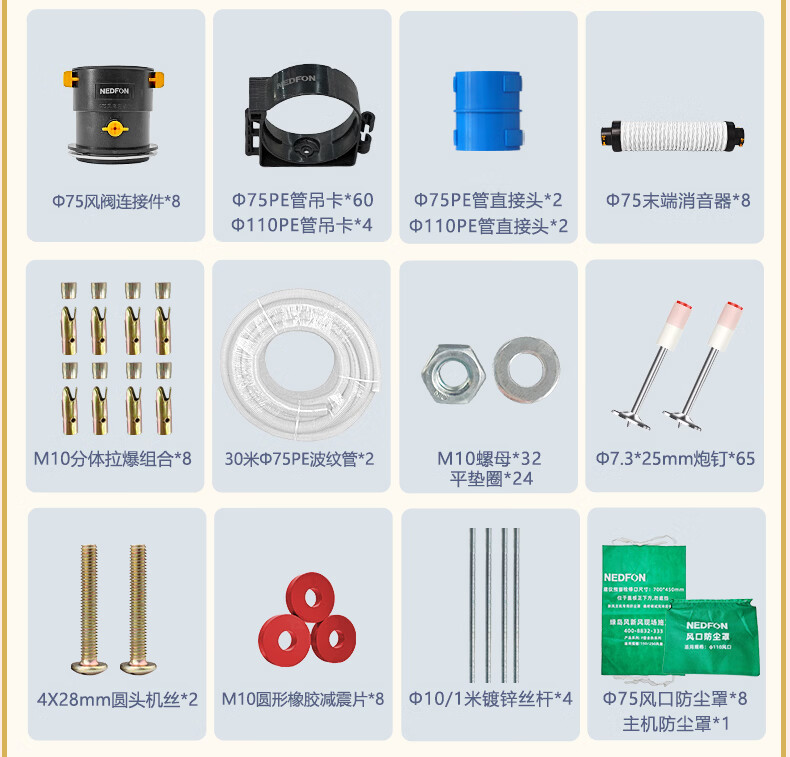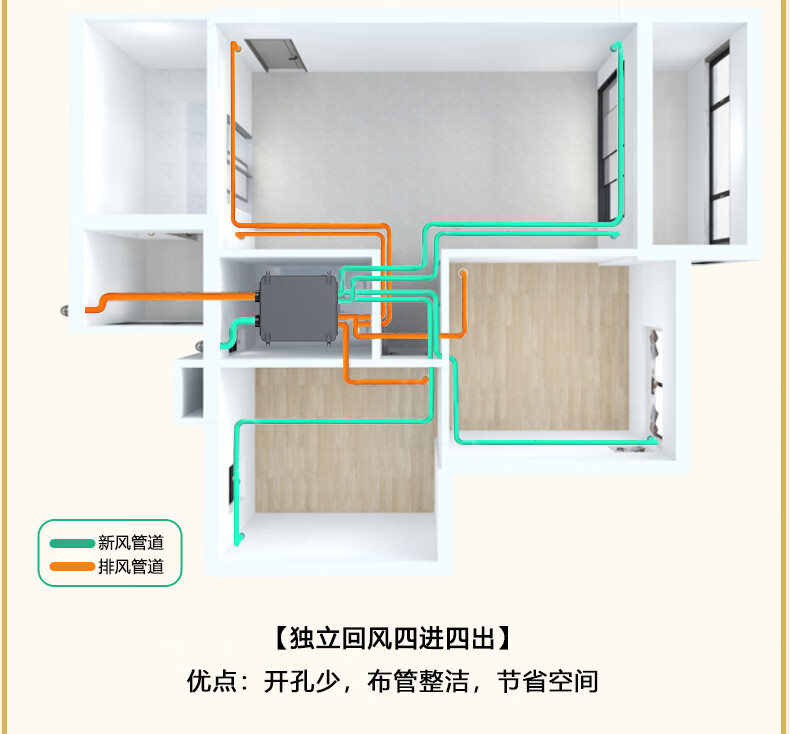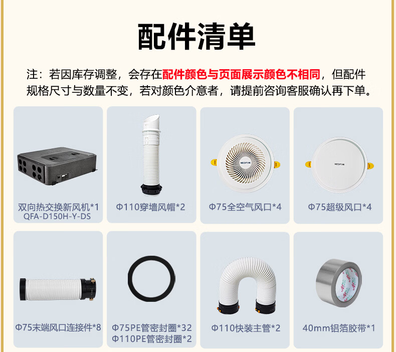 绿岛风(Nedfon)双向新风系统配件包套装家用换气机带热交换新风机空气净化含辅材 150风量独立回风-4送4回含配件套装【不含安装】