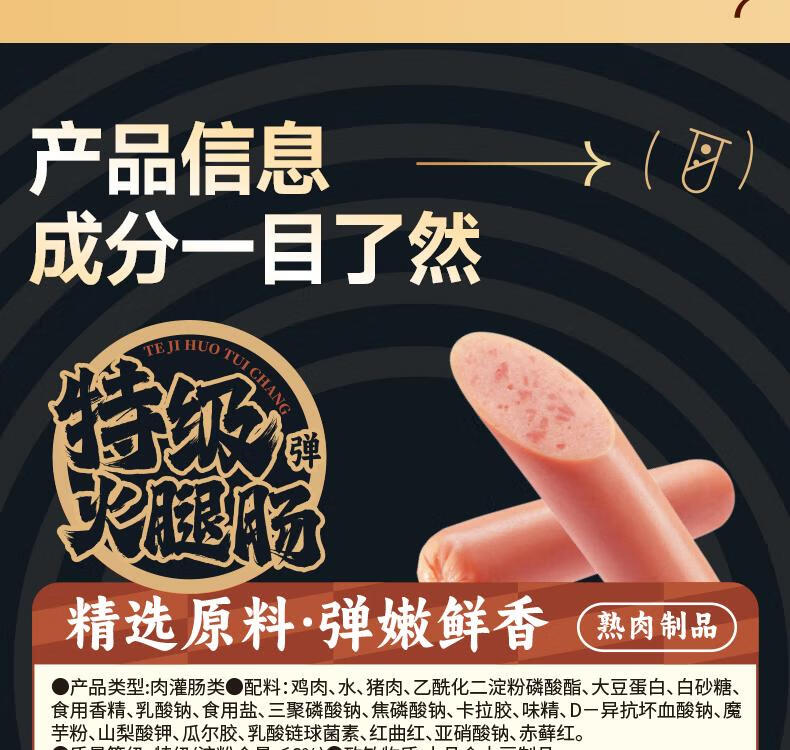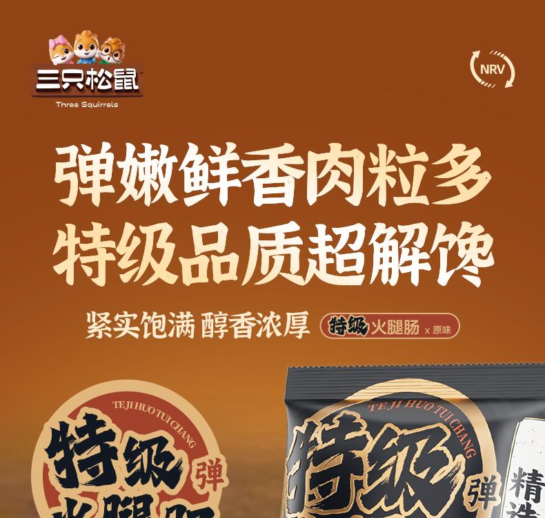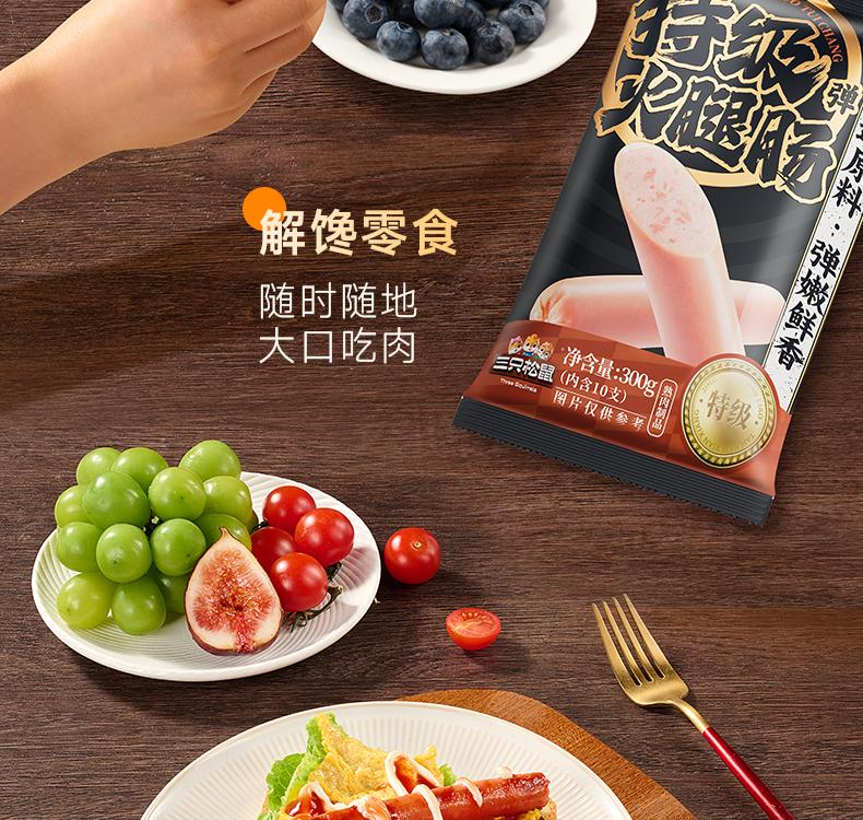 三只松鼠特级火腿肠香肠原味30g*10支休闲零食露营烧烤出游泡面搭档速食