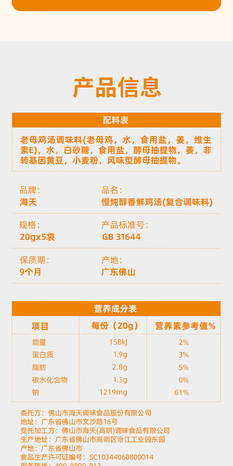 海天 鸡汤 家用老母鸡汤 浓汤宝小包装汤料包调料包20g*1袋 京东专供