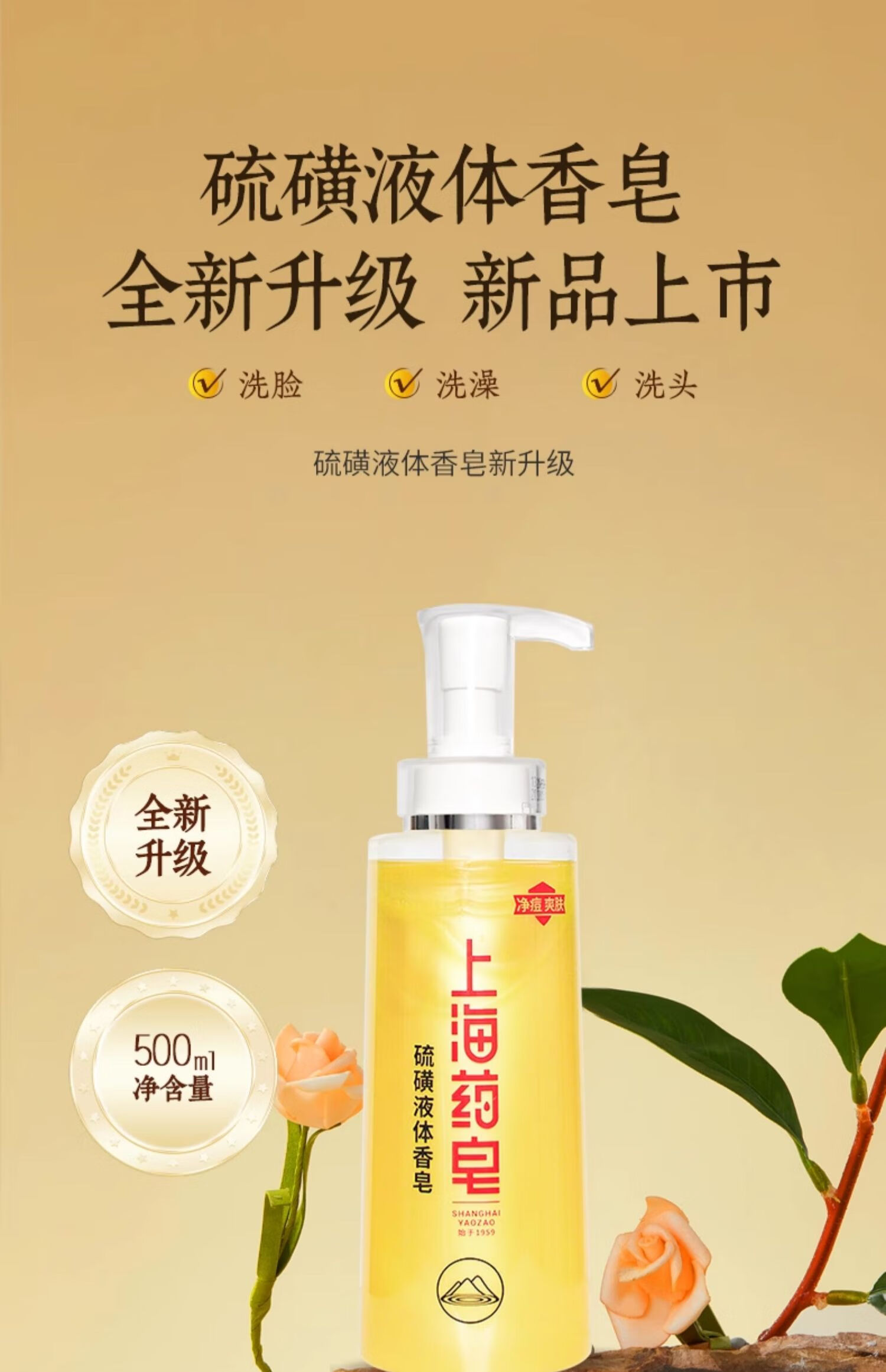 上海药皂香皂硫磺皂液体香皂洗发洗头硫磺沐浴男士洗手洗澡肥皂500g