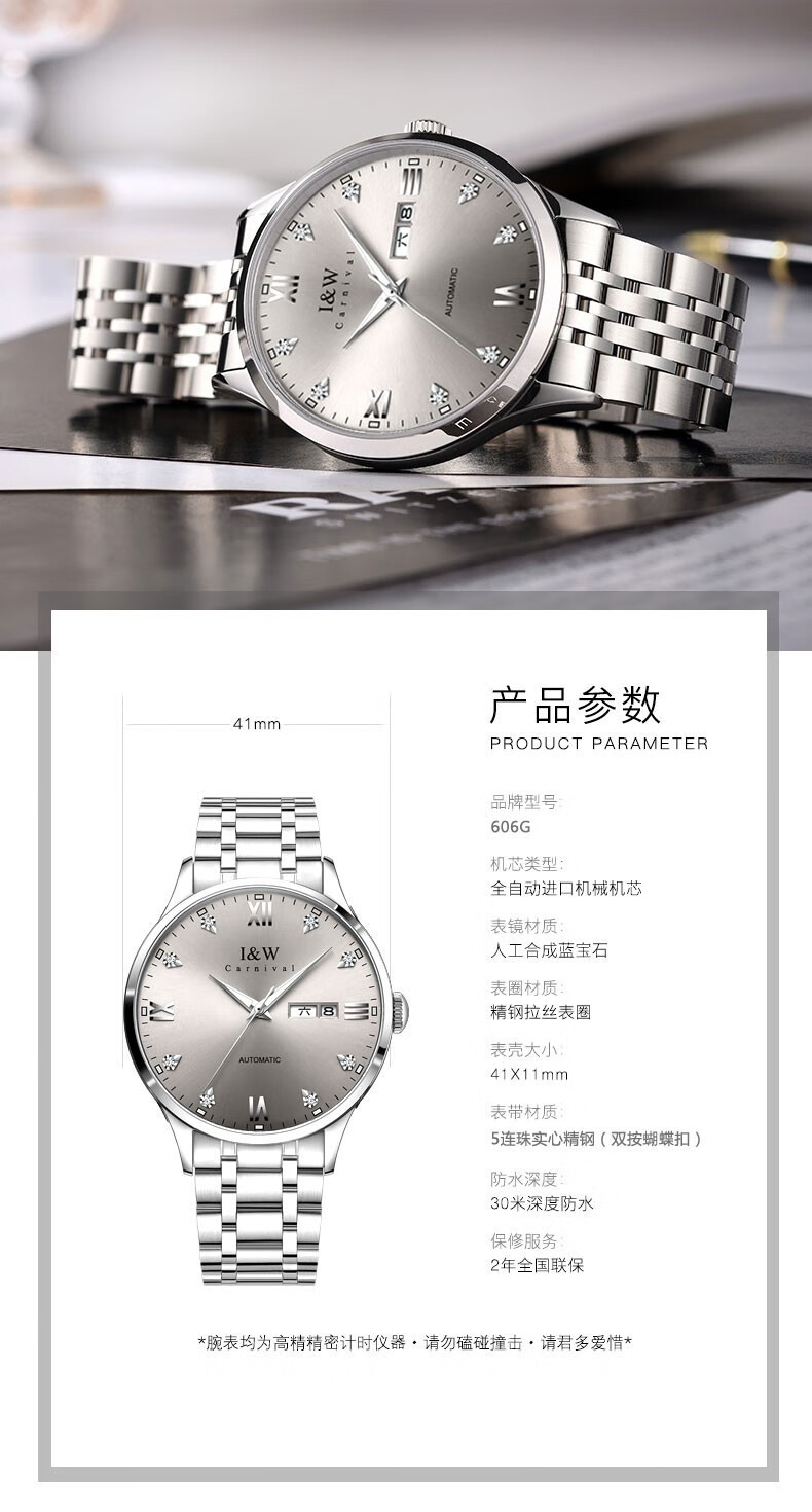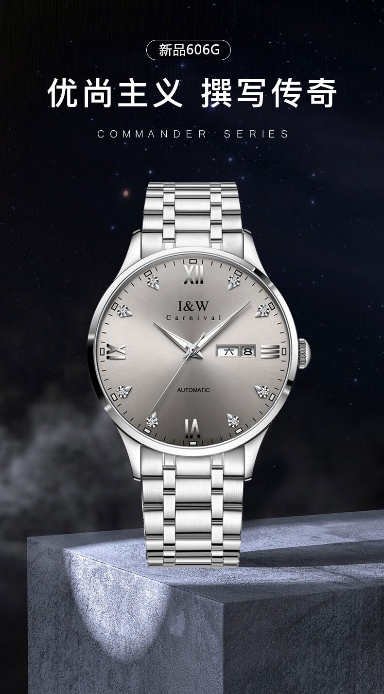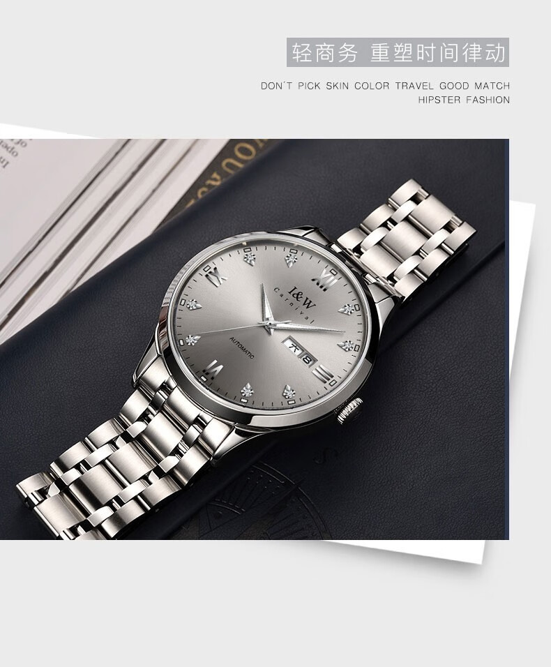 爱沃驰瑞士品牌十大名表手表男士全自动机械表防水夜光双日历男式腕表 本灰钢带【进口机芯】免费刻字