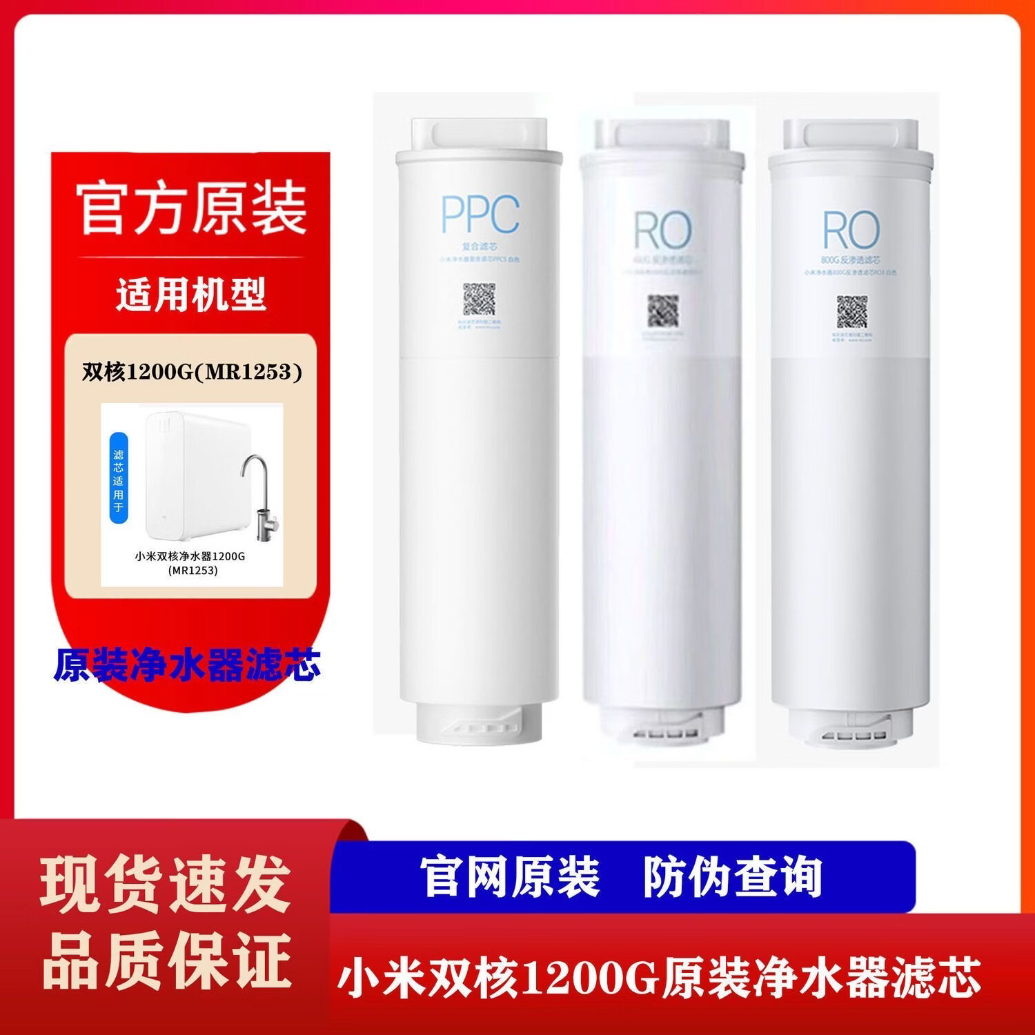 小米双核1200G滤芯原装净水器二手滤芯400G反渗RO/800G反渗透RO3复合滤芯PPC5净水器滤芯 单个RO400 带膜无盒