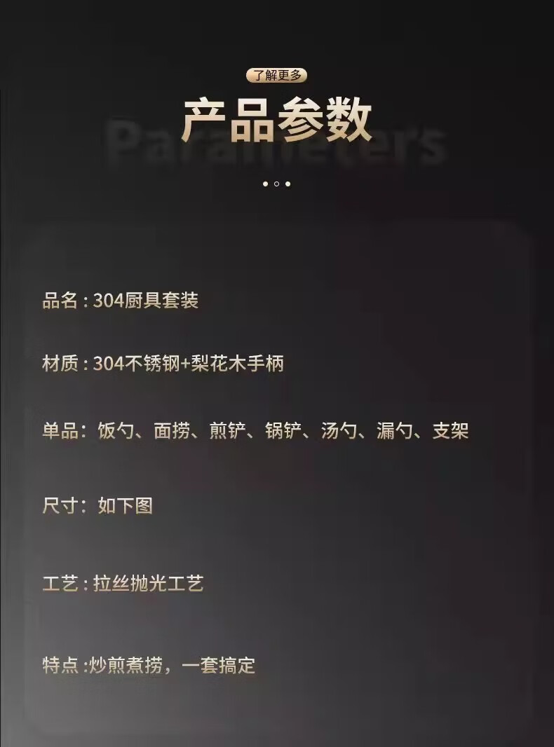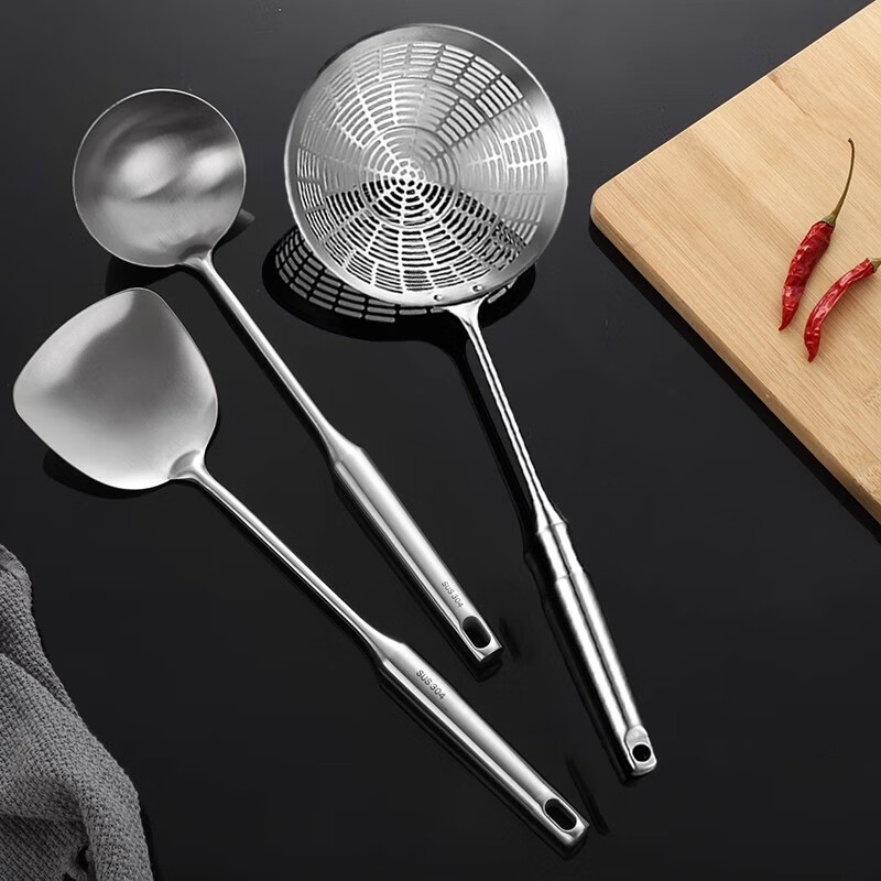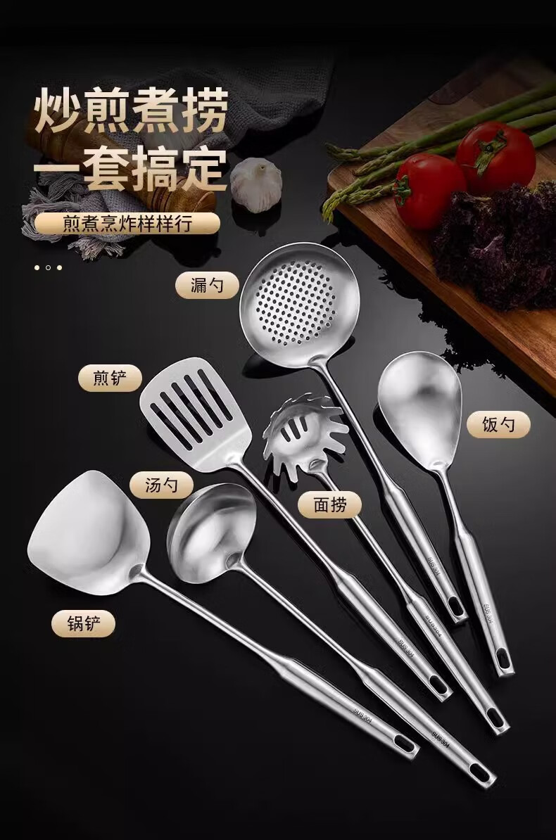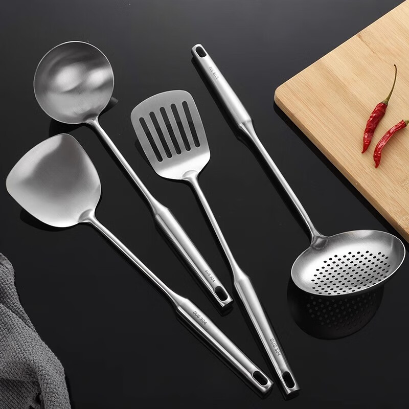 黑橘304不锈钢厨具锅铲套装全套家用厨房用具五件套炒菜铲子铲勺一体 (【4件套+旋转挂架】)