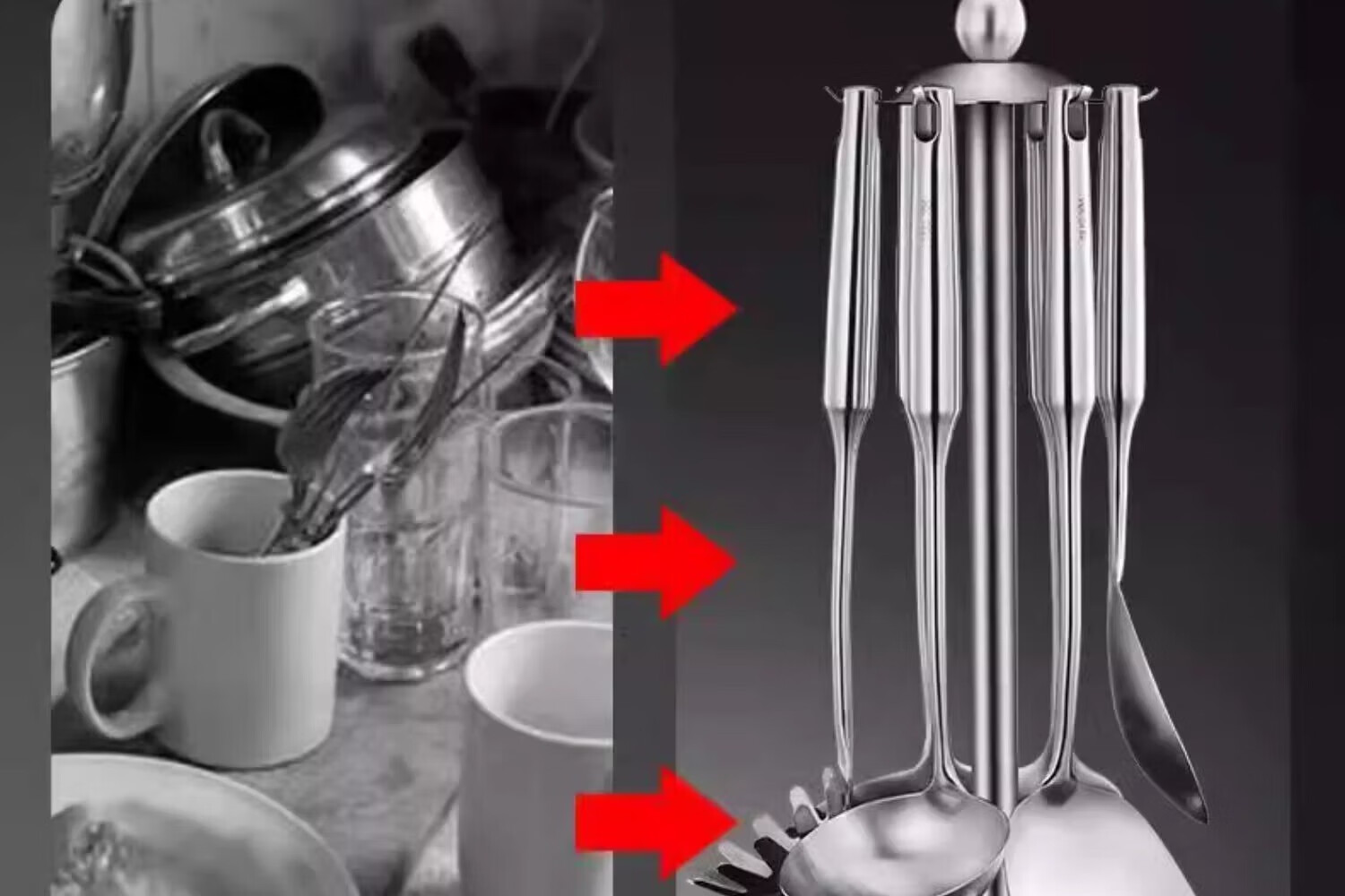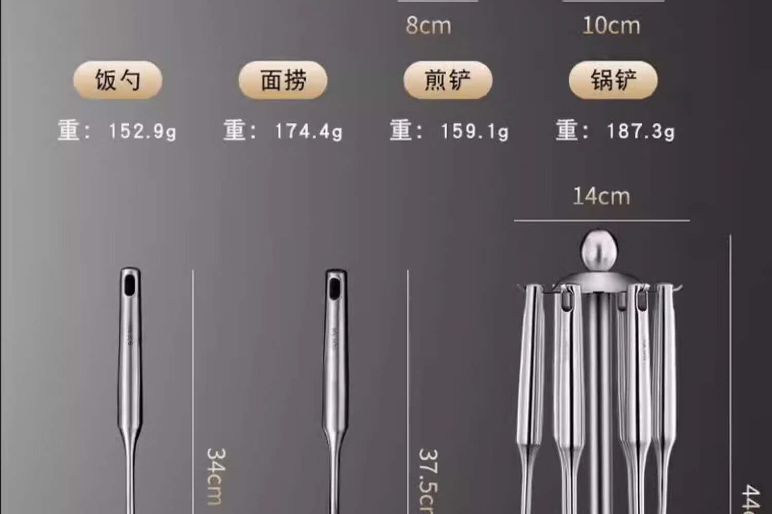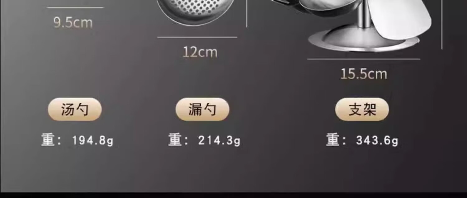 黑橘304不锈钢厨具锅铲套装全套家用厨房用具五件套炒菜铲子铲勺一体 (【4件套+旋转挂架】)