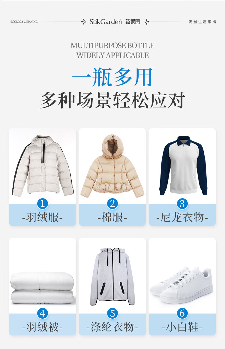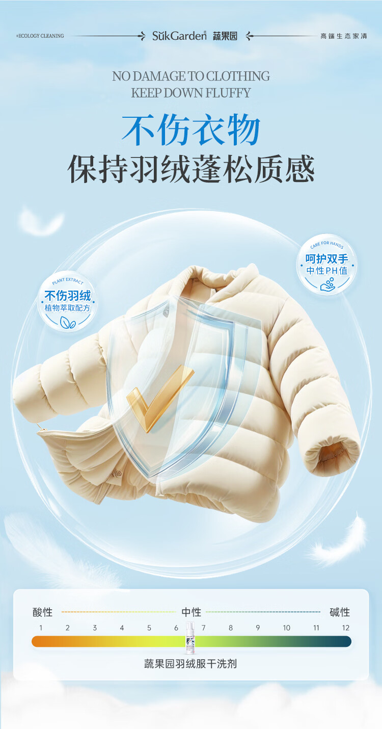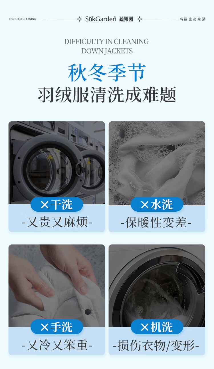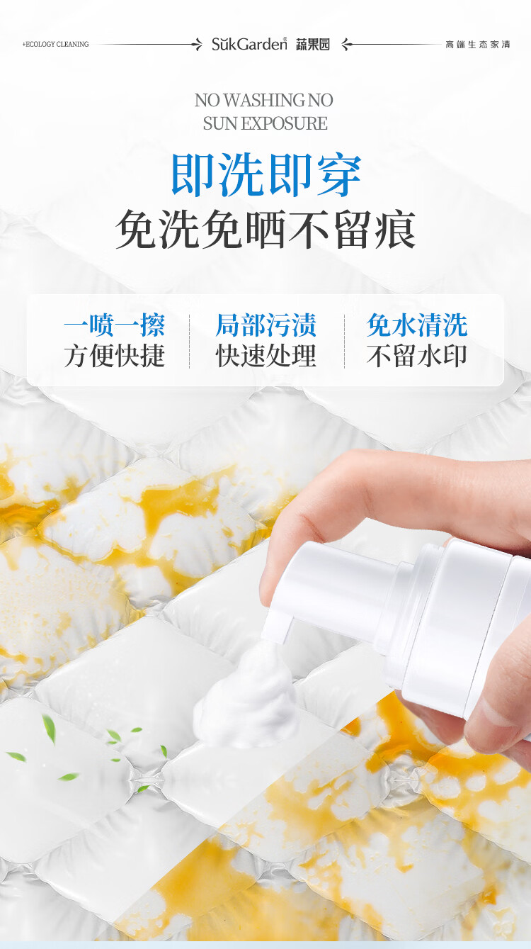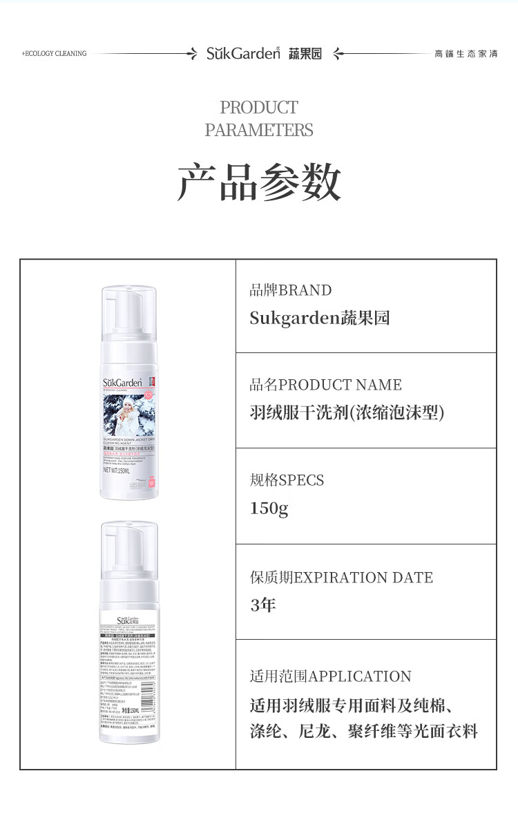 蔬果园羽绒服清洗剂 泡沫型免水洗去油渍污渍羽绒服专用洗衣液清洁剂 羽绒服干洗剂150ml*2