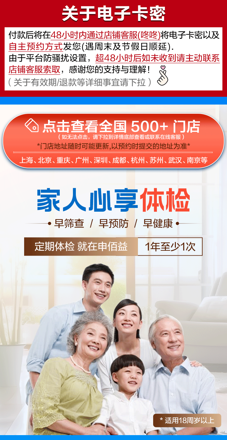美年大健康瑞慈体检家人心享C体检套餐中青老年全国门店通用体检卡 普惠版(1人)(瑞慈) 2个工作日内店铺客服(咚咚)发您电子卡密自主预约