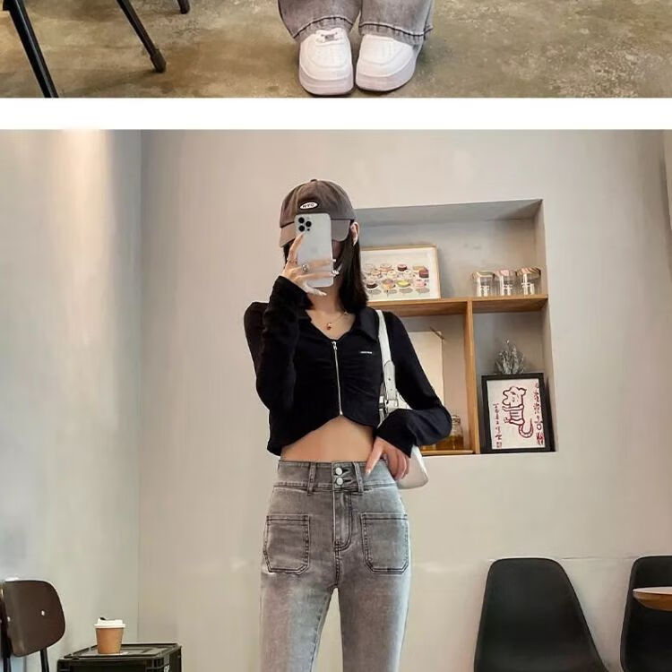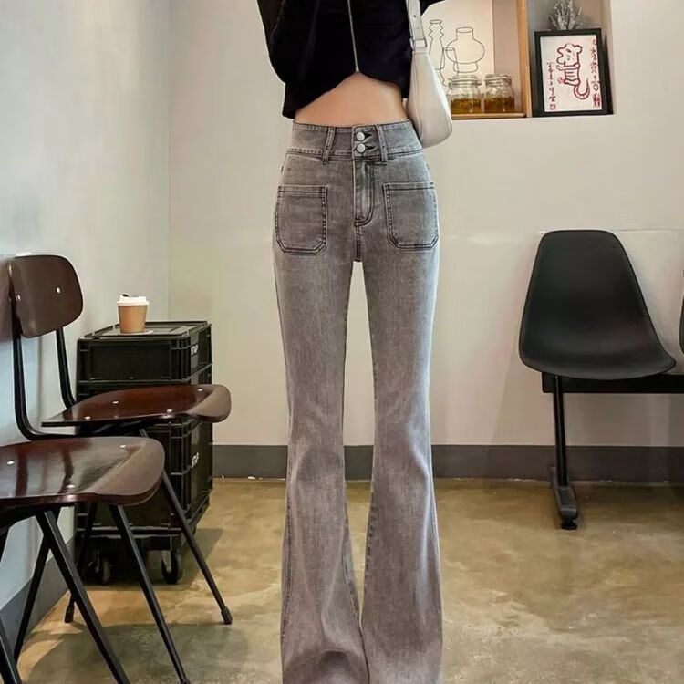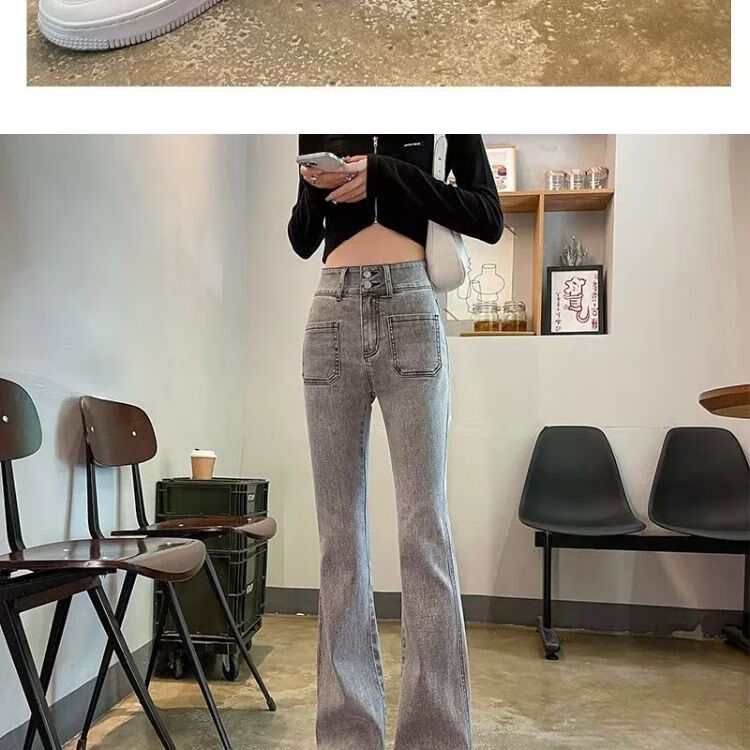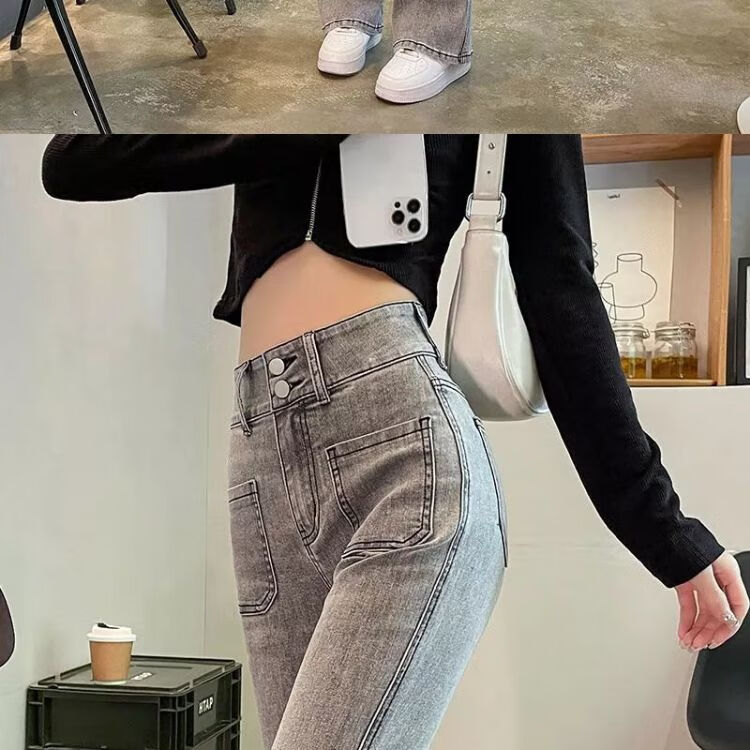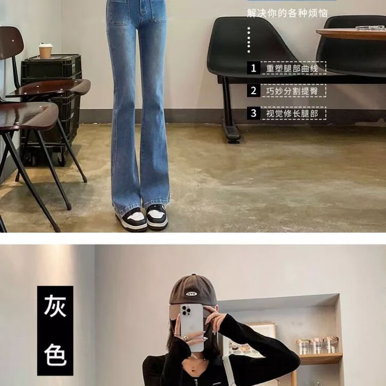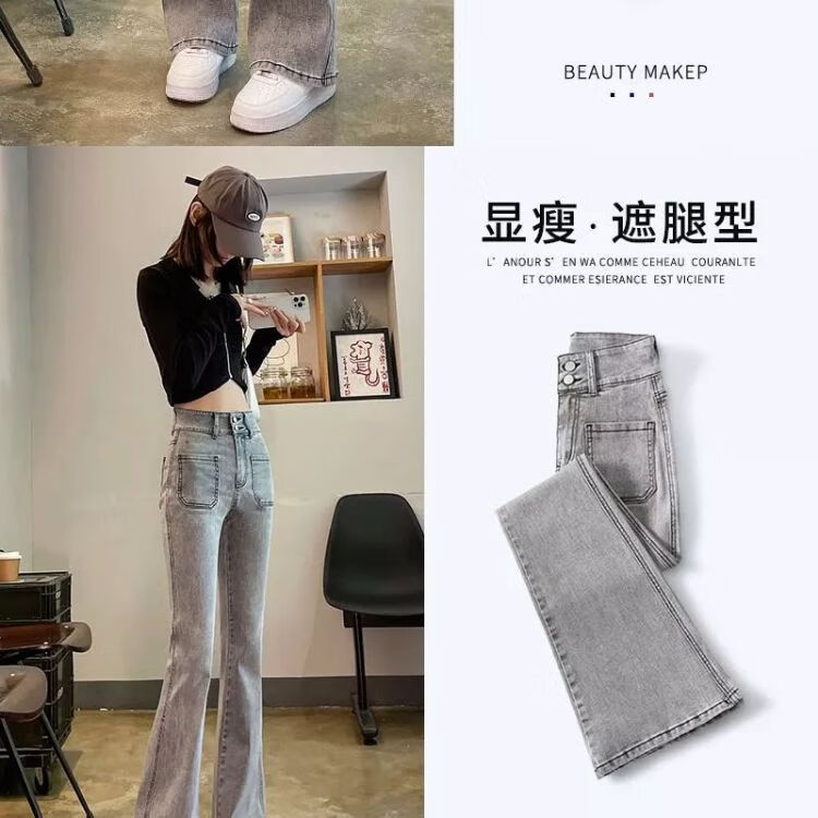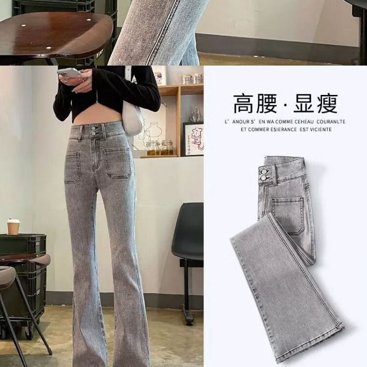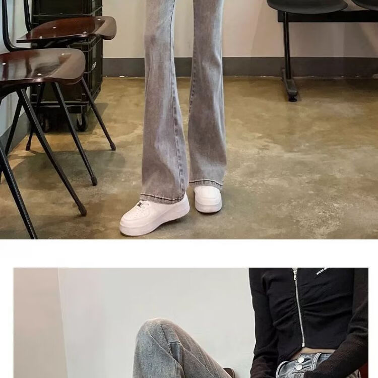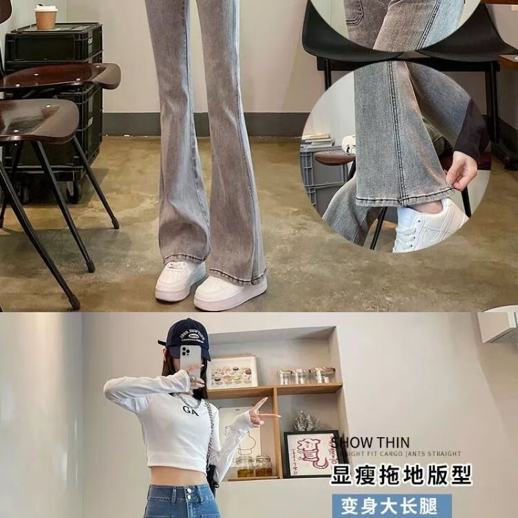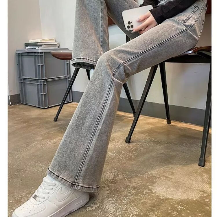 汇诗尚显瘦气质 特大码300斤胖mm松紧高腰喇叭牛仔裤女款修身显瘦微喇长 烟灰色 4XL 建议180-210斤