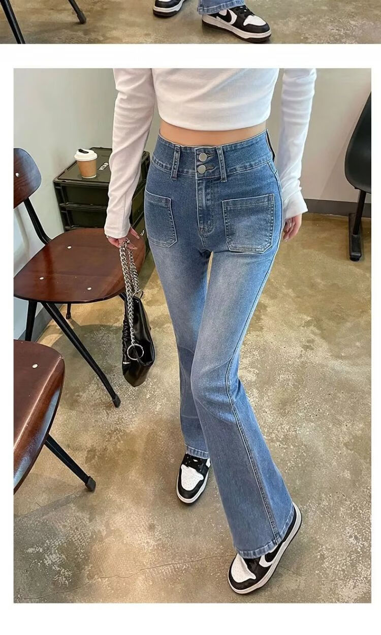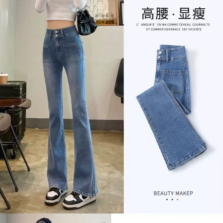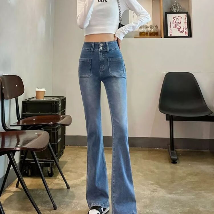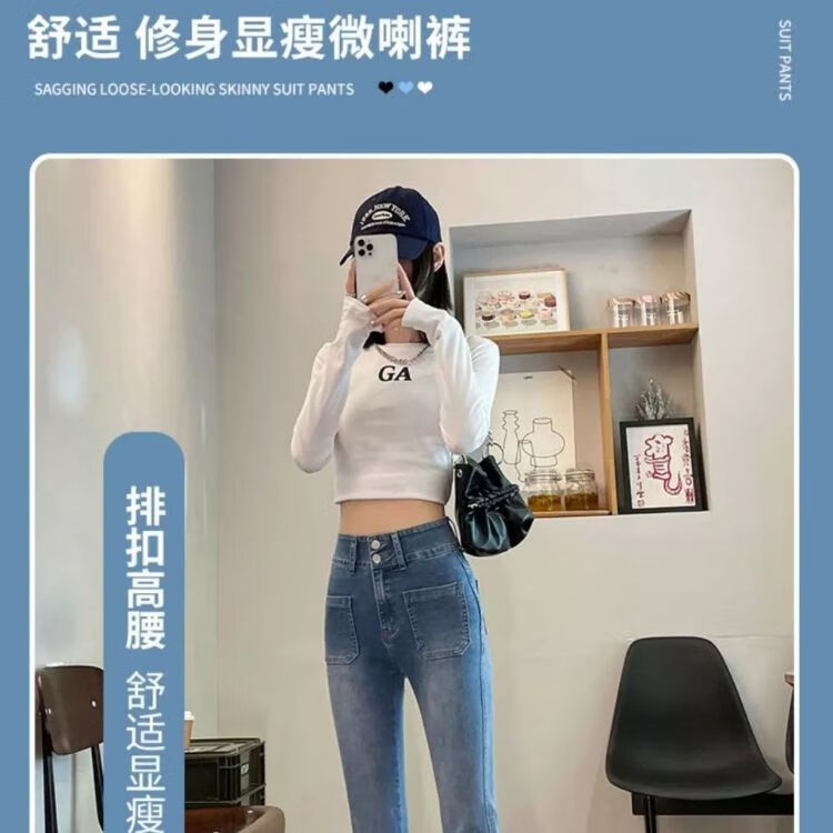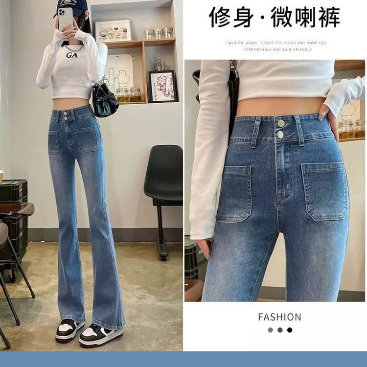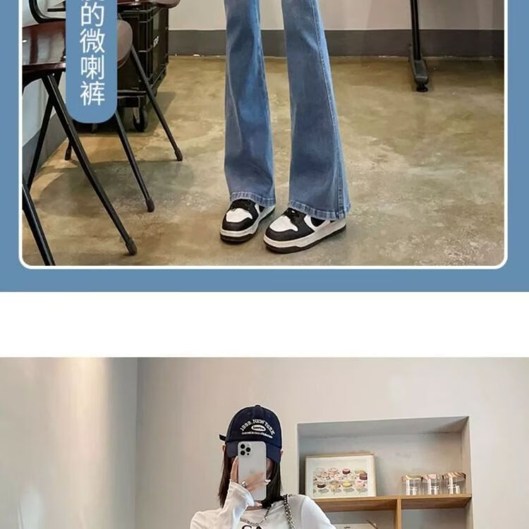 汇诗尚显瘦气质300斤特大码显瘦喇叭裤微喇裤子小个子胖妹妹mm粗腿弹力 复古蓝 6XL230280斤