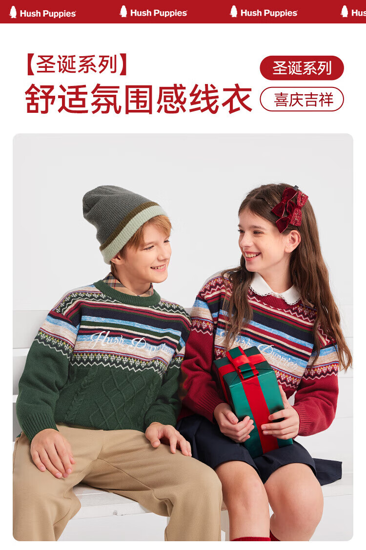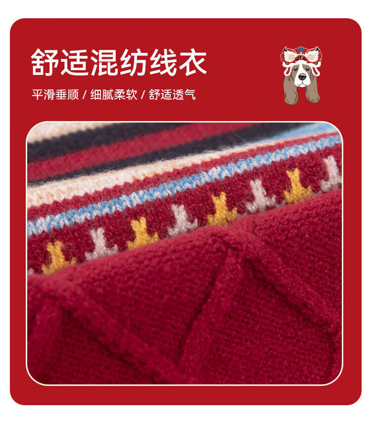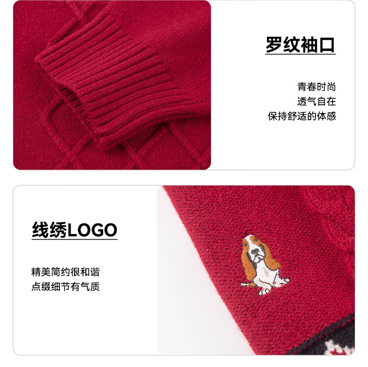 暇步士(Hush Puppies)童装儿童男女童针织衫冬季舒适时尚圣诞新年红色线衣 经典红 150 cm