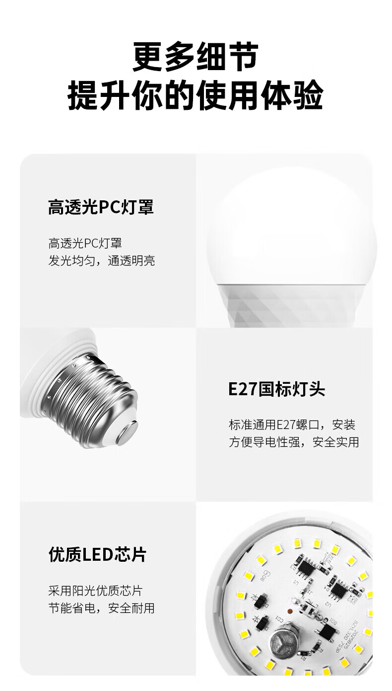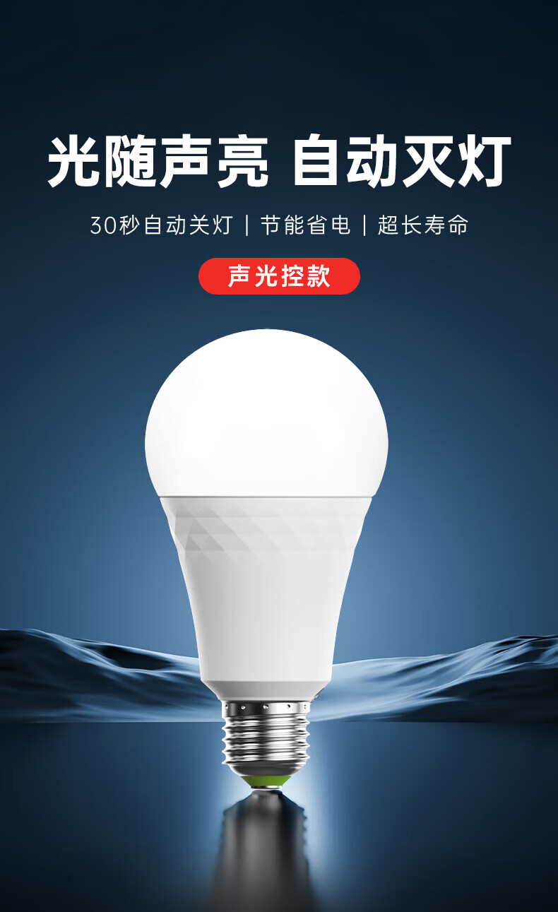 阳光(YANKON)LED光控声控感应灯泡 物业楼道走廊节能球泡灯 5w丨暖黄光丨声光控灯泡