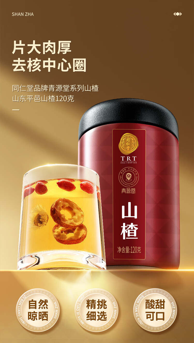 同仁堂品牌 北京同仁堂山楂干120克精选无核山楂圈泡水茶送礼品送女神