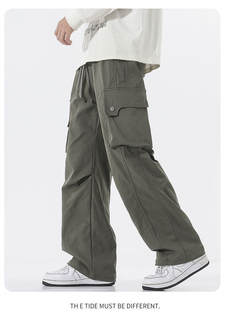 真维斯(Jeanswest)美式户外登山工装休闲裤男2026春季新款宽松潮流百搭直筒裤 T8015藻绿色 S