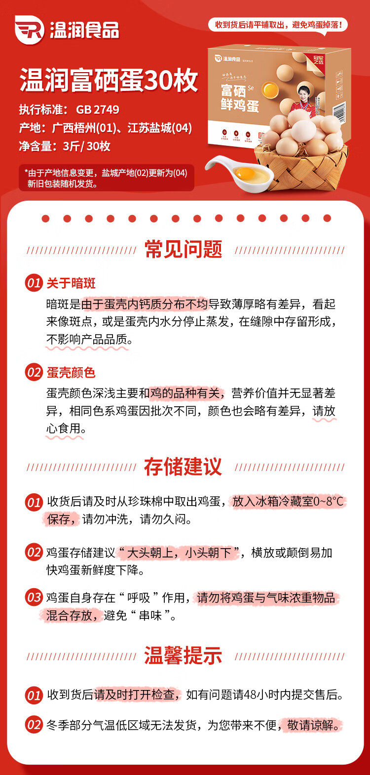 温润食品富硒鲜鸡蛋 30枚/3斤 优质蛋白 无抗生素 健康轻食 京东自营