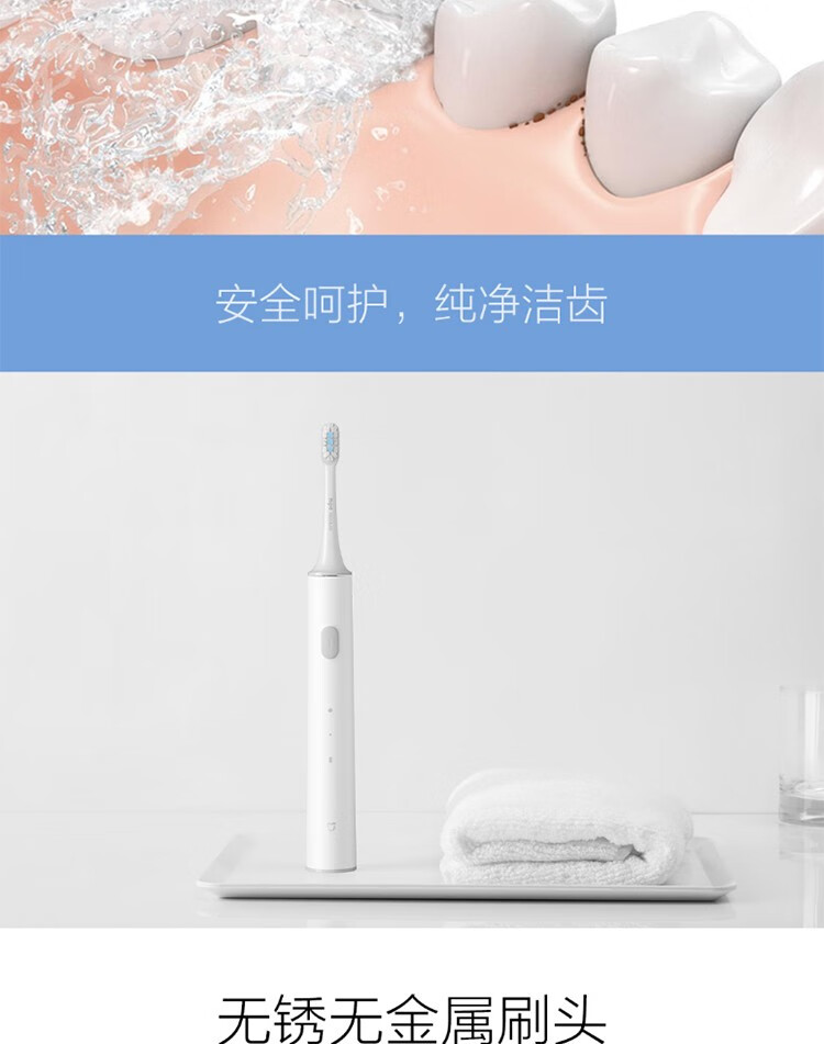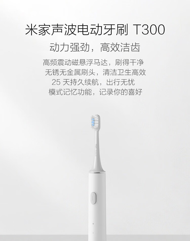 米家小米声波电动牙刷T300成人情侣充电式智能防水震动 七夕礼物推荐 米家声波电动牙刷T300